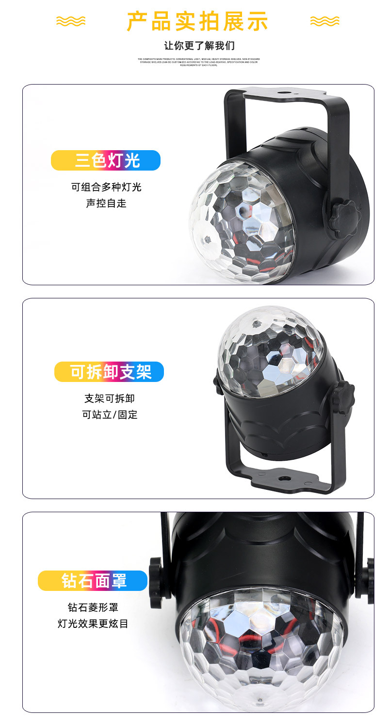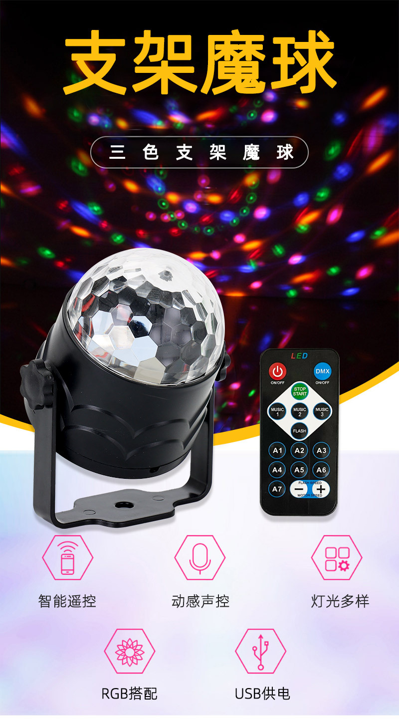 Lampu panggung kristal USB bola ajaib kecil Remote control lampu suasana mobil warna-warni LED lampu warna Putar disko mini