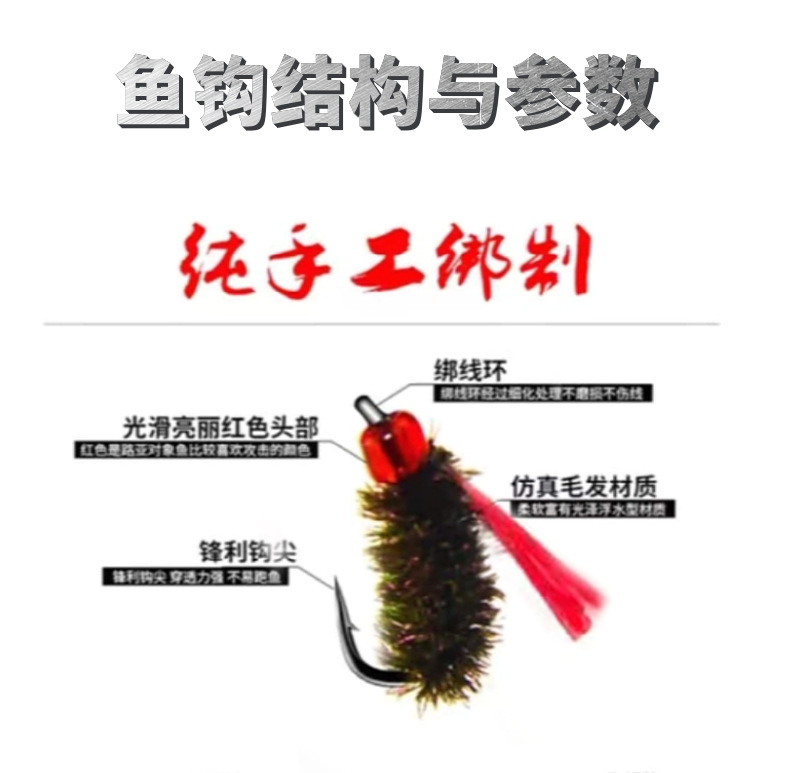Tuohang Road Yafei fly hook payet setelan kail ikan tied fly hook bionic bug korosif mulut kuda putih bergaris melengkung