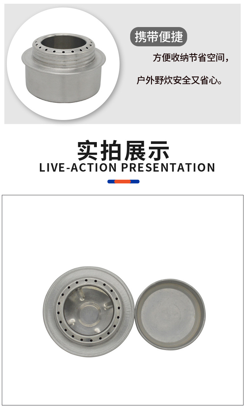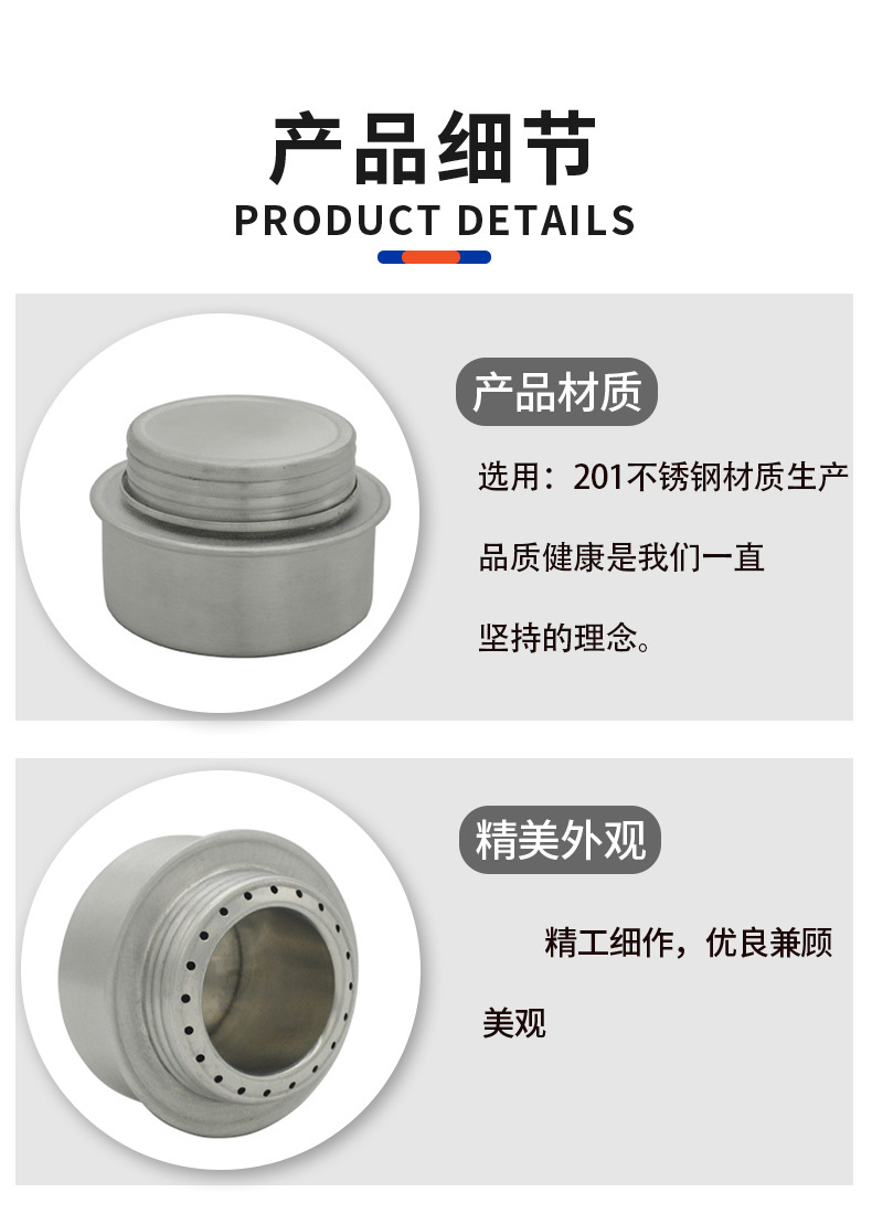 Pabrik perlengkapan berkemah gunung luar ruangan kompor piknik aluminium stainless steel ban dalam HWL-19L kompor alkohol aluminium 100ml