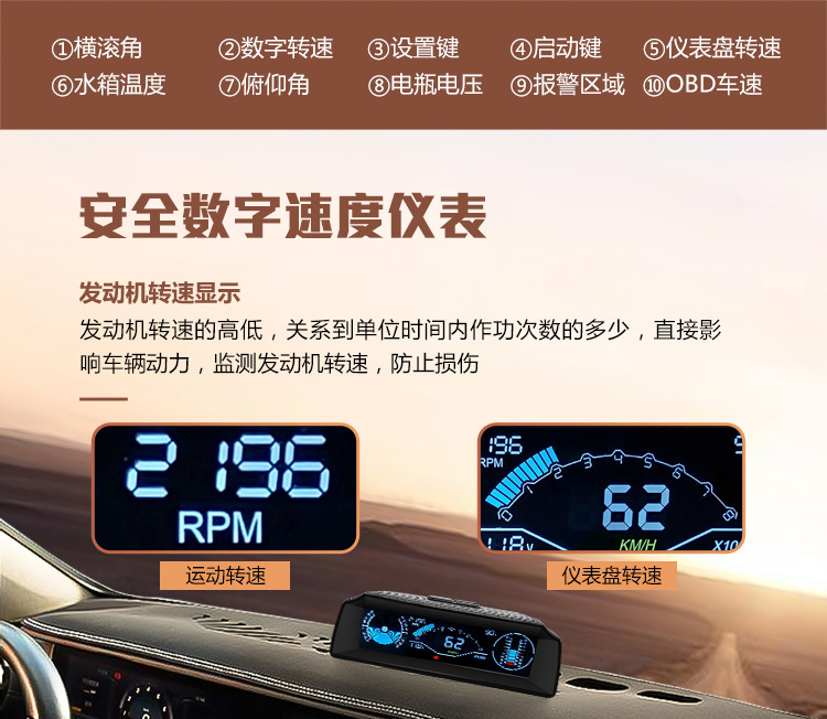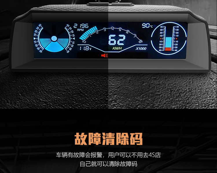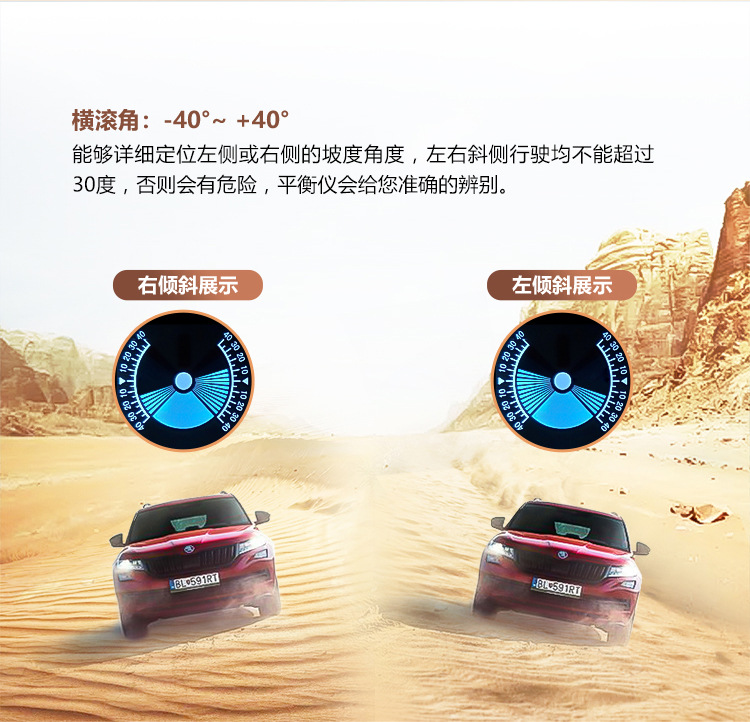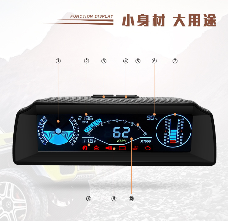 Display head-up mobil, OBD kecepatan air voltmeter tampilan kepala meja off-road instrumen keseimbangan kemiringan