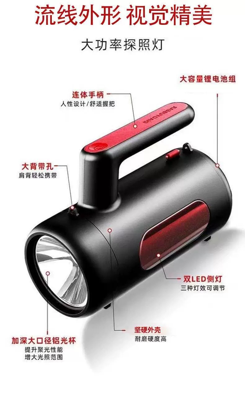 Lampu senter portabel lampu kuat COB, lampu samping peringatan lampu deteksi daya tahan lama