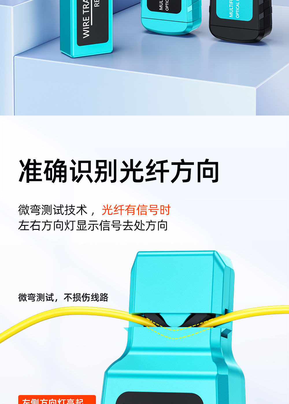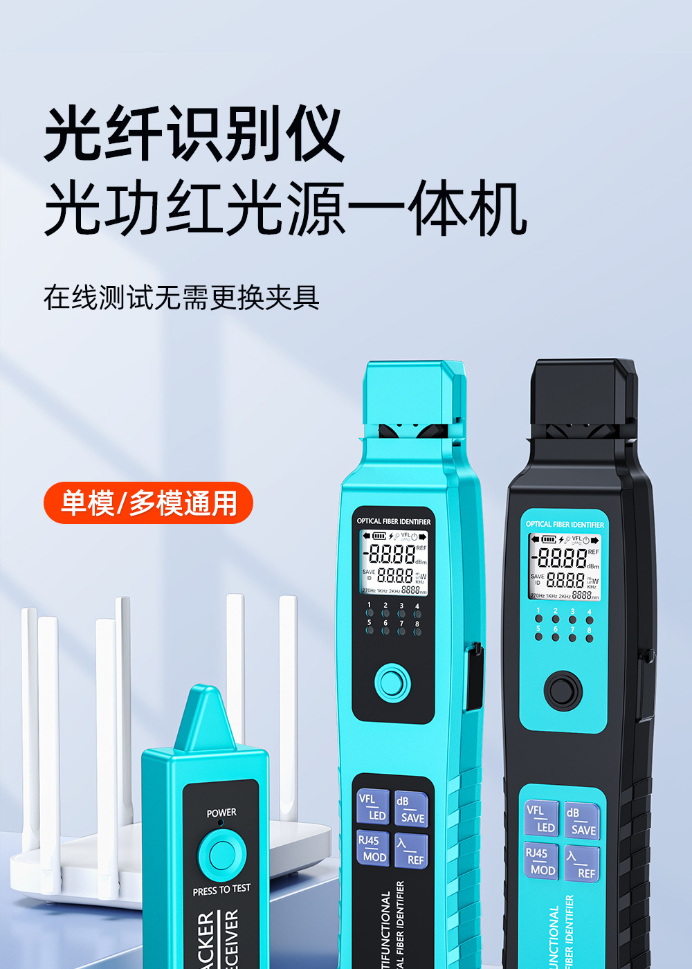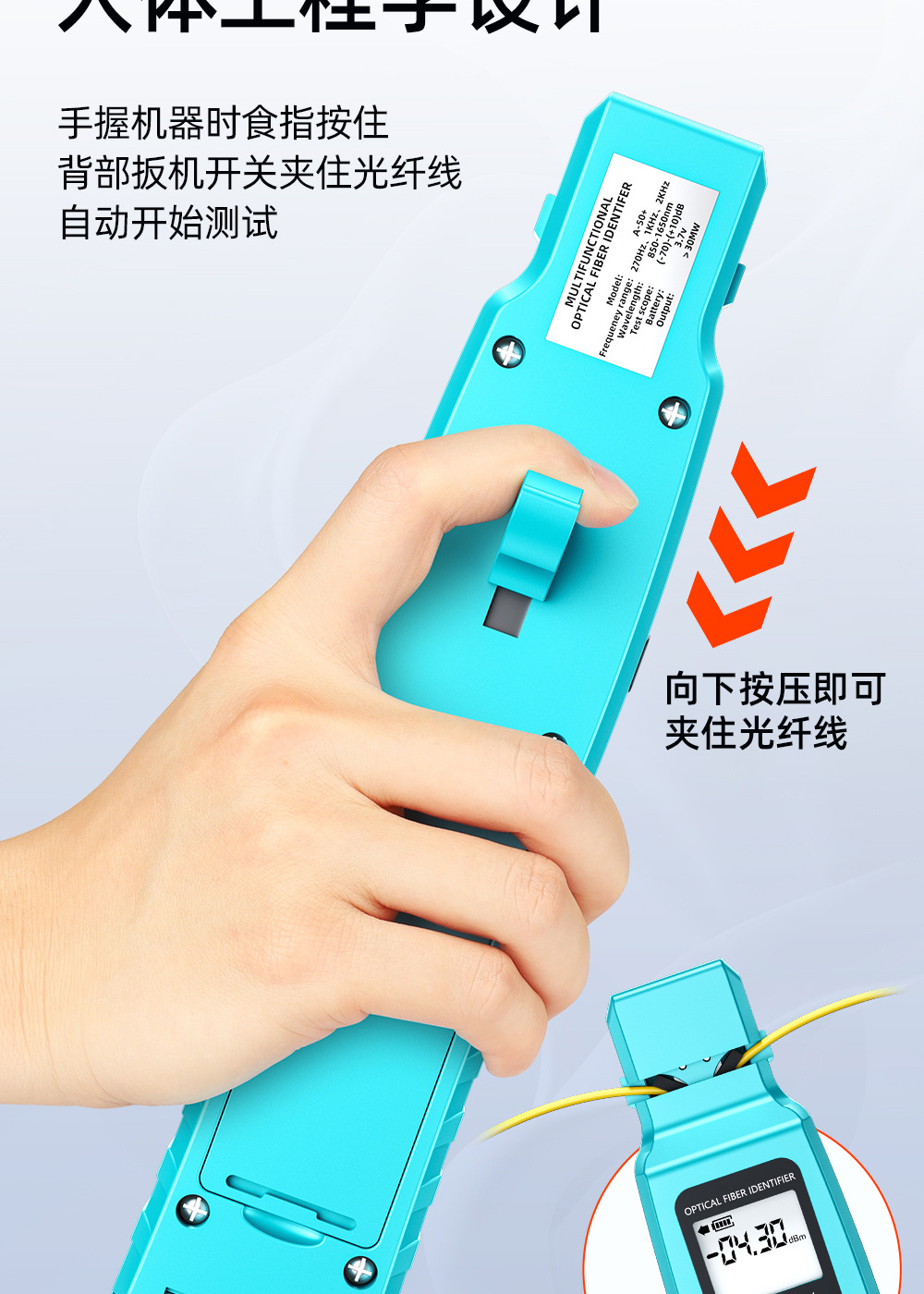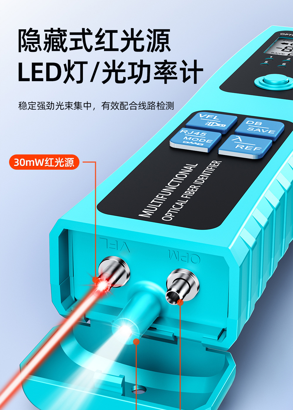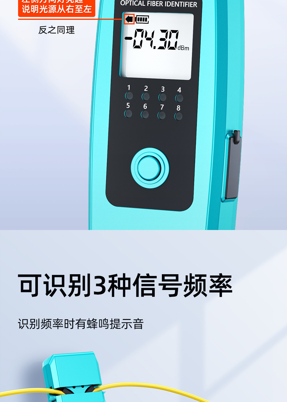 Mesin pengidentifikasi sinyal serat optik sumber cahaya merah all-in-one detektor 30 km penjepit empat-dalam-satu identifikasi arah serat optik