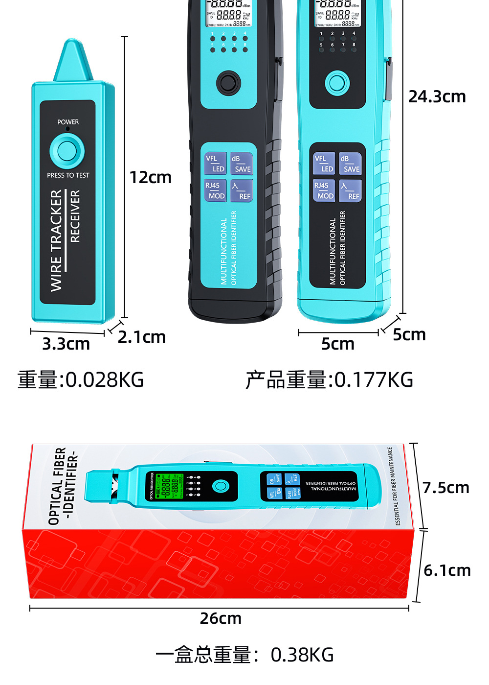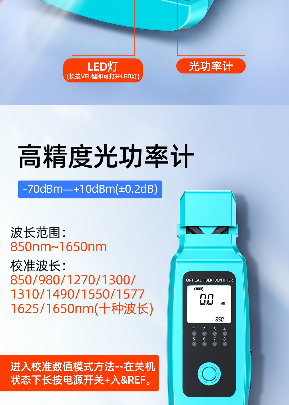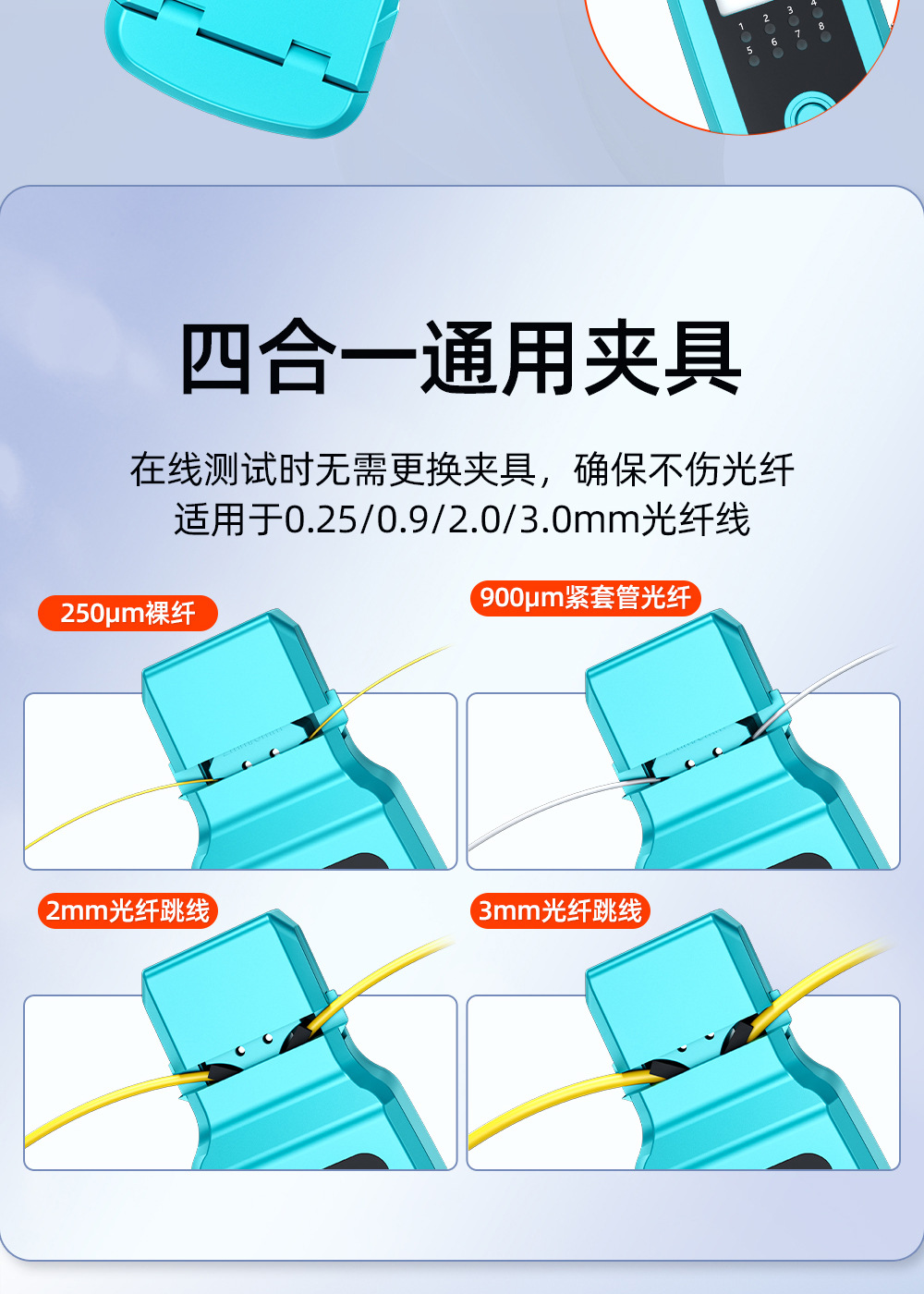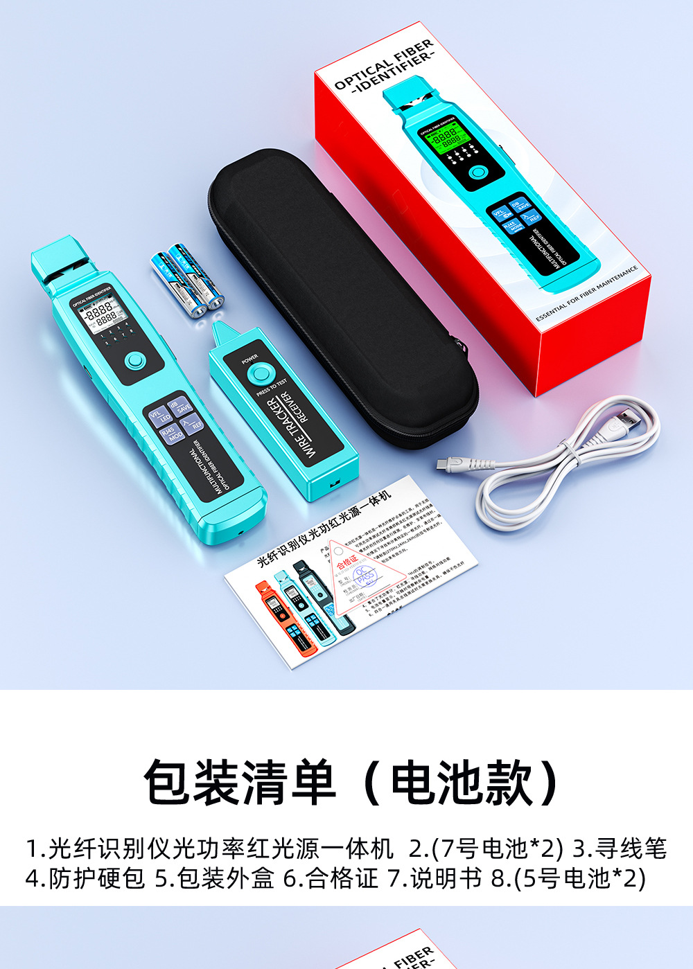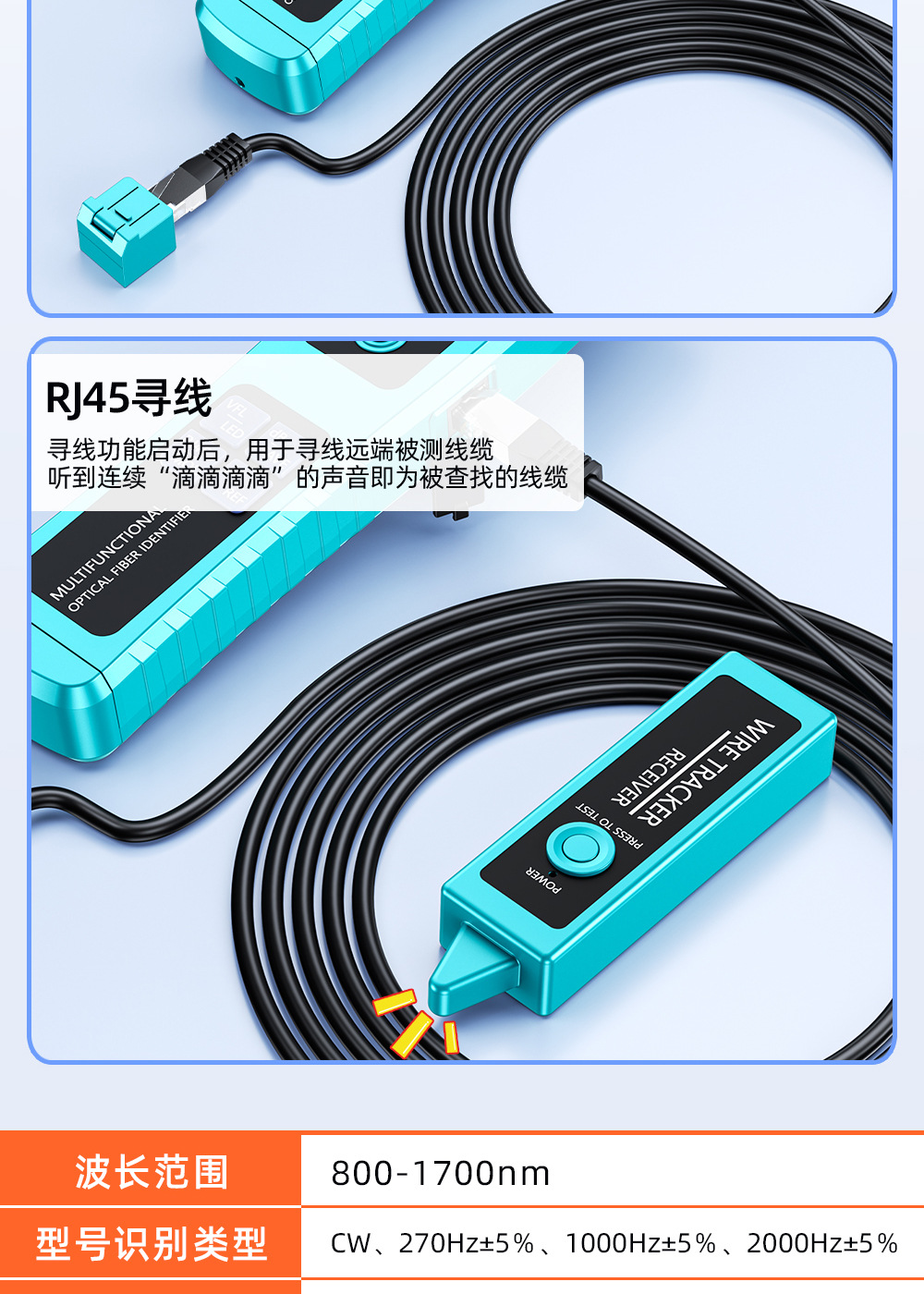 Mesin pengidentifikasi sinyal serat optik sumber cahaya merah all-in-one detektor 30 km penjepit empat-dalam-satu identifikasi arah serat optik