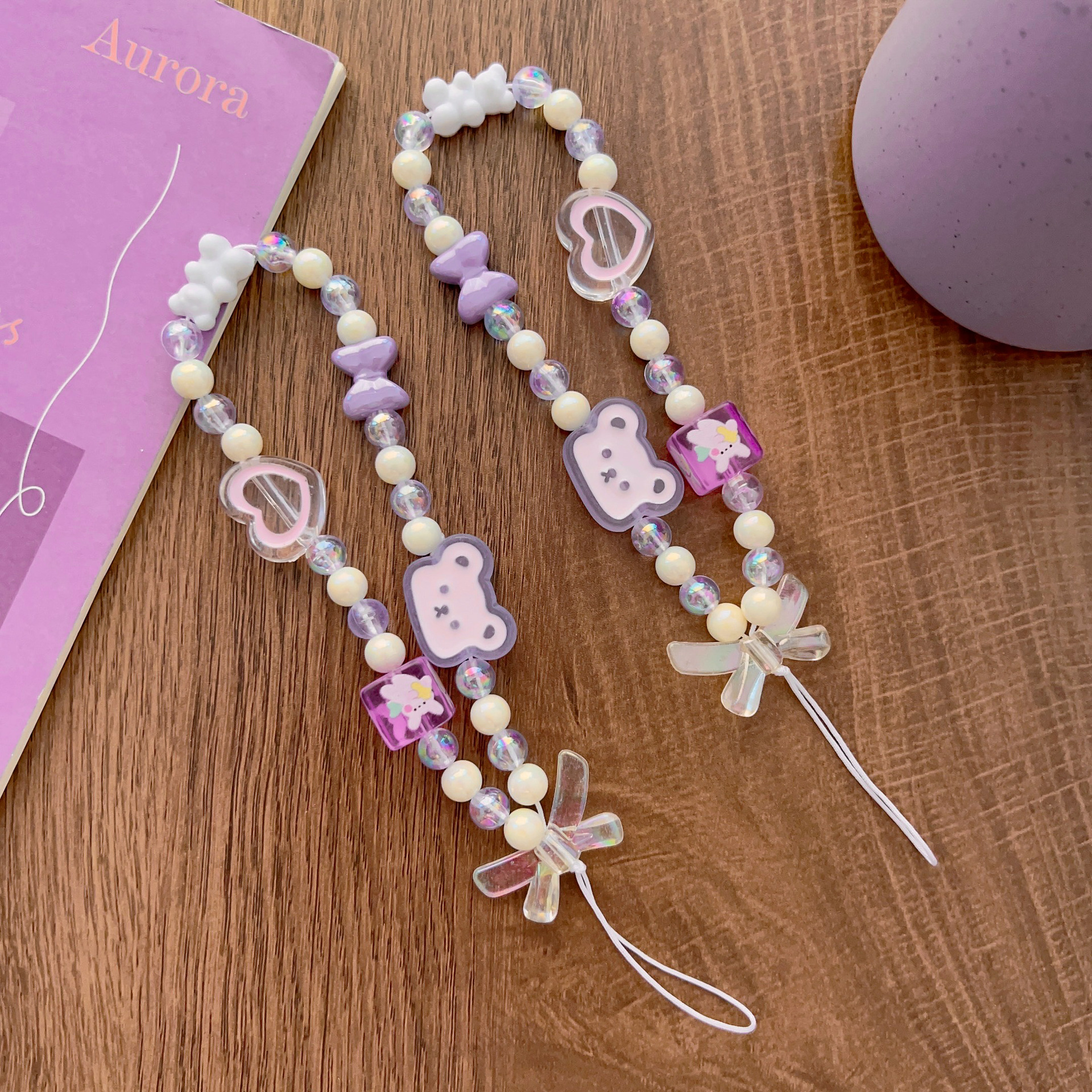 Tali gantungan ponsel, merah muda cinta beruang tali telepon seluler manik-manik rantai ponsel aksesoris liontin silang kreatif