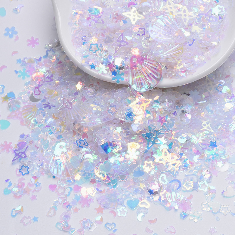 Campuran kerang payet kecil ungu biru merah muda payet diy lem glitter dekoratif mengisi bahan riasan mata wajah