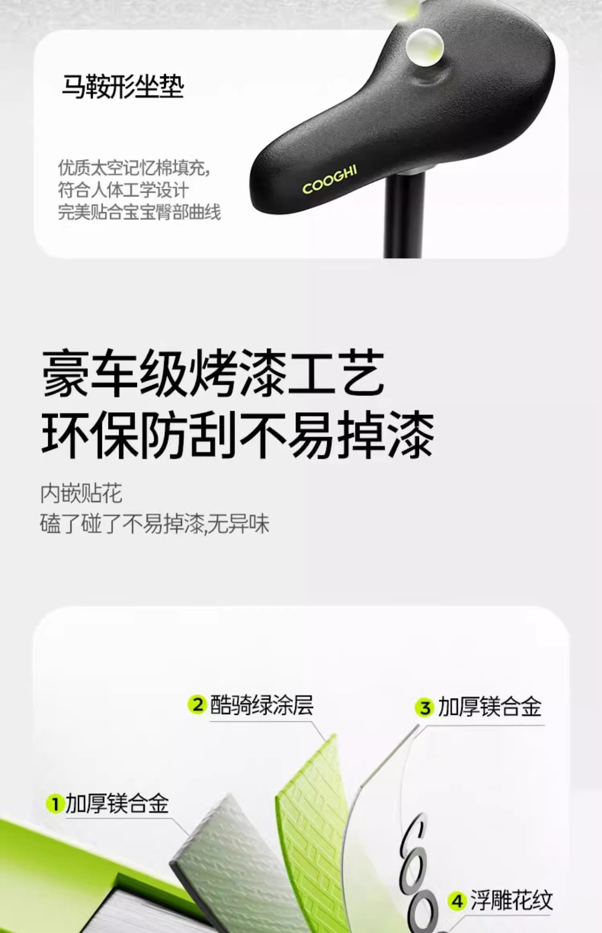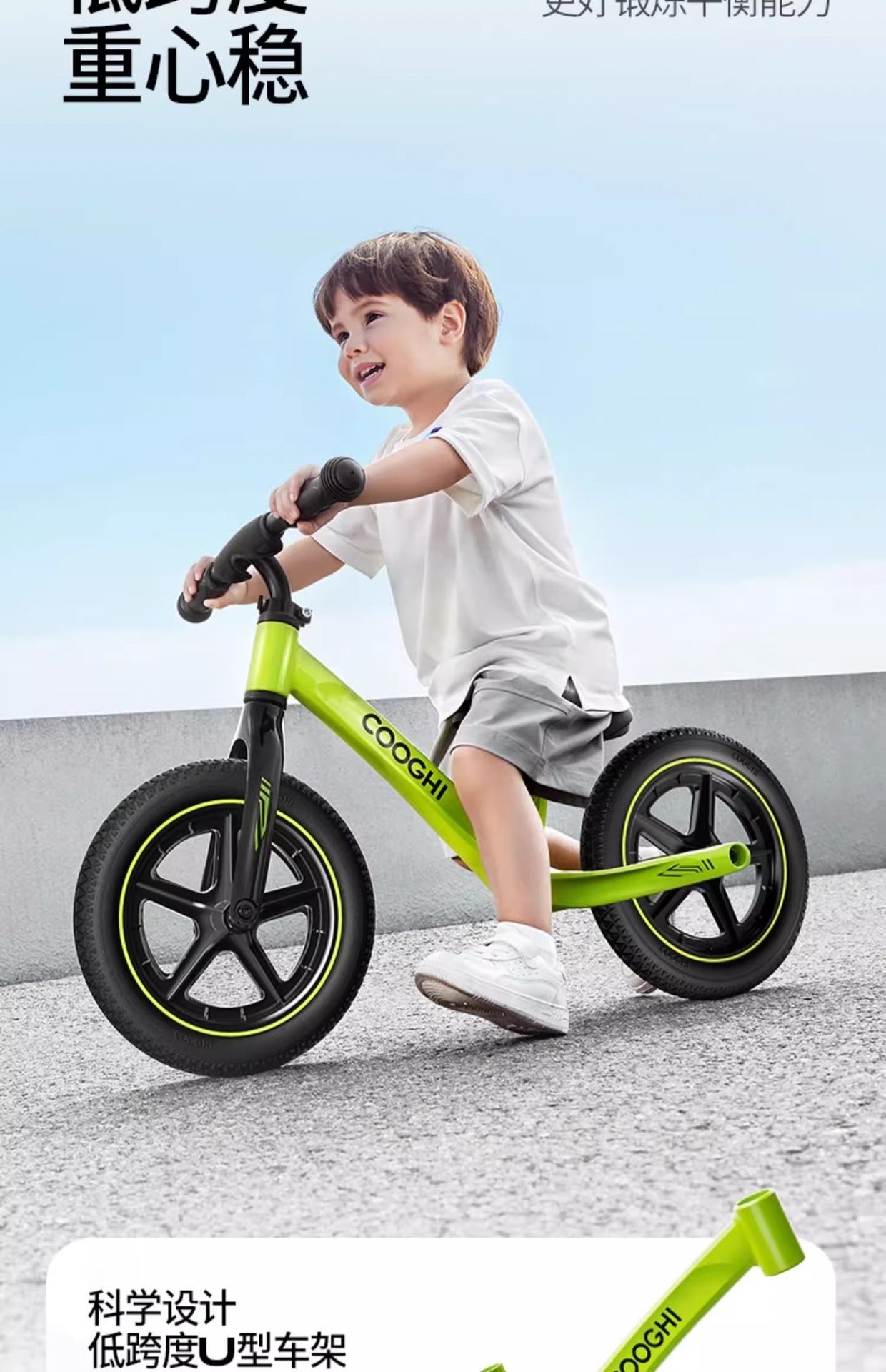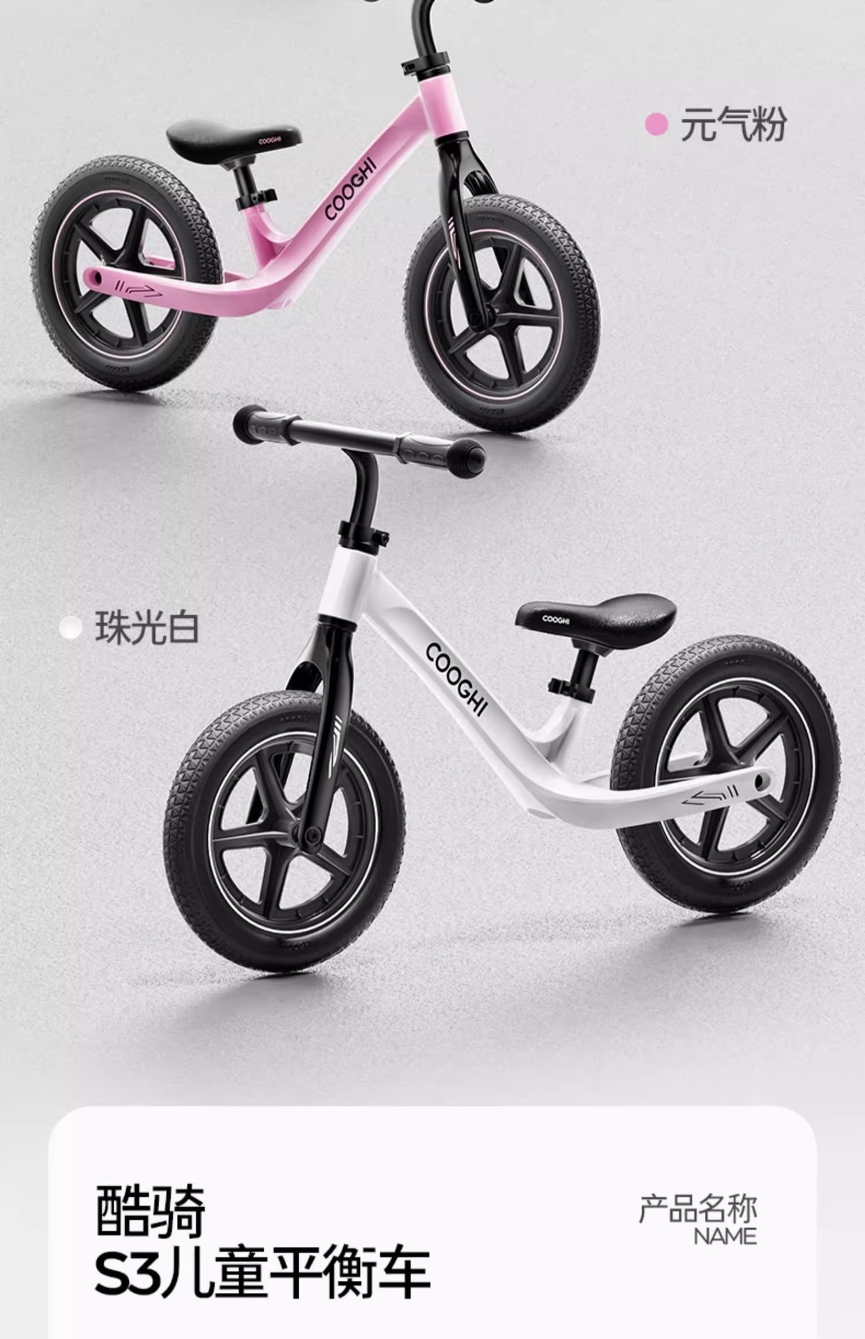 Sepeda keseimbangan anak COOGHI S3 tanpa pedal, skuter untuk anak laki-laki dan perempuan, skuter anak-anak, roda solid anti-selip