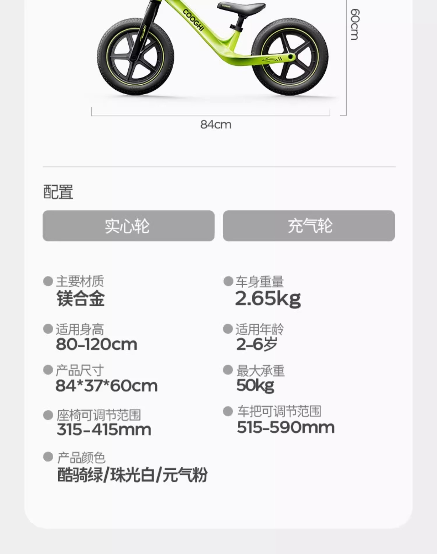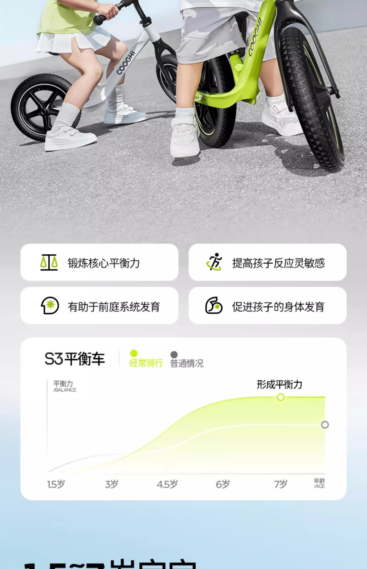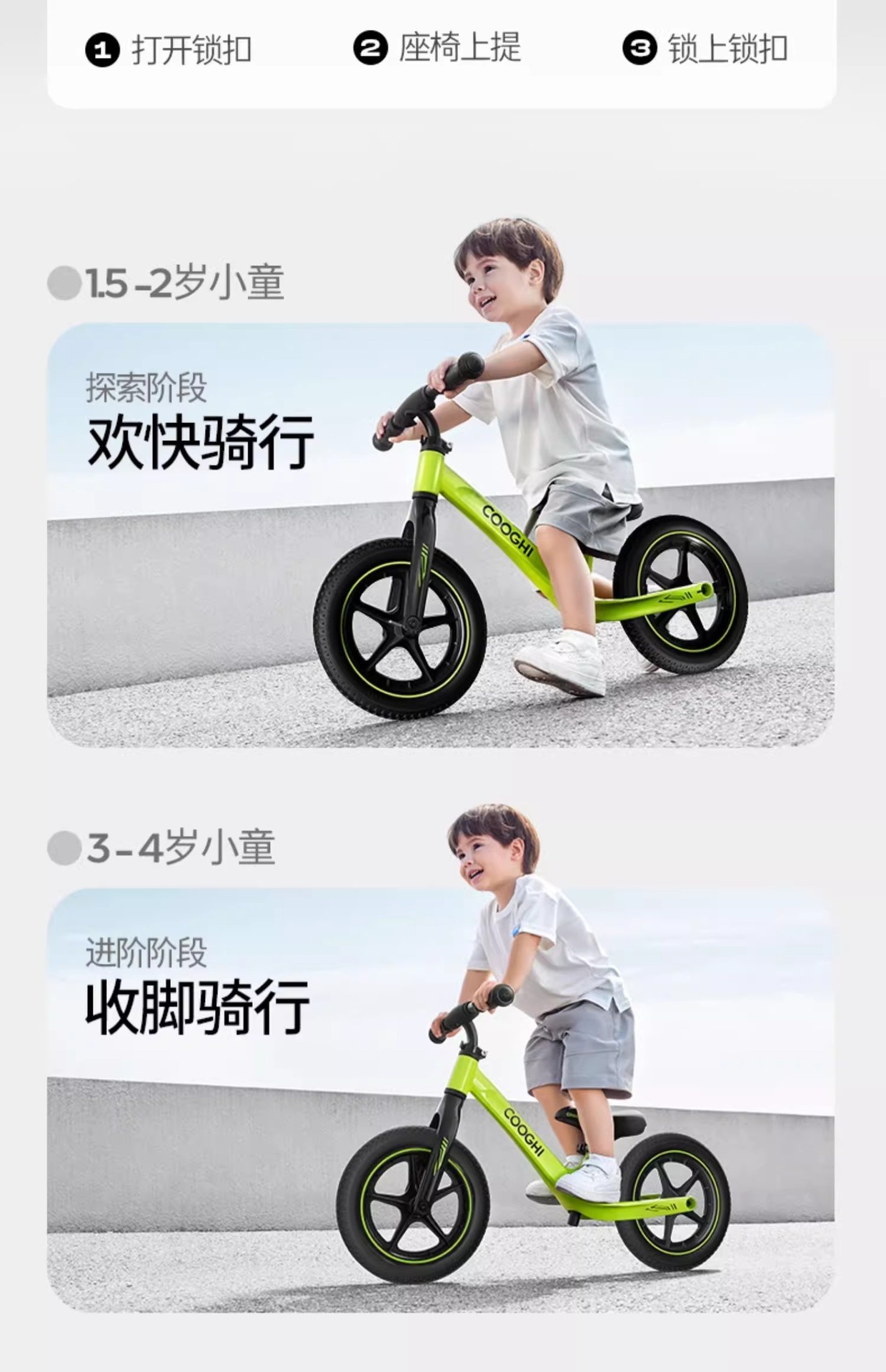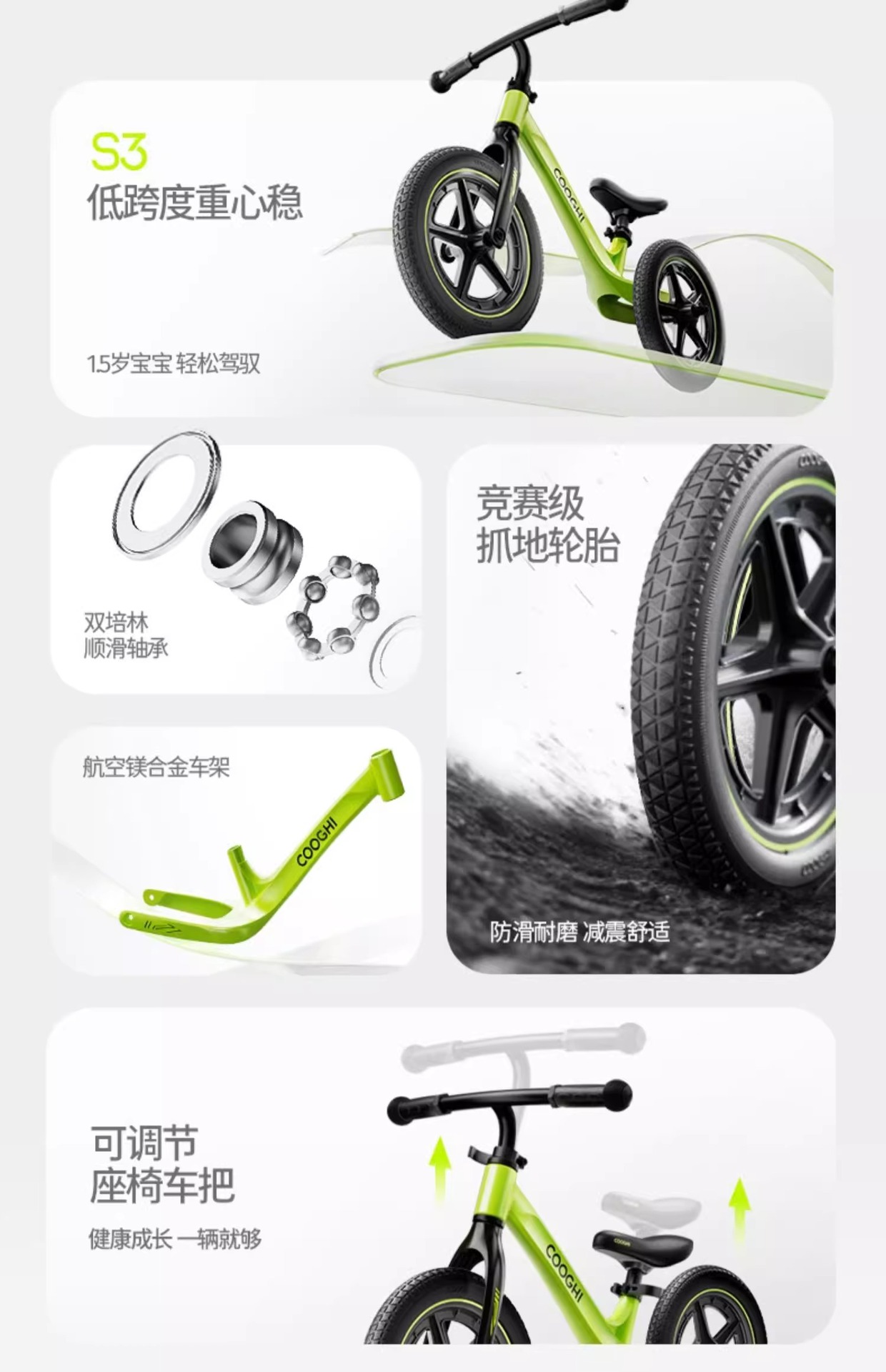 Sepeda keseimbangan anak COOGHI S3 tanpa pedal, skuter untuk anak laki-laki dan perempuan, skuter anak-anak, roda solid anti-selip