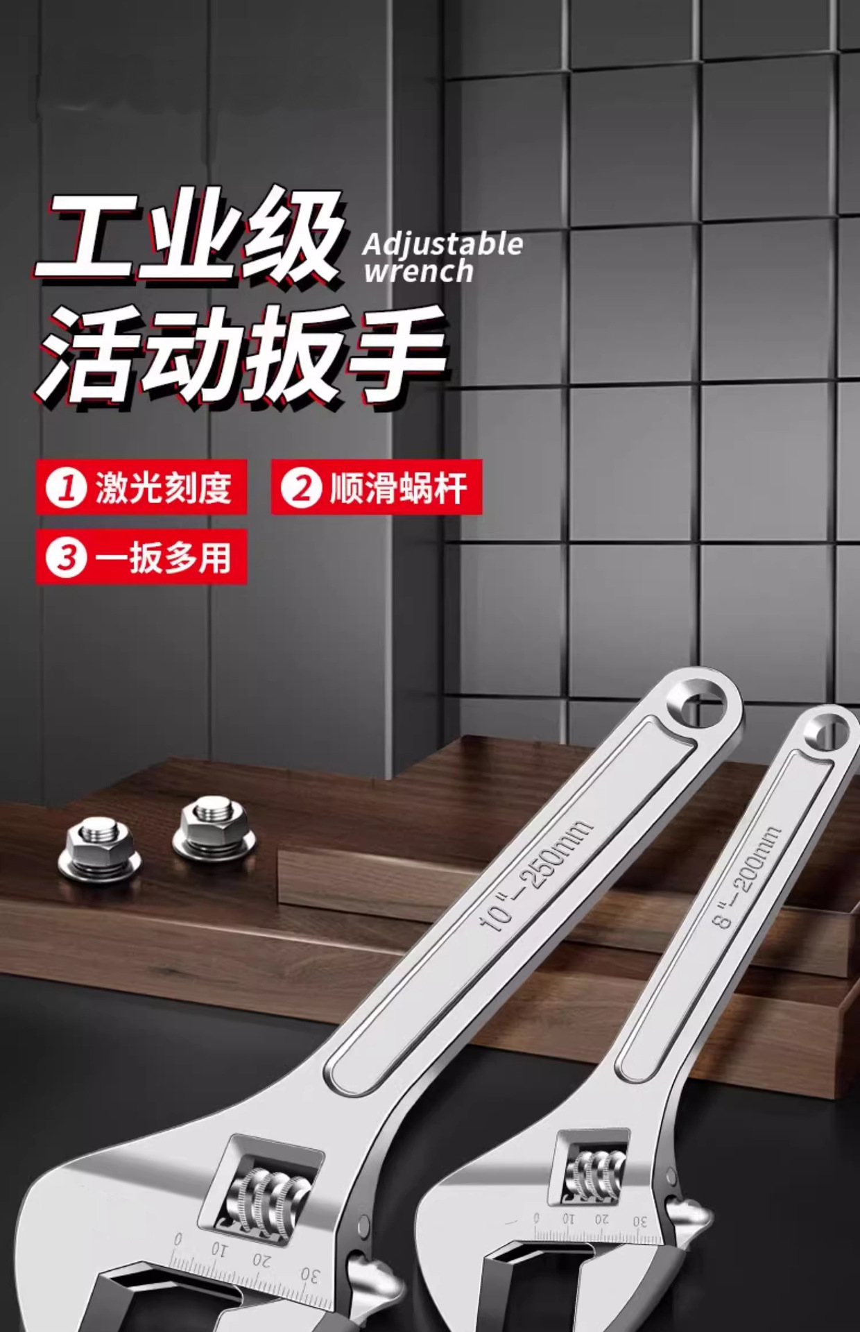 Kunci pas multifungsi dengan bukaan besar, kunci pas pipa yang dapat disesuaikan, alat perbaikan manual, perangkat keras