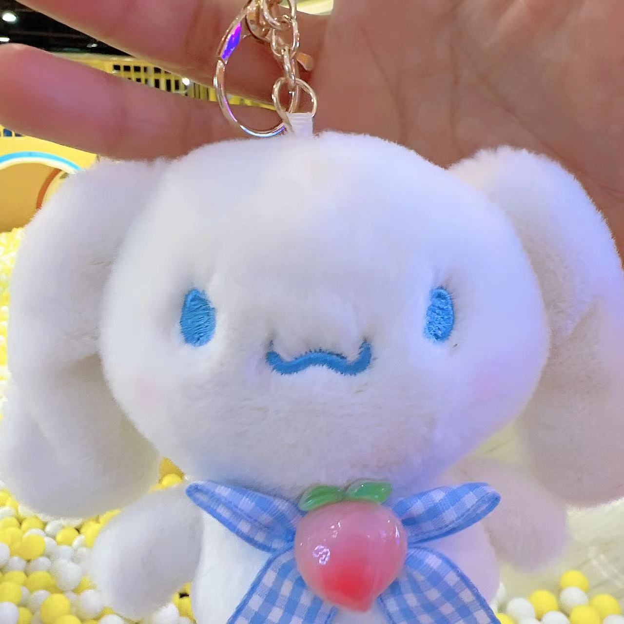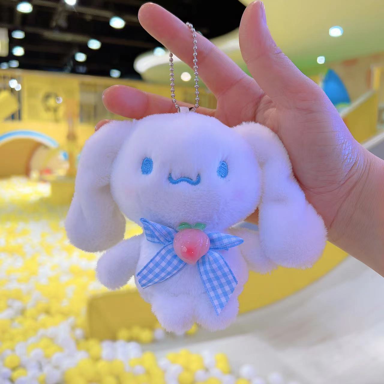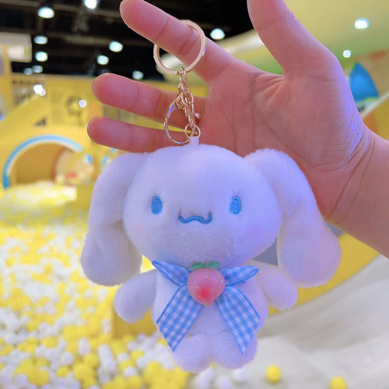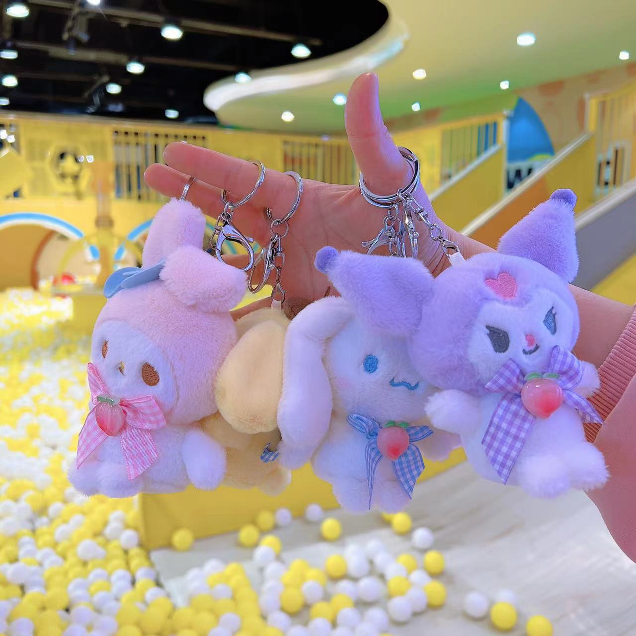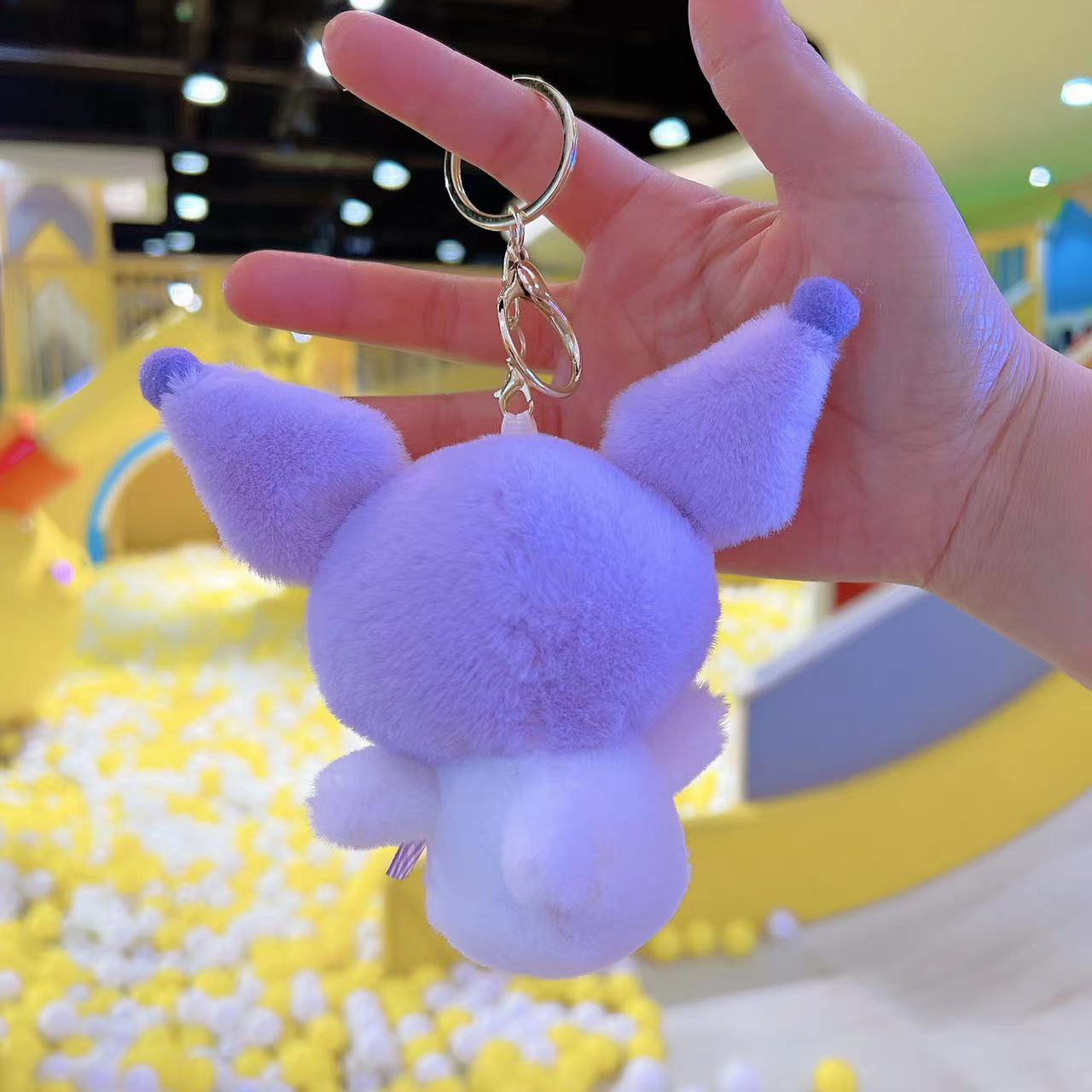 Gantungan kunci Kuromi berbulu besar bergaya gadis imut yang terkenal di internet, liontin anjing Cinnamoroll, ikat rambut, tali rambut.