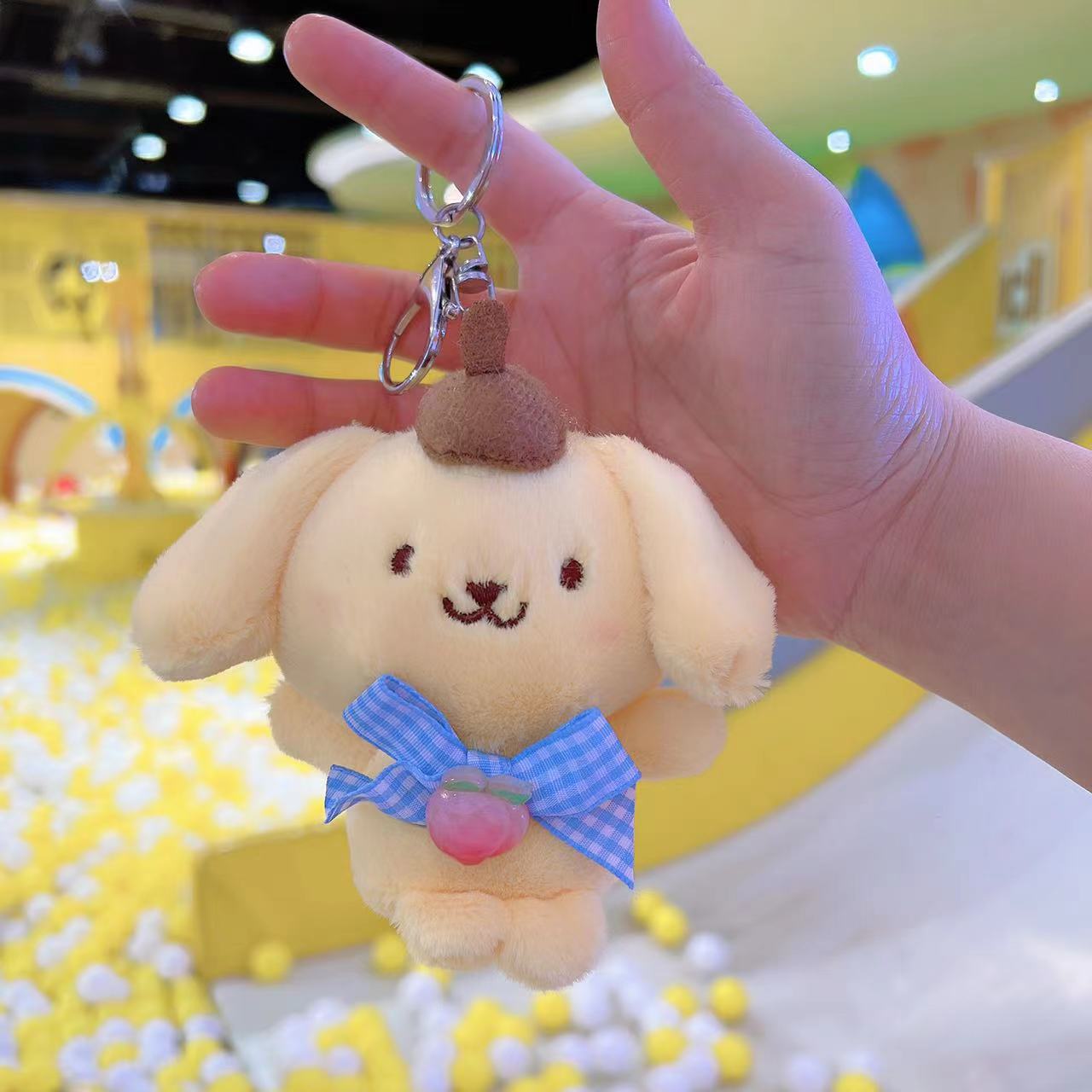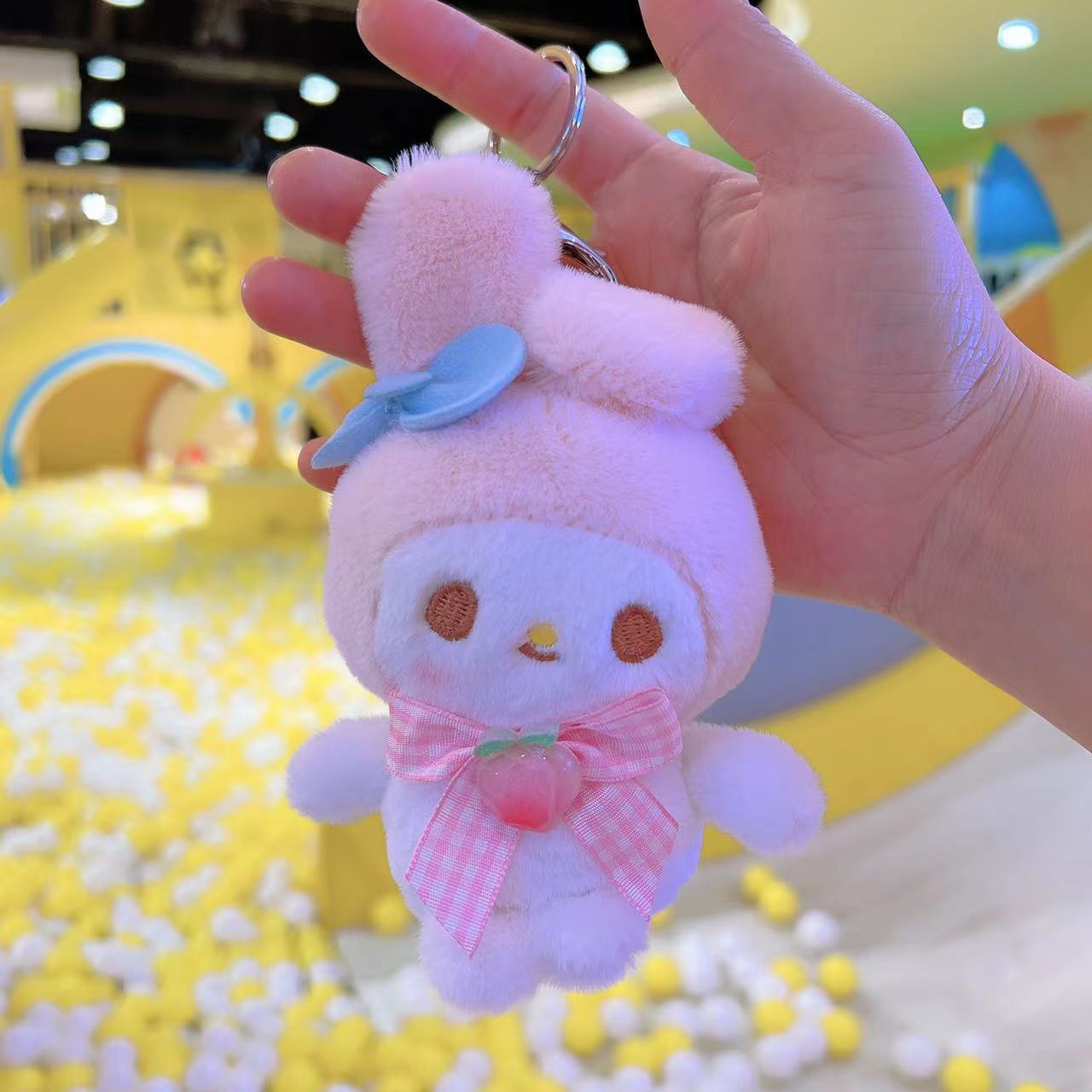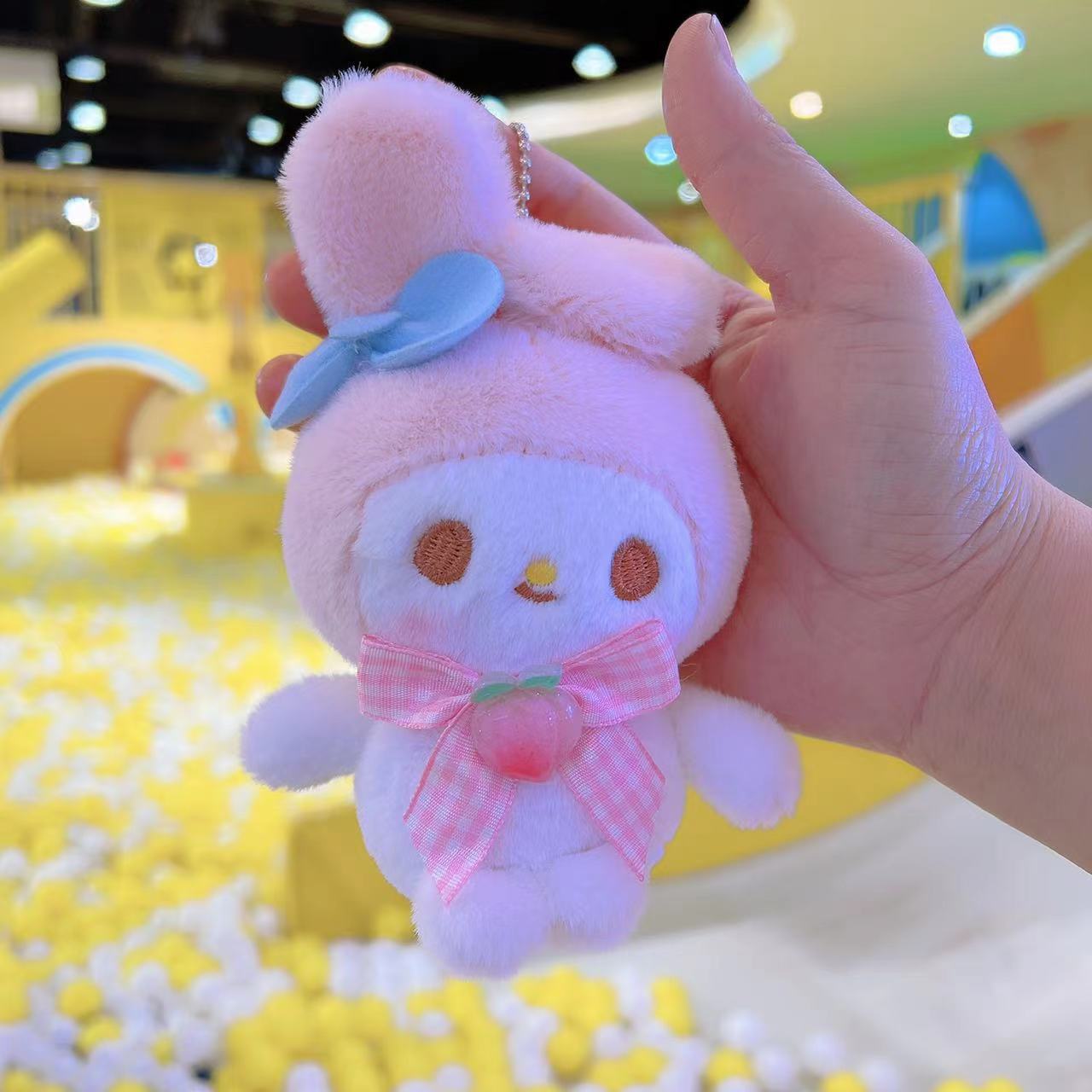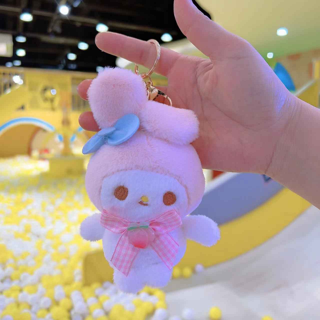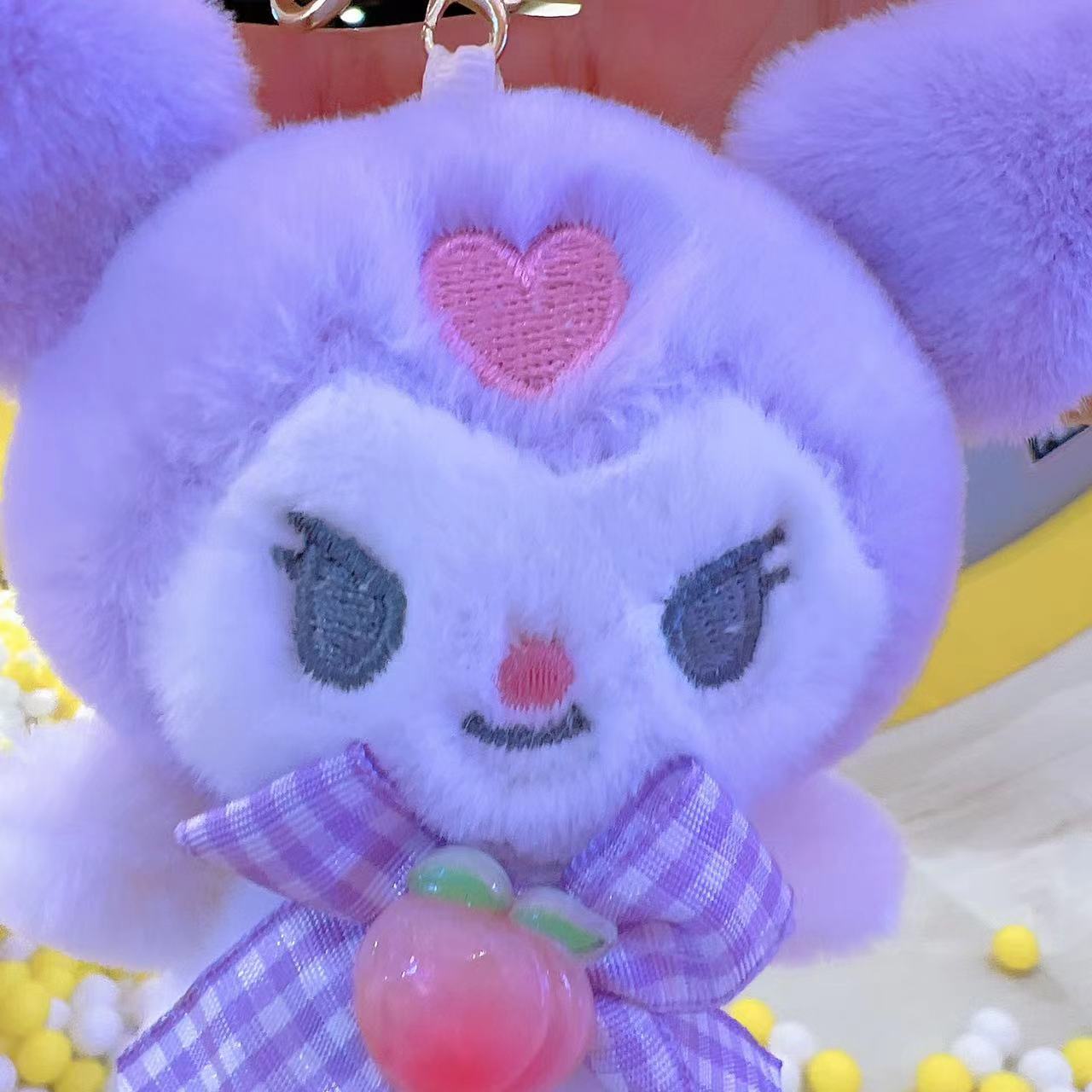 Gantungan kunci Kuromi berbulu besar bergaya gadis imut yang terkenal di internet, liontin anjing Cinnamoroll, ikat rambut, tali rambut.