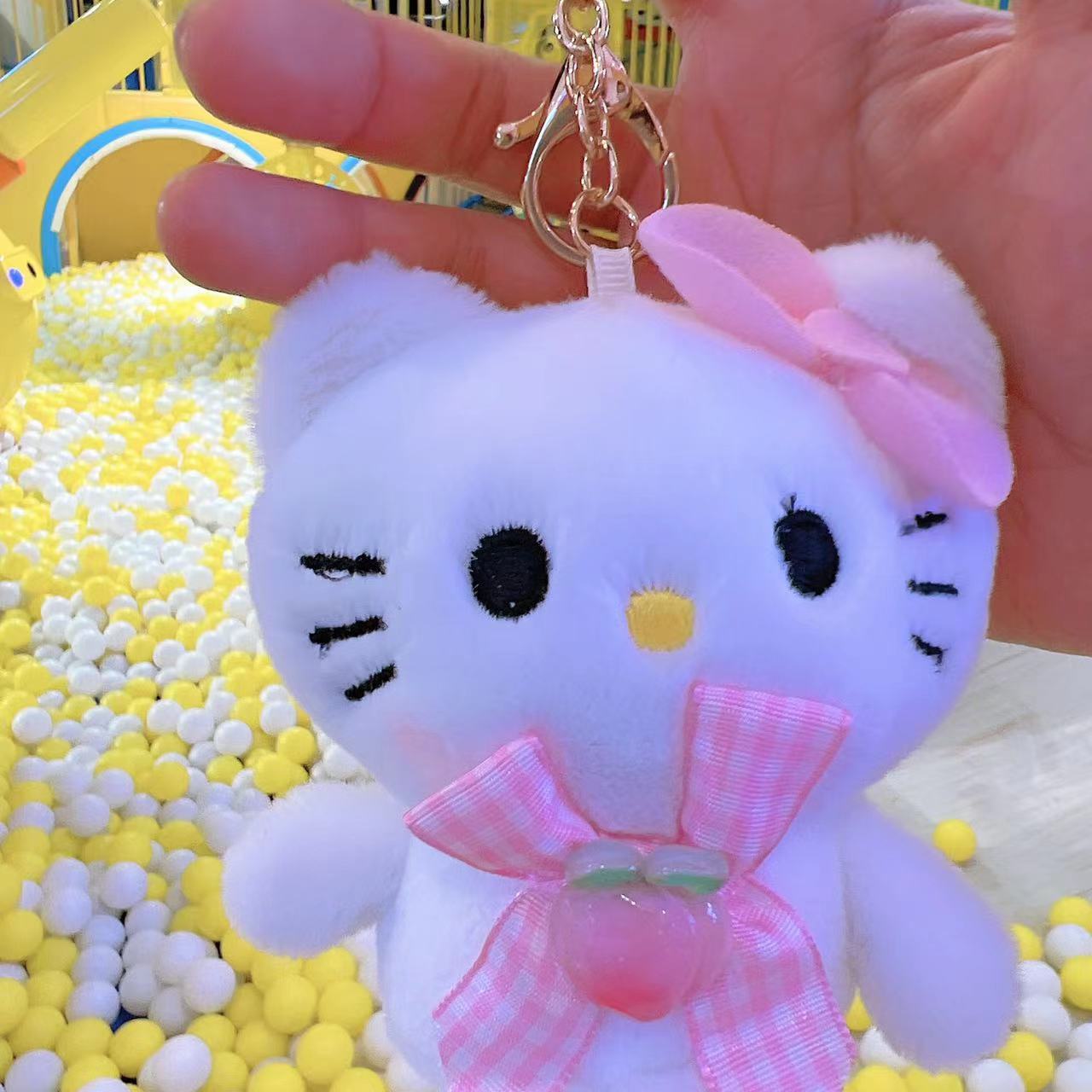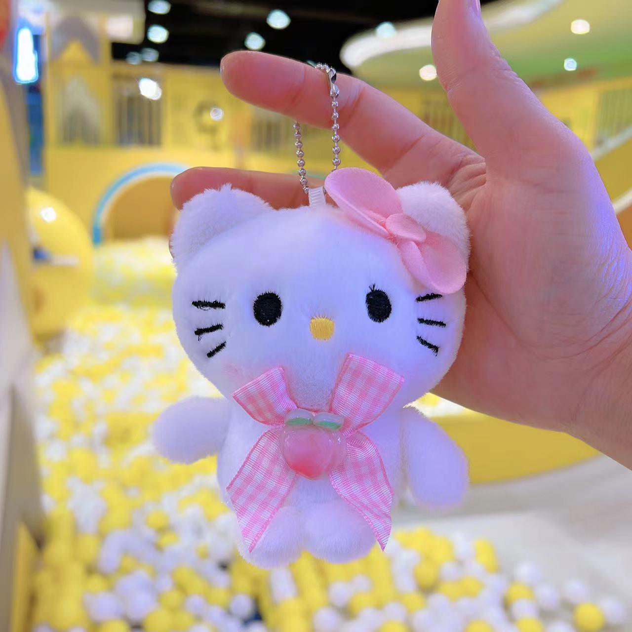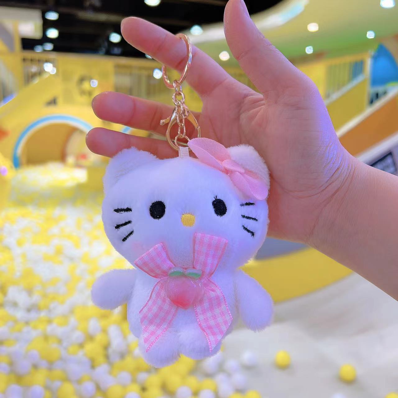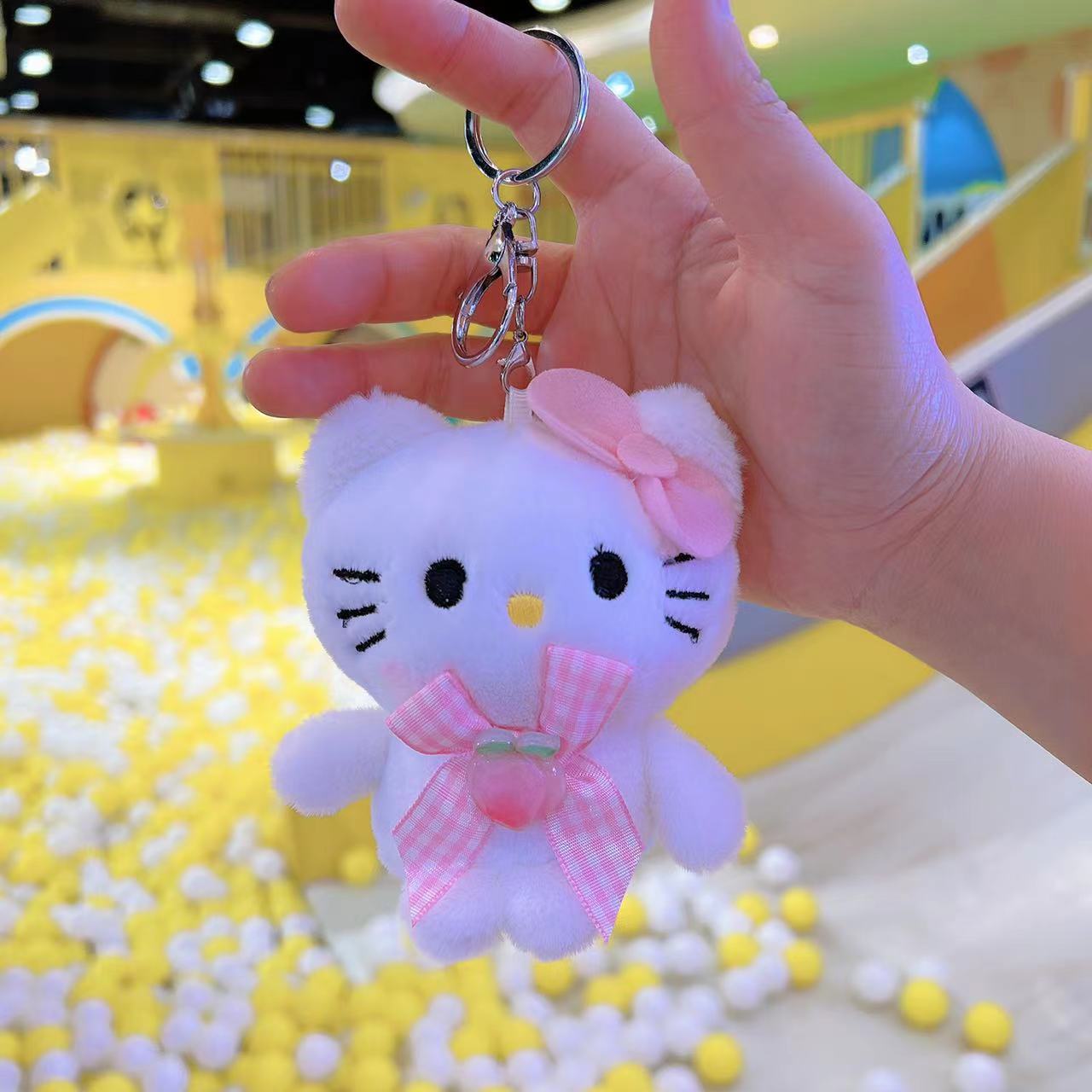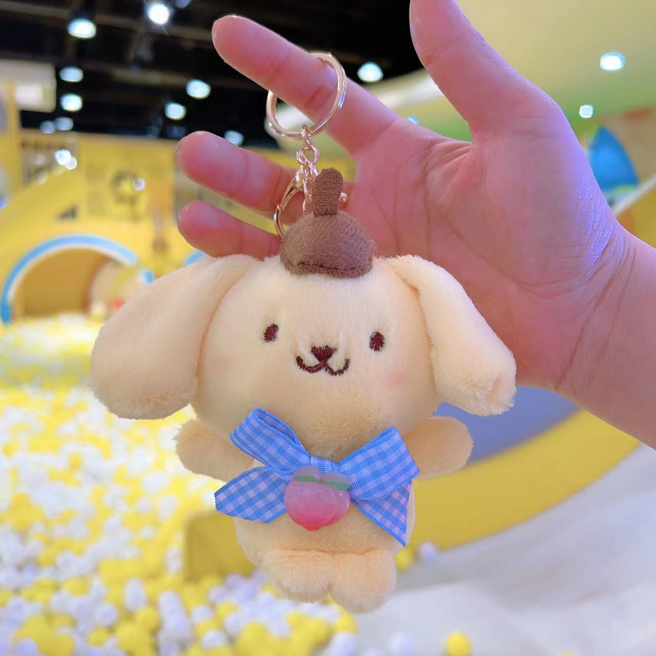 Gantungan kunci Kuromi berbulu besar bergaya gadis imut yang terkenal di internet, liontin anjing Cinnamoroll, ikat rambut, tali rambut.