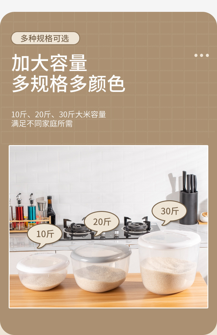 Ember beras, ember beras, anti serangga, anti kelembaban, kotak penyimpanan dapur, ember nasi, kotak penyimpanan gandum, tepung, rumah tangga