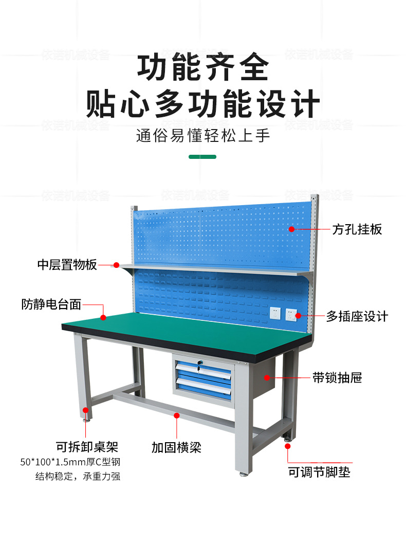 Meja Kerja pengujian laboratorium antistatis menggantung dua drawstring plug pabrik fitter assembly line console