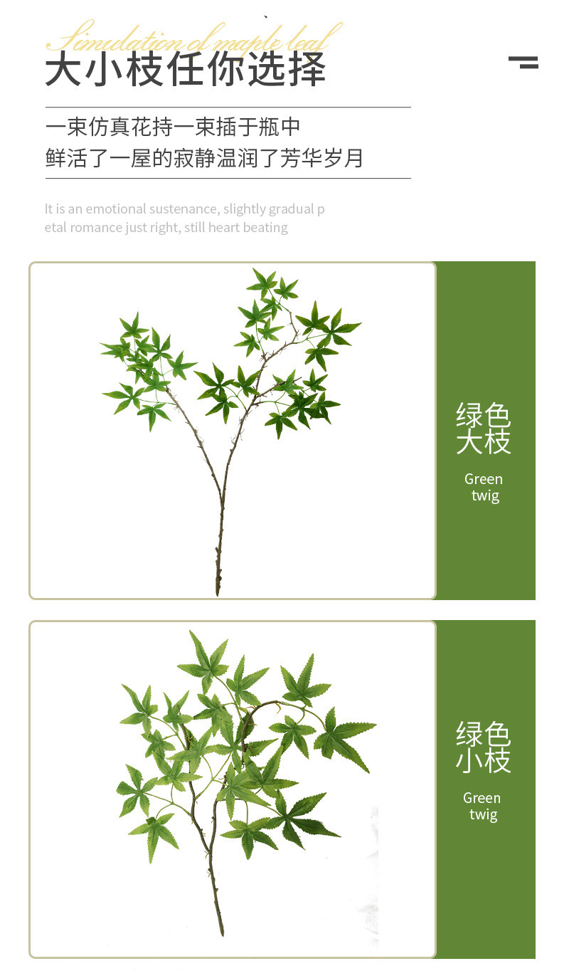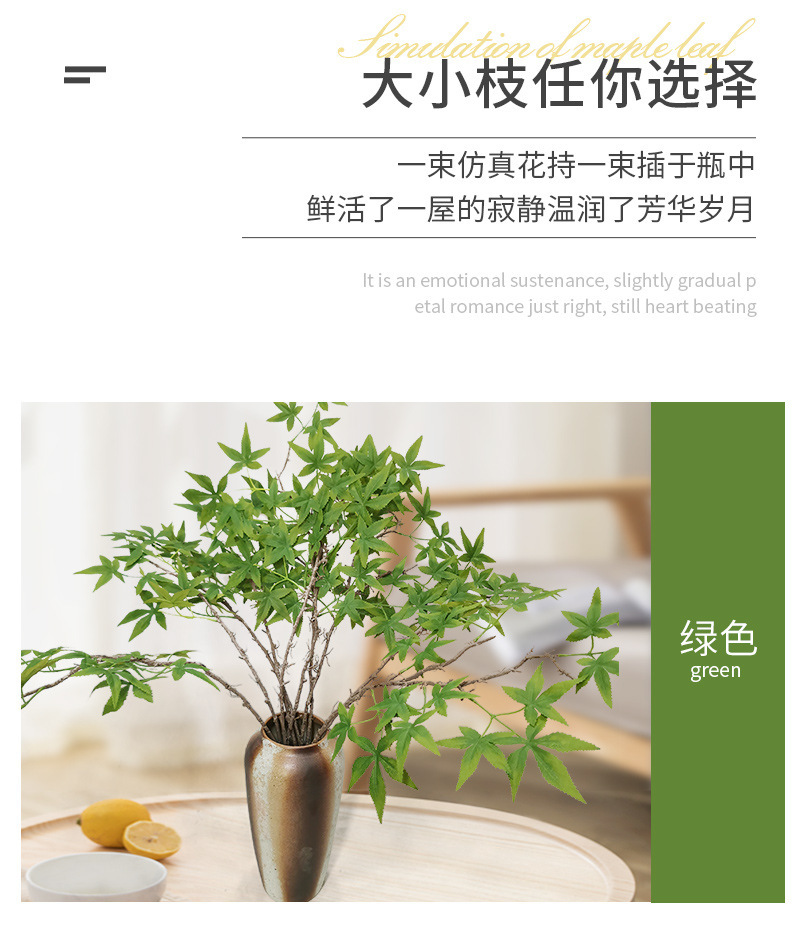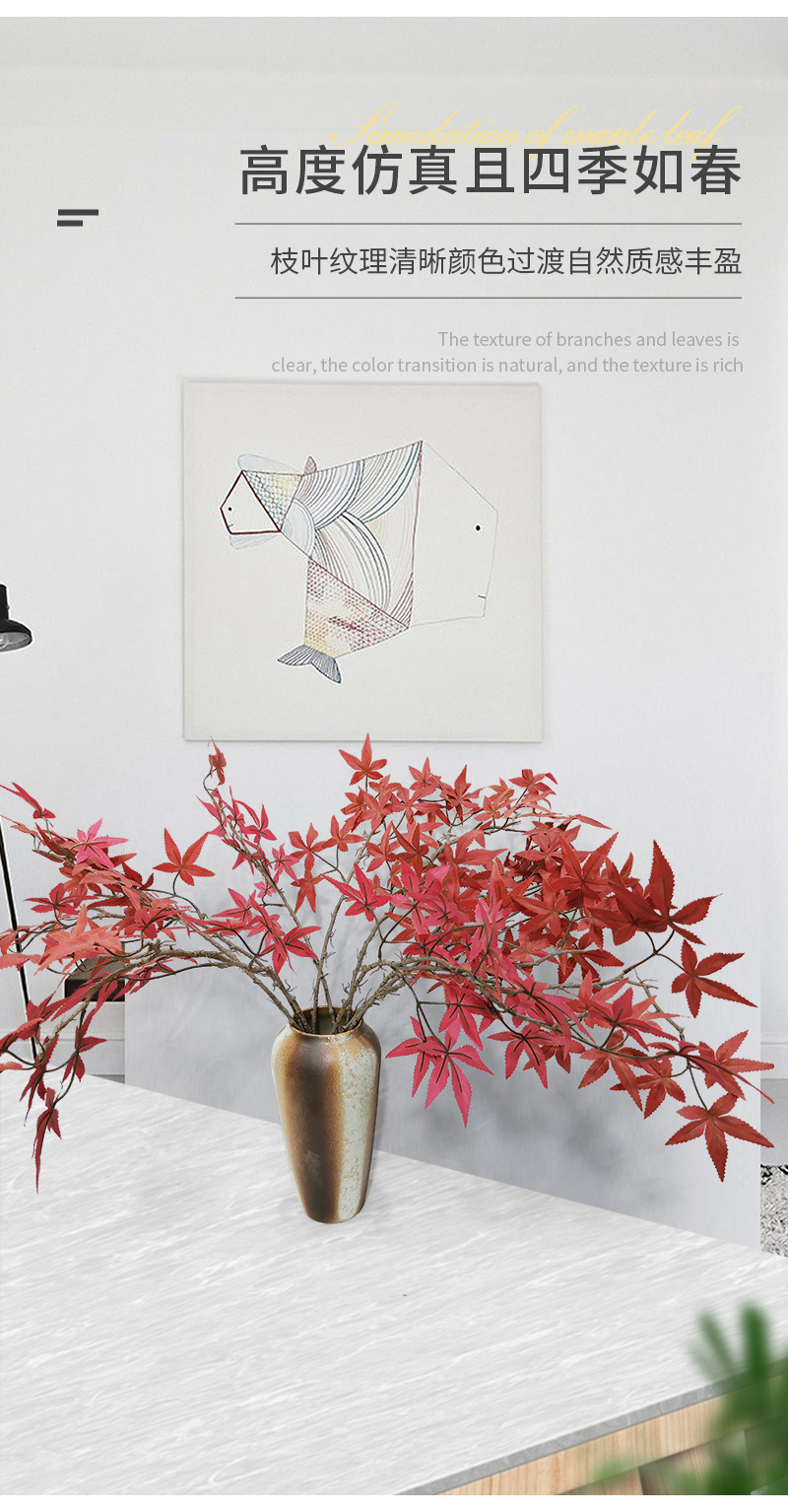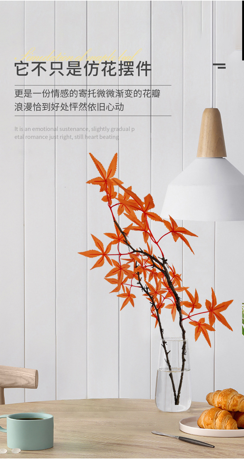 Garpu pohon daun maple merah buatan, dekorasi cabang musim gugur luar ruangan daun maple teknik lanskap ayam merah daun palsu Maple