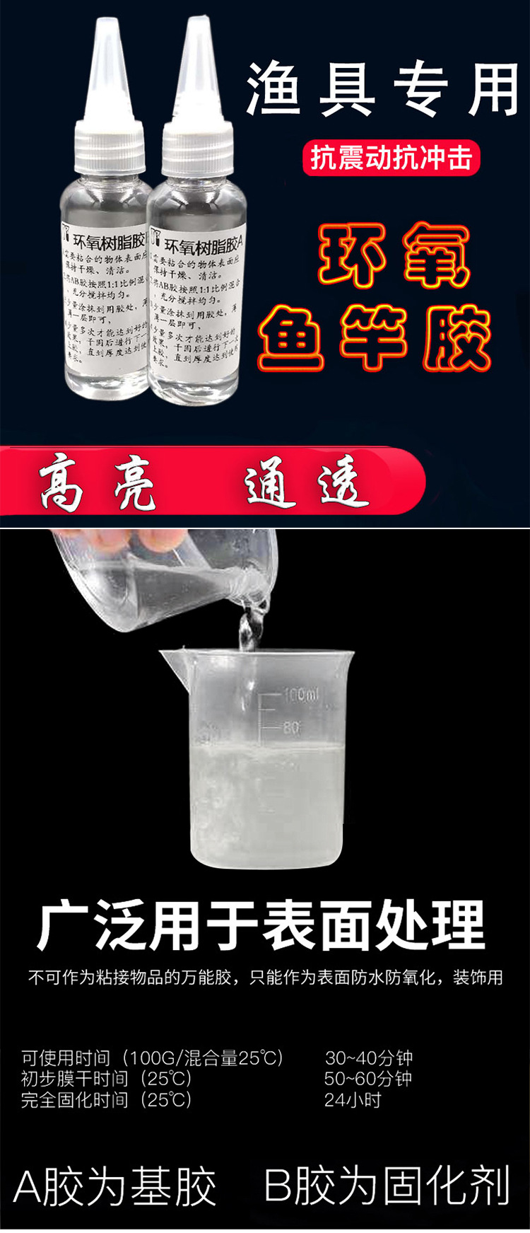 Lem joran pancing panduan dimensi DIY lem AB resin epoksi cat transparan modifikasi tahan air hadiah 1 memancing lainnya