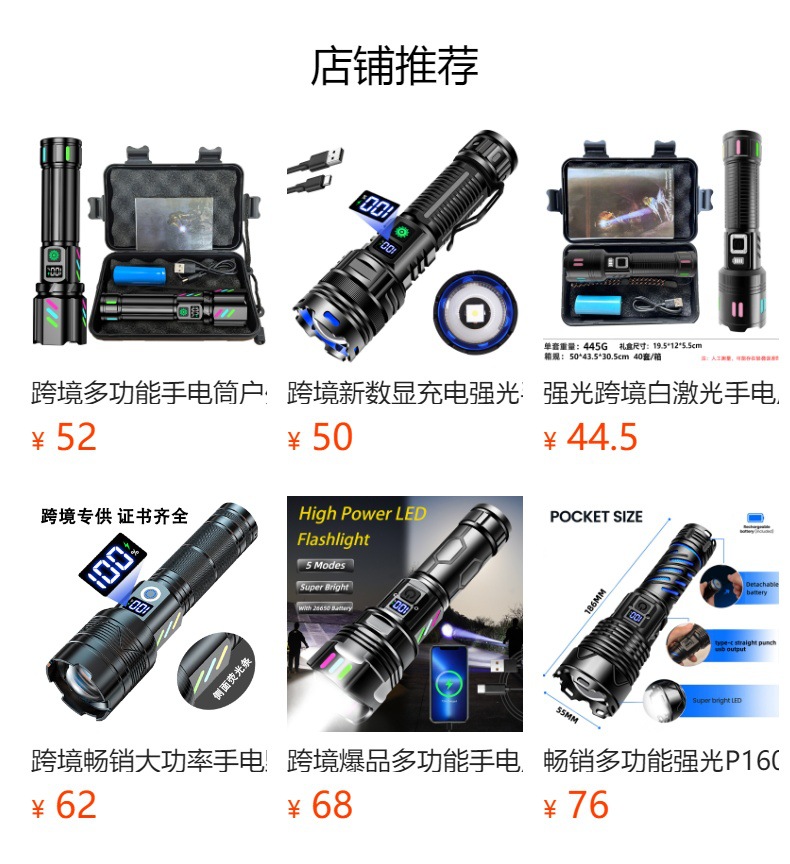 Senter cahaya kuat LED pertahanan diri terlaris Amazon, senter tampilan digital khusus luar ruangan rumah yang dapat diisi ulang tipe-c