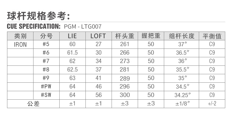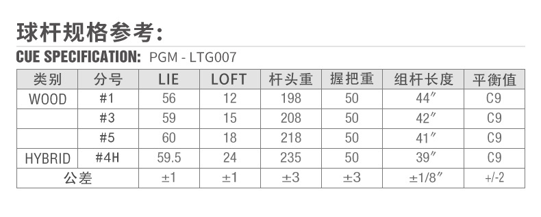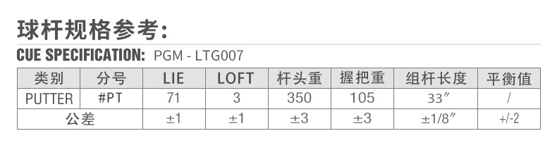 | 品 牌 | PGM | 货 号 | LTG007 | |