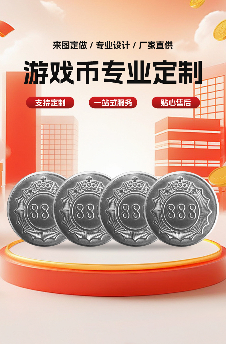 Token mesin game pola 888 koin game baja tahan karat untuk mesin cakar, khusus untuk pusat arcade, arcade tahan lama.