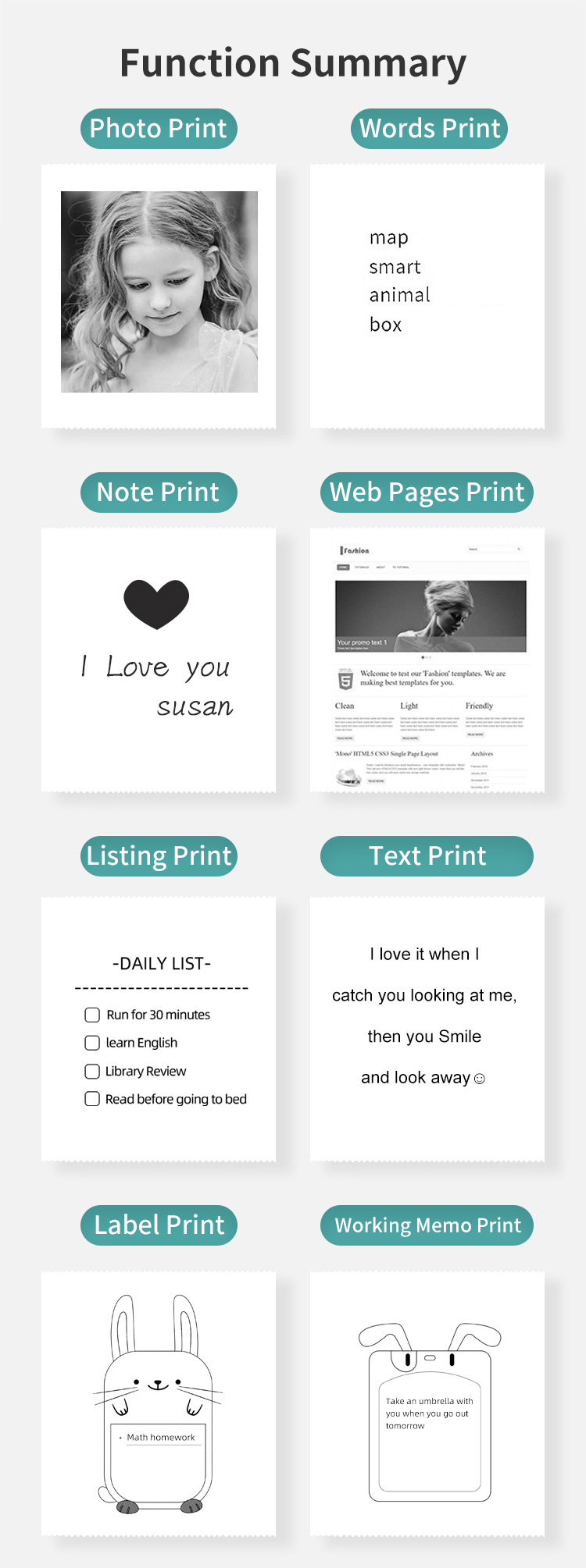 出厂标配:主机+充电线+说明书+打印纸1卷