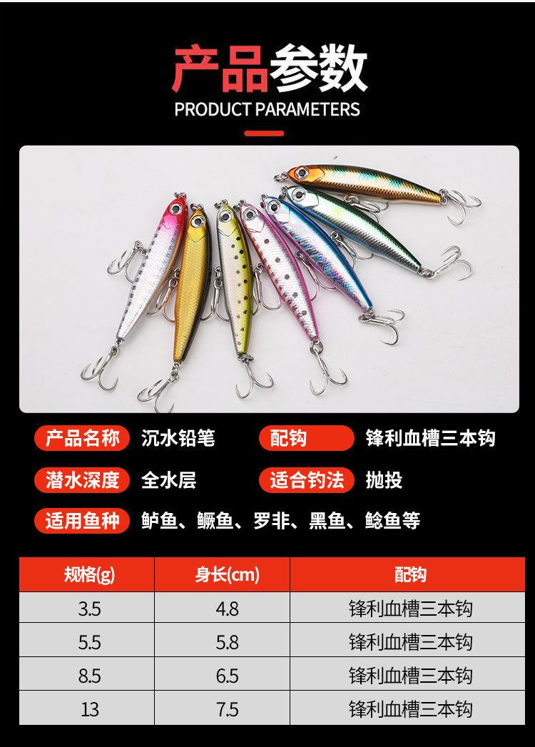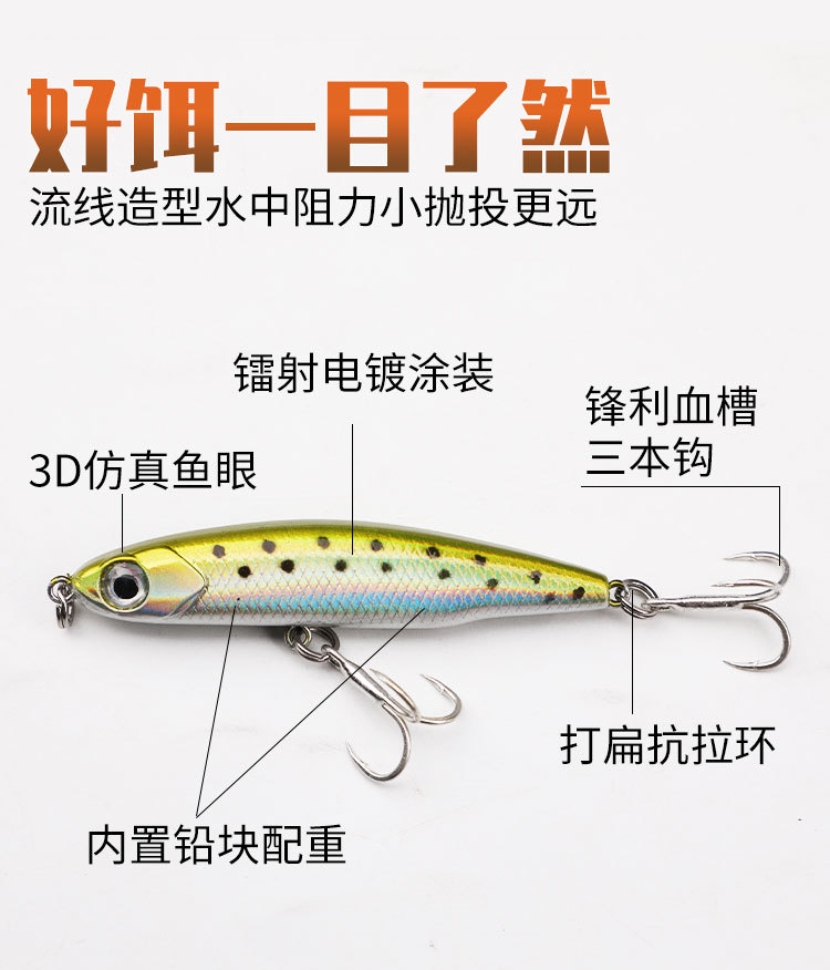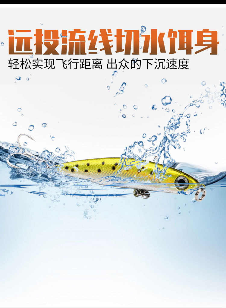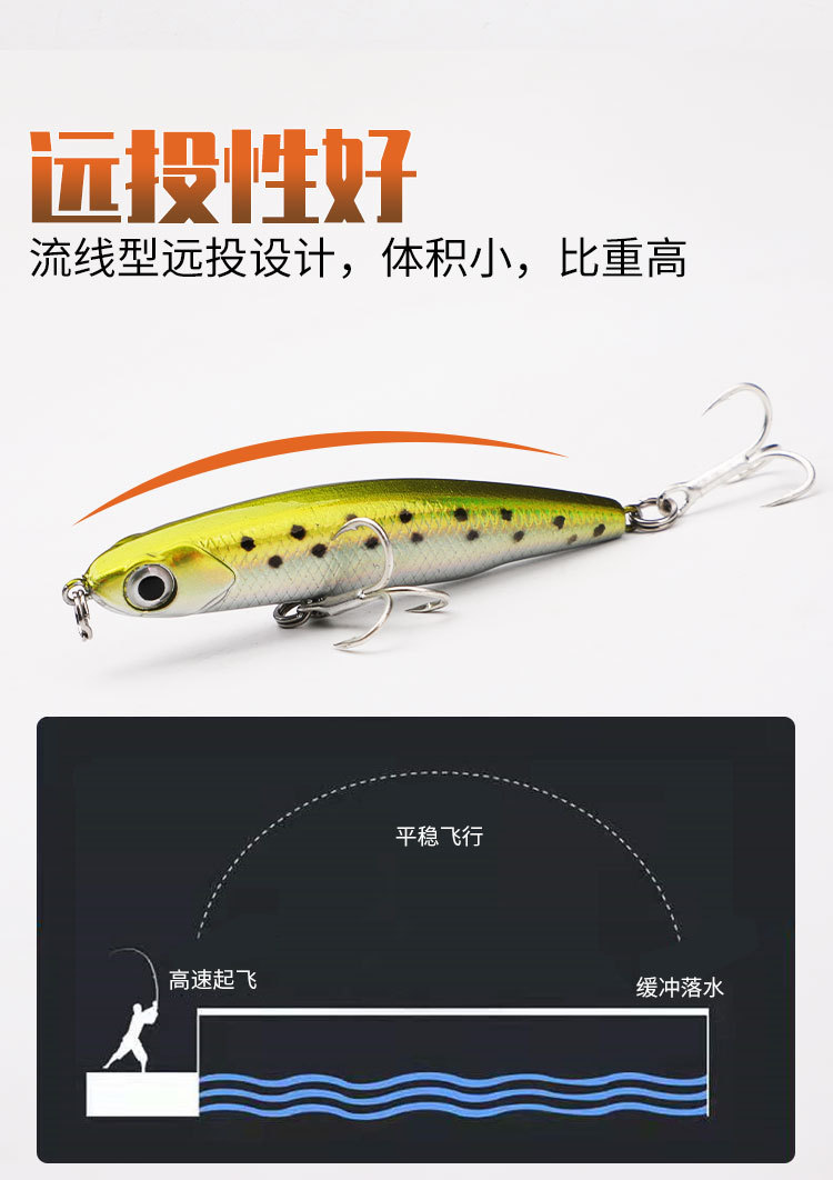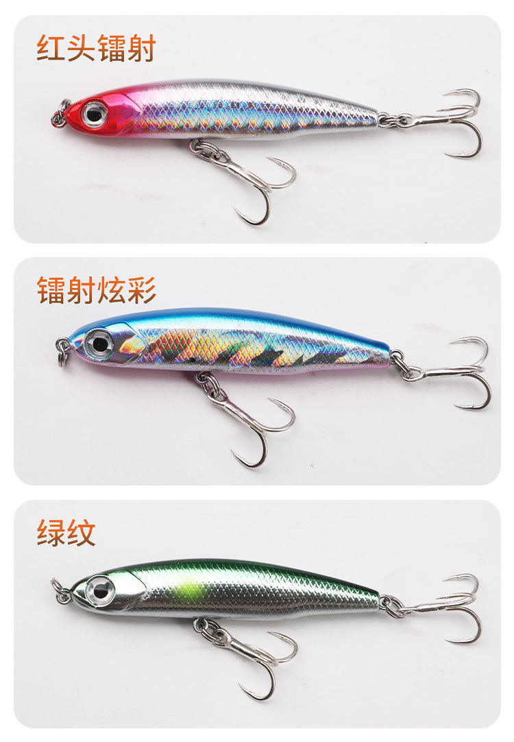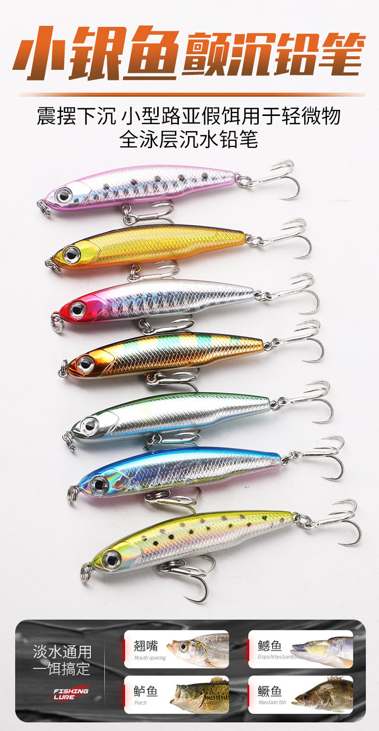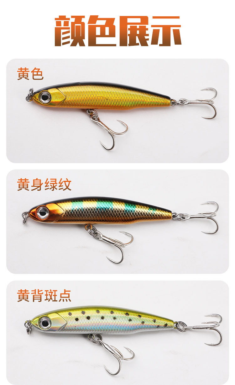 Umpan pensil Luya ikan perak kecil kait ganda tembakan panjang pensil rendam mulut bass putih strip umpan keras bionik pabrik grosir