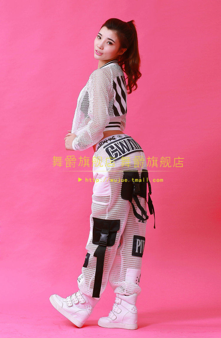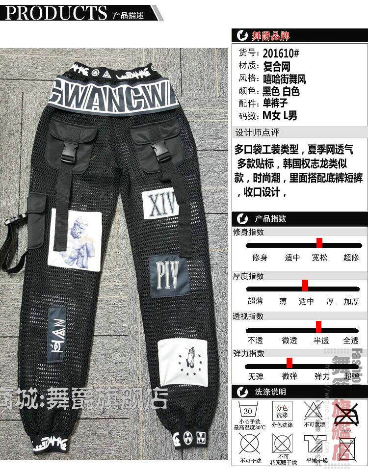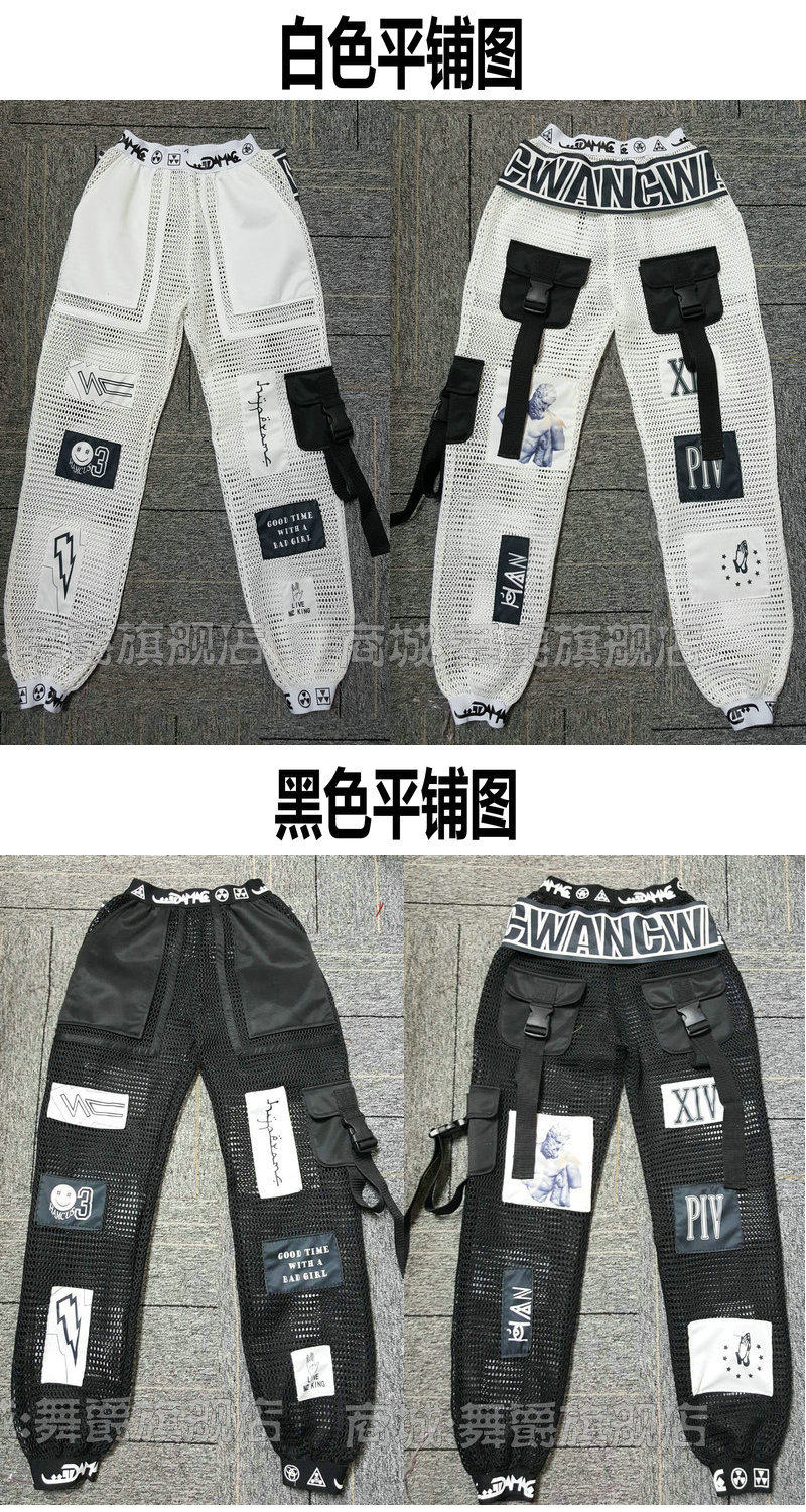 Celana cargo jaring longgar untuk tari Korea, kostum panggung K-pop, celana hip-hop street dance jazz wanita, kostum pertunjukan grup perempuan
