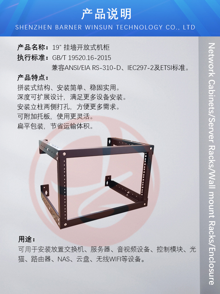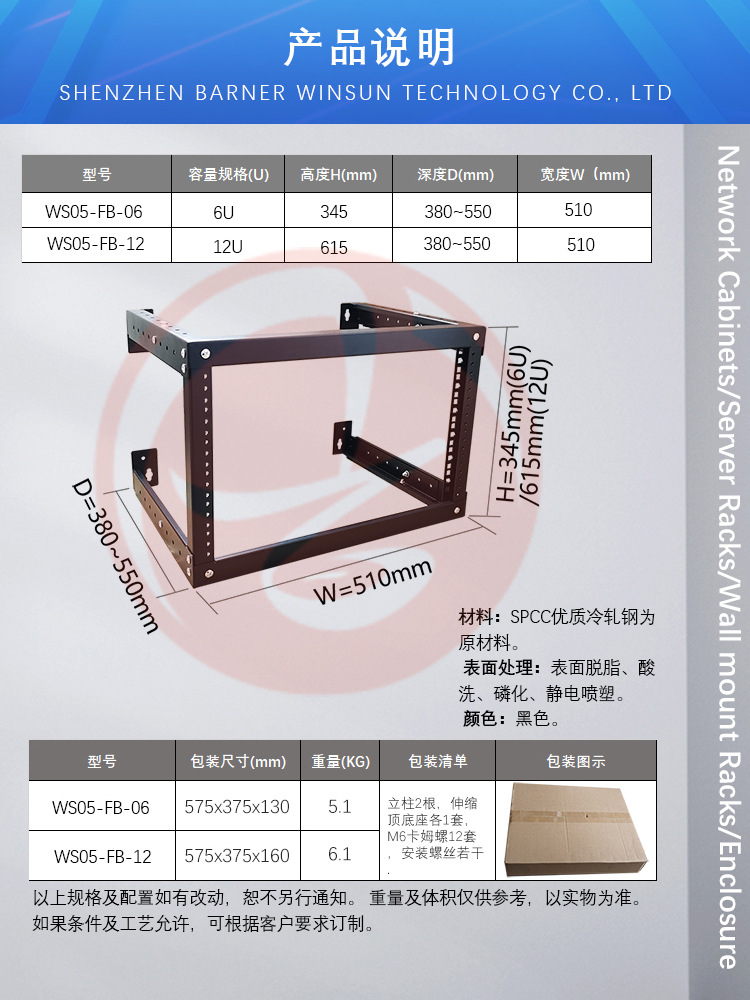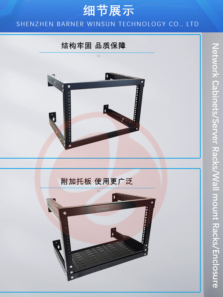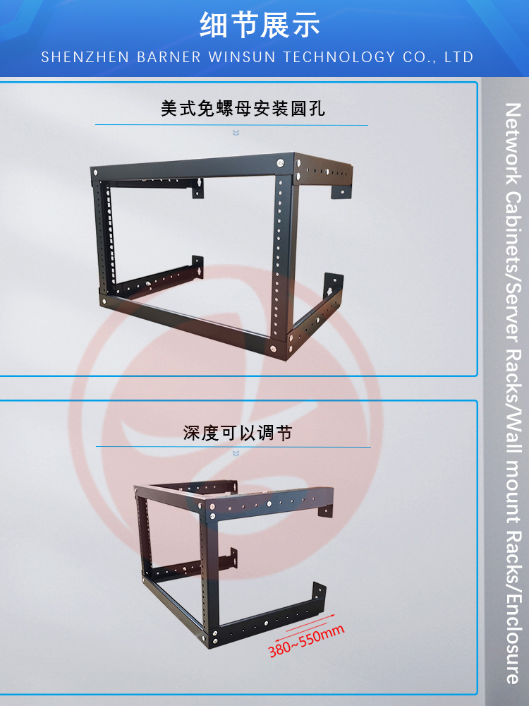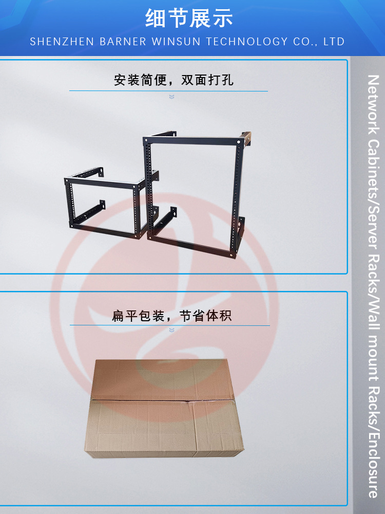 Kabinet jaringan dinding buatan pabrik, rak server tipe terbuka 19 inci, kabinet yang dapat diperluas kedalamannya 6U/12U