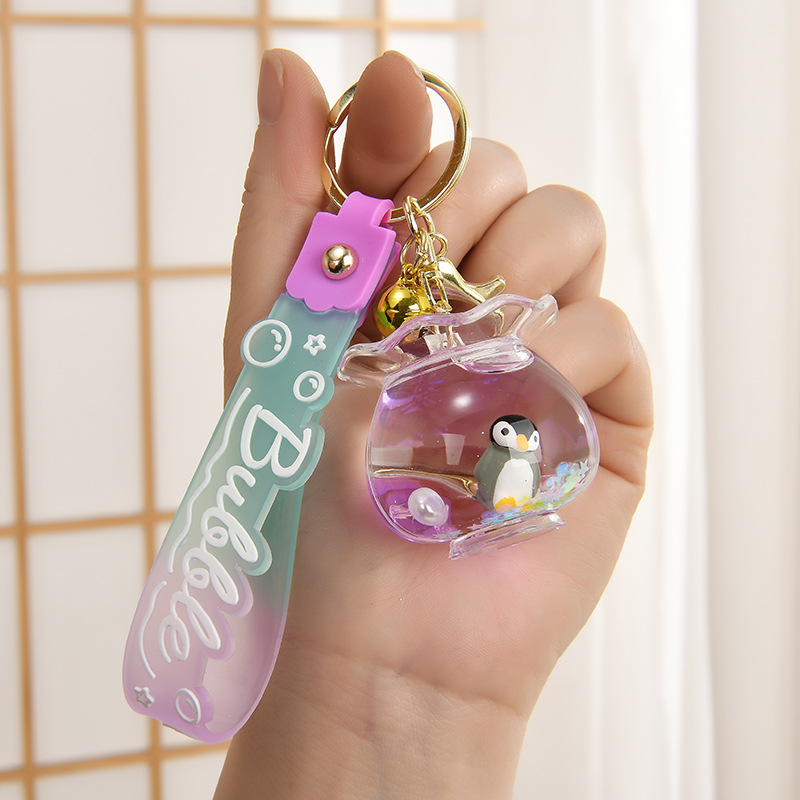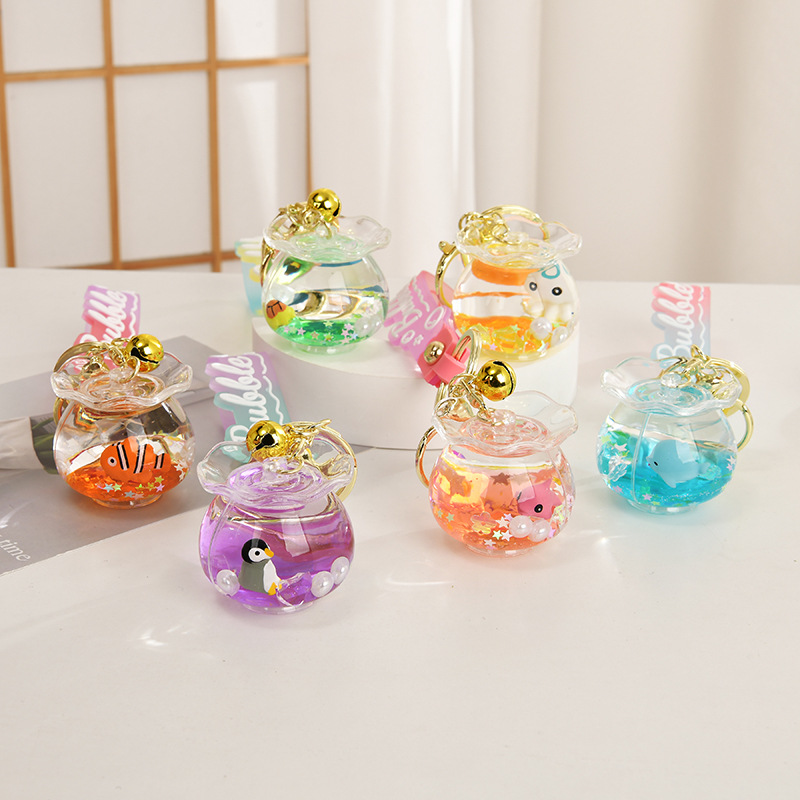 Botol Minyak Selebriti Internet Hot Sale Tangki Ikan Hewan Laut Gantungan Kunci Pasir Laut Botol Minyak Aksesori Meja Meja Tas Liontin