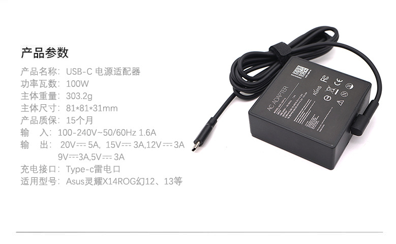 Pengisi daya drone PD100W 20V 5A cocok untuk catu daya notebook ASUS Apple Lenovo Dell HP