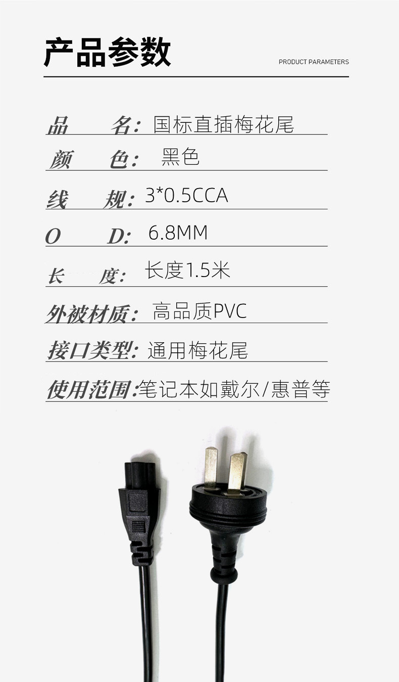 Kabel Daya standar nasional 1.5 m, notebook komputer kabel daya colokan langsung kabel daya ekor plum