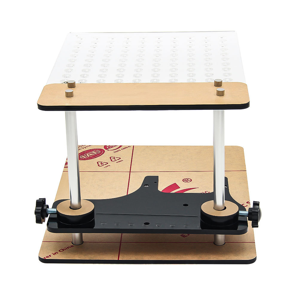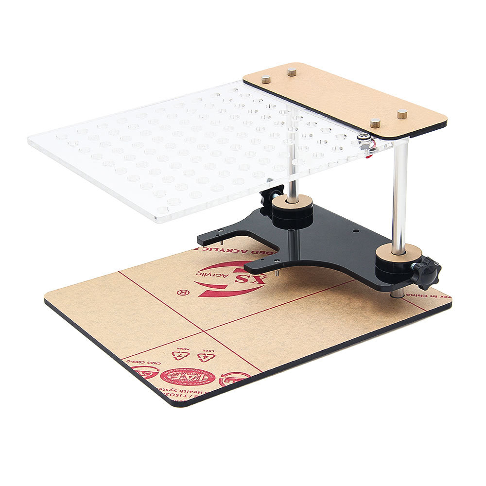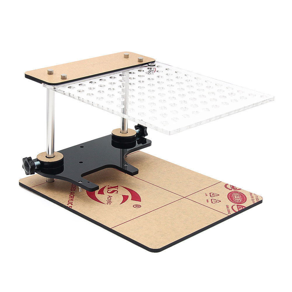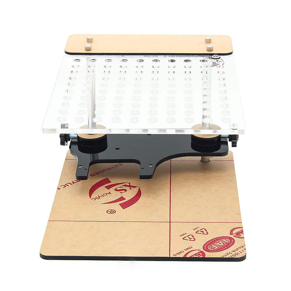 注意:亚克力孔板是透明的。链接展示是其他色,因为上面有层蓝色的保护膜,撕掉就是透明的;底座和支撑板是黑色,黄色防护贴纸是保护板子防止伤。