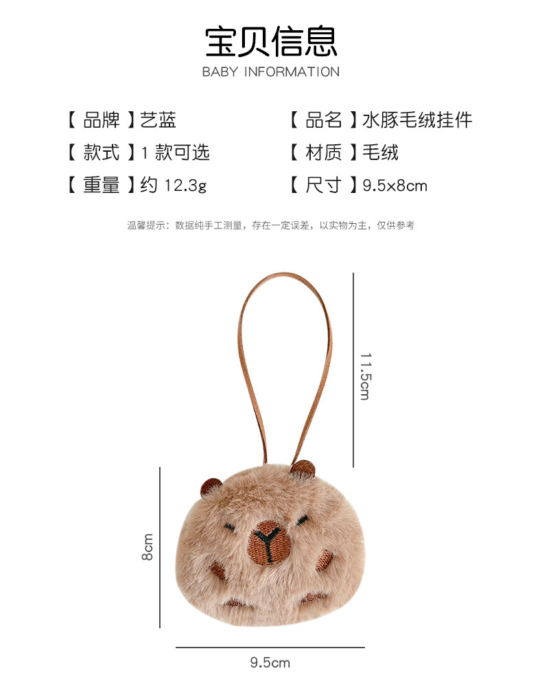 Capabala liontin boneka capybara lucu, tas sekolah, gantungan kunci dekoratif, hadiah kecil anak-anak