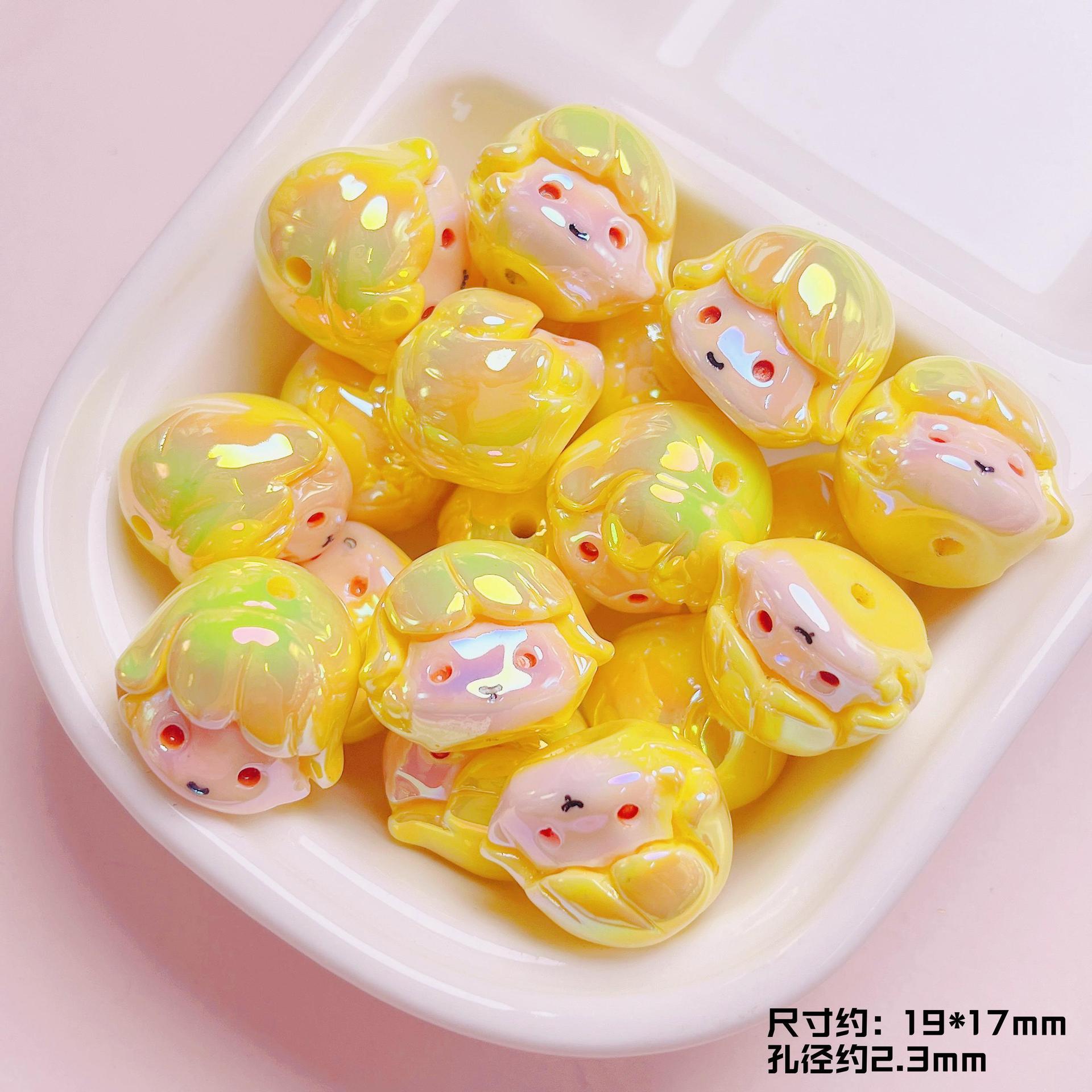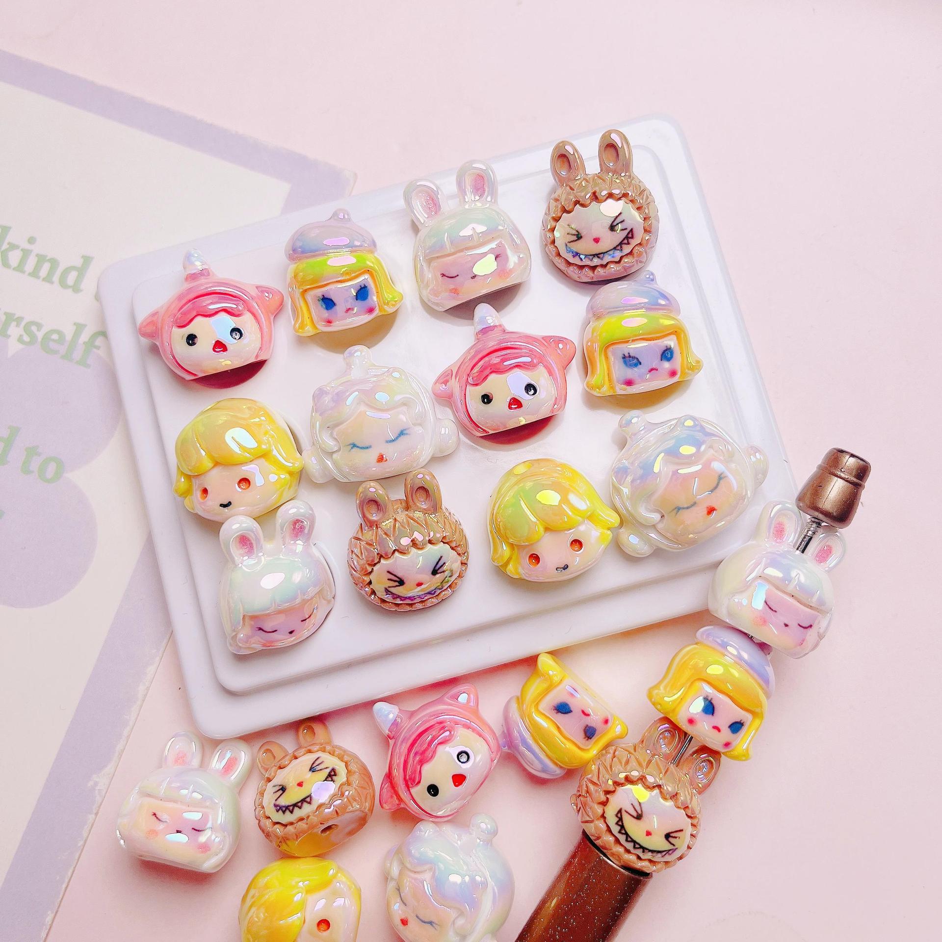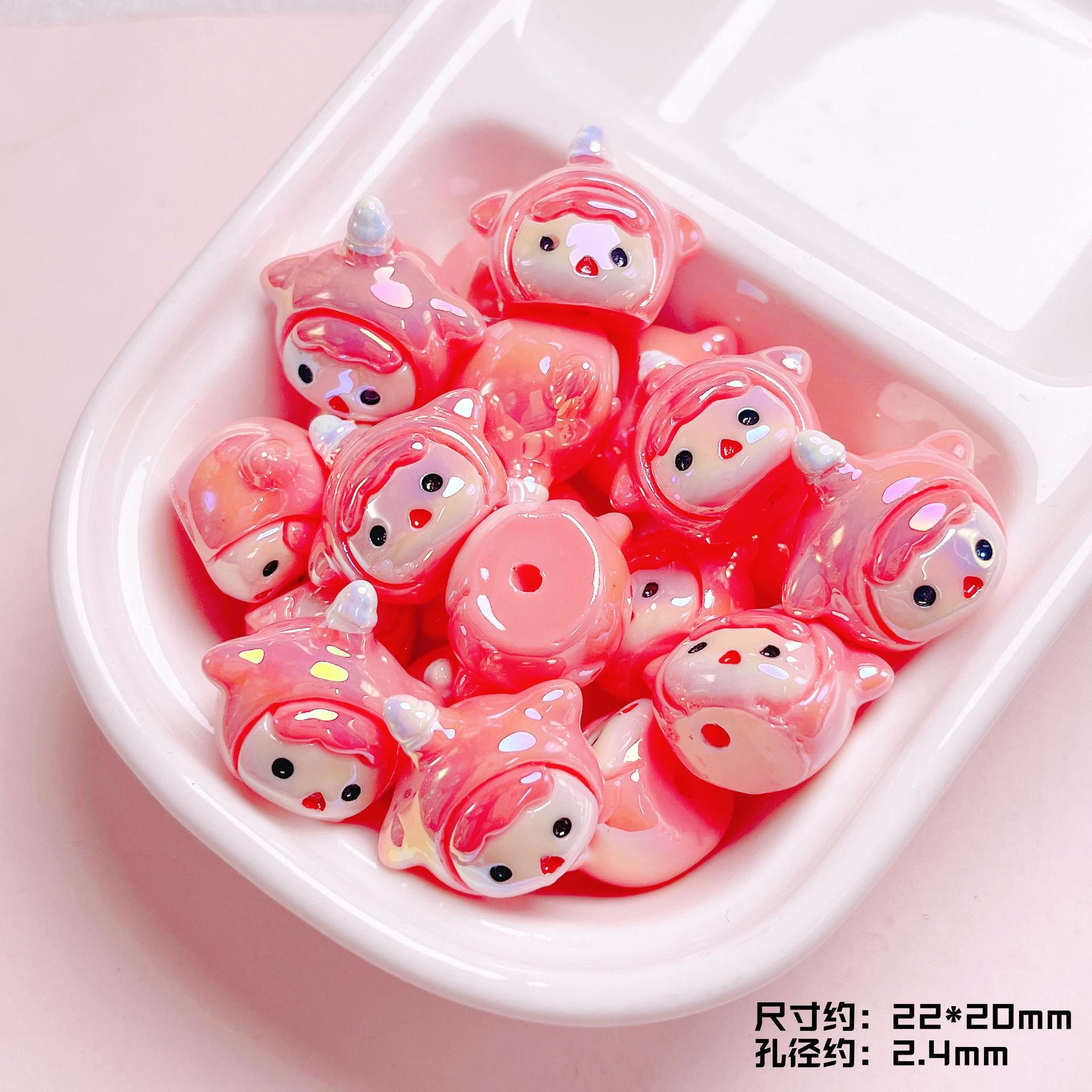 Aksesori perhiasan gantungan kunci ponsel diy manik-manik longgar manik-manik lurus lubang lurus butiran lucu tiga dimensi resin kartun populer