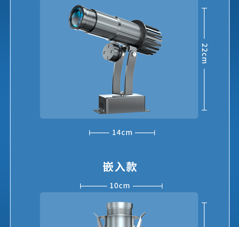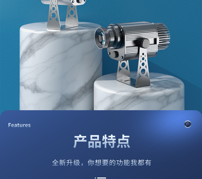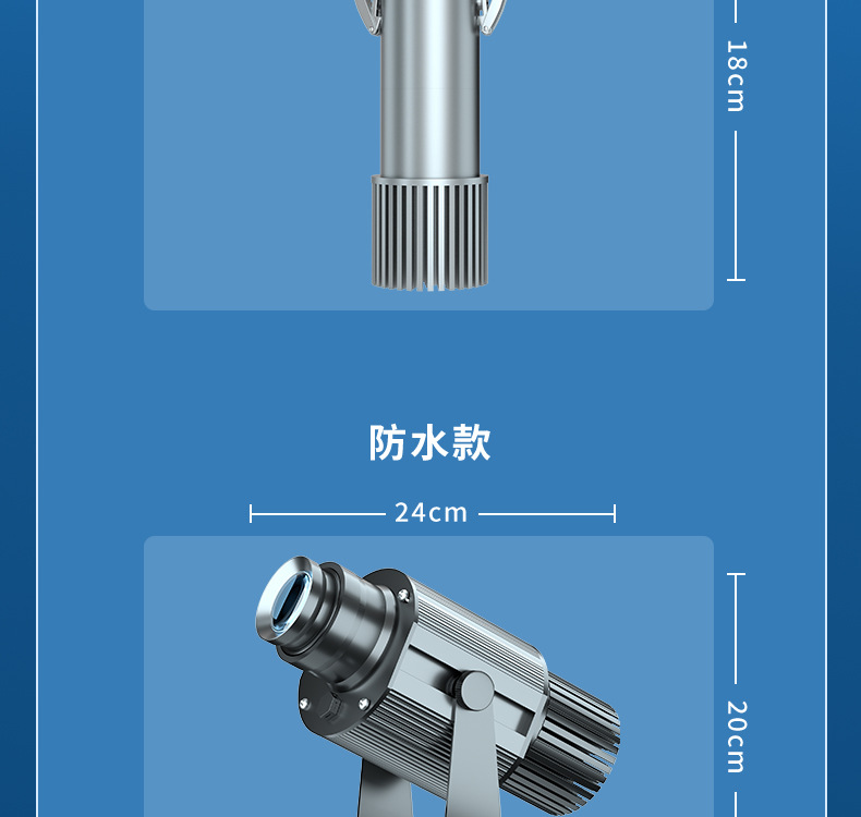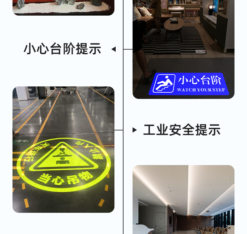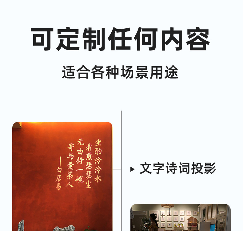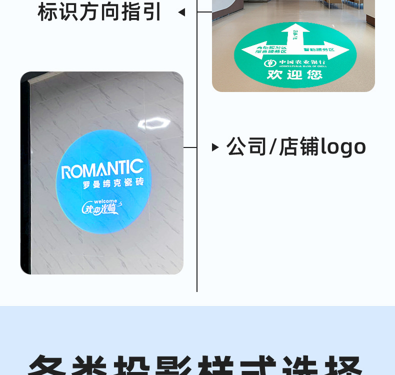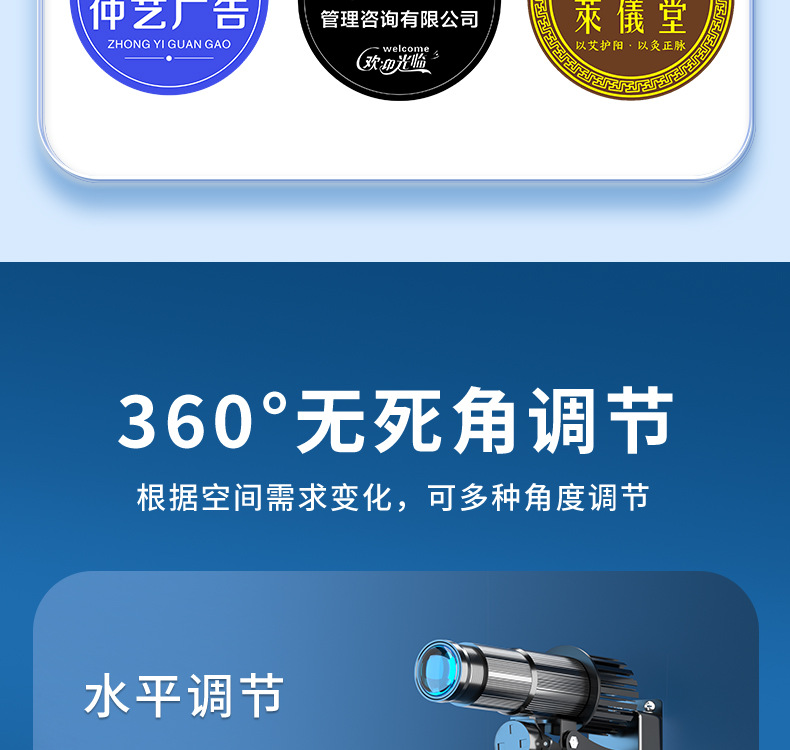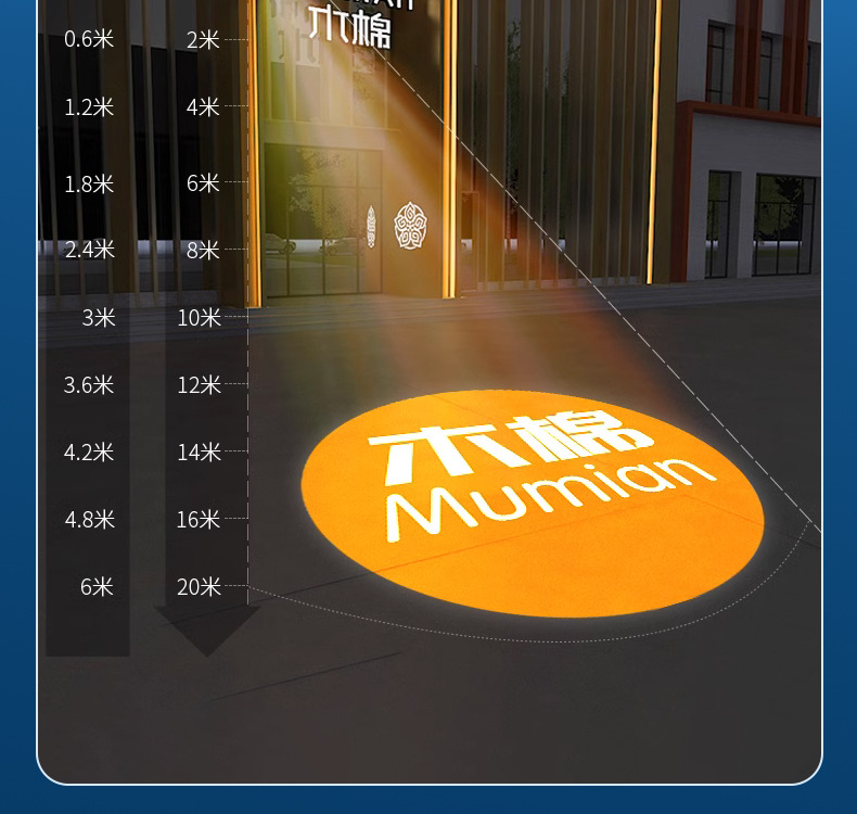 Lampu proyeksi iklan logo luar ruangan, lampu iklan signage, lampu sorot LED luar ruangan, teks, pola peringatan etalase