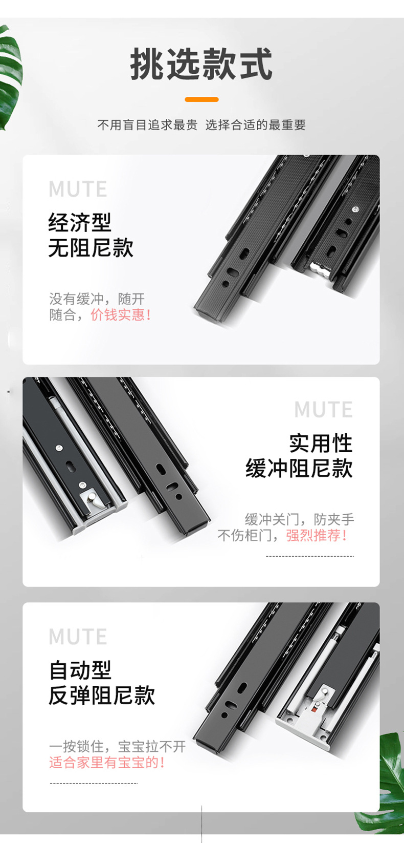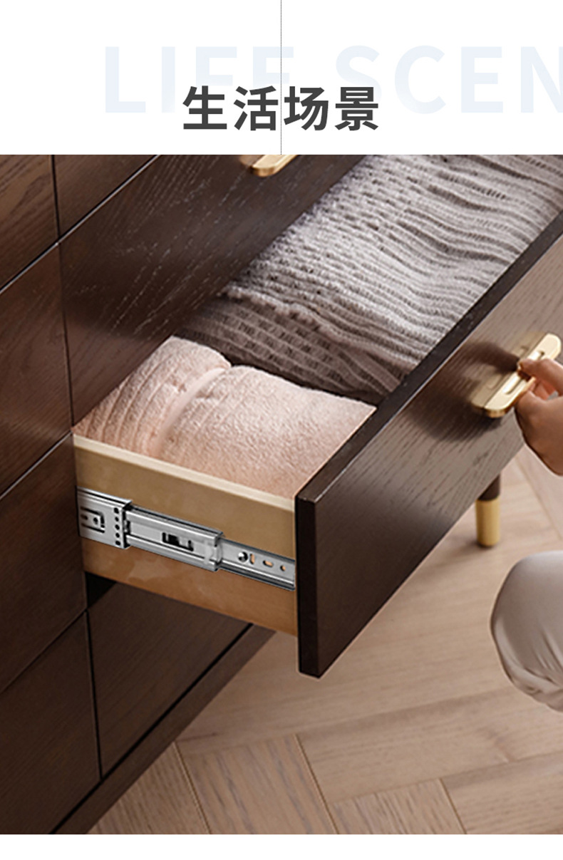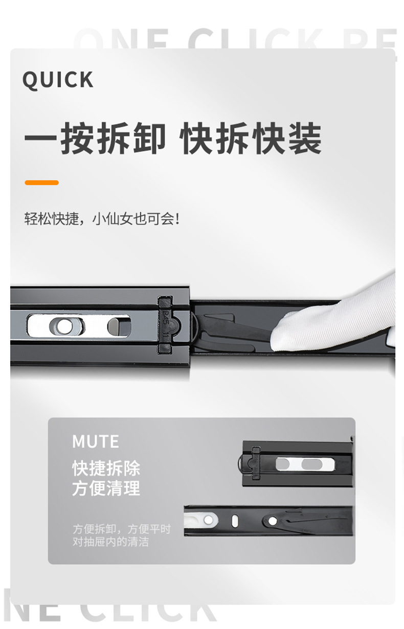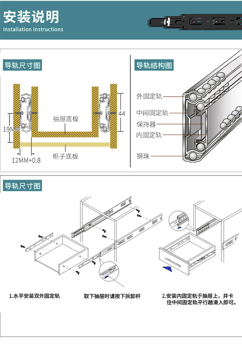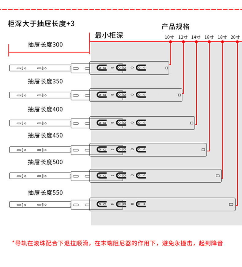 Rel geser tiga bagian industri dengan peredam senyap bola baja, rel pemandu tiga bagian untuk laci, perangkat keras keranjang tarik, aksesori rumah tangga.