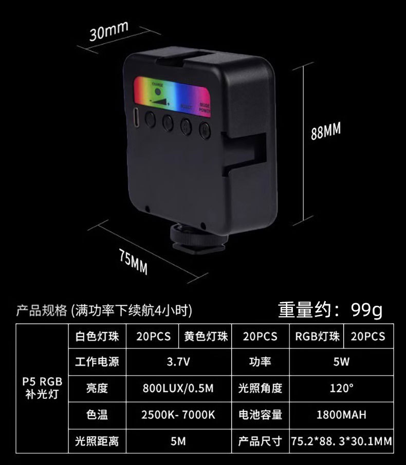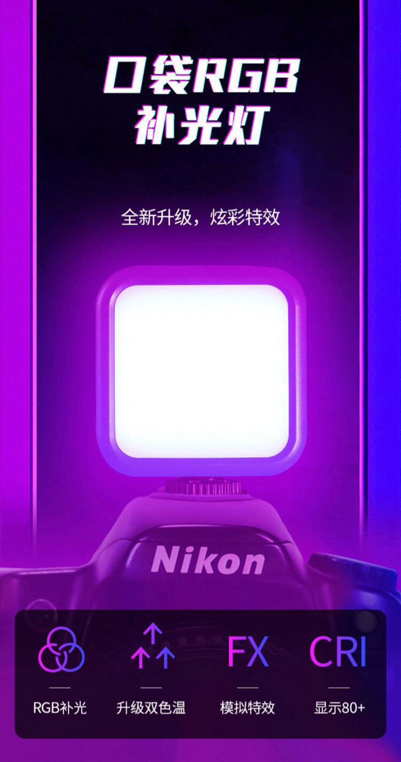 Lampu saku RGB suasana tiga warna penuh warna portabel untuk fotografi langsung kamera ponsel