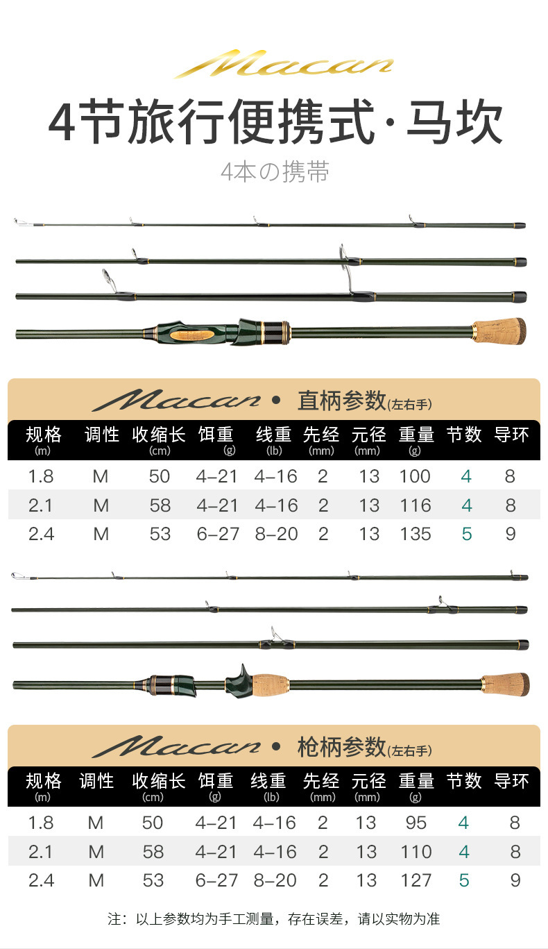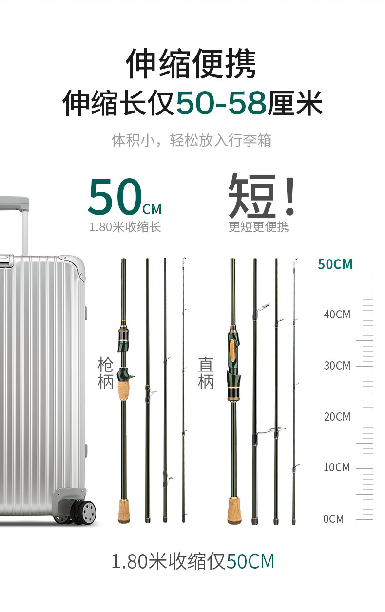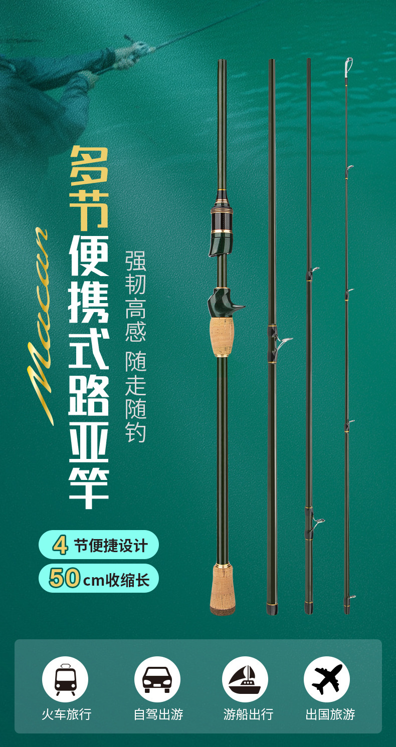Joran pancing portabel empat bagian, tongkat pancing karbon, joran perjalanan bisnis, portabel, empat bagian, joran pancing laut, 1.8/2.1/2.4