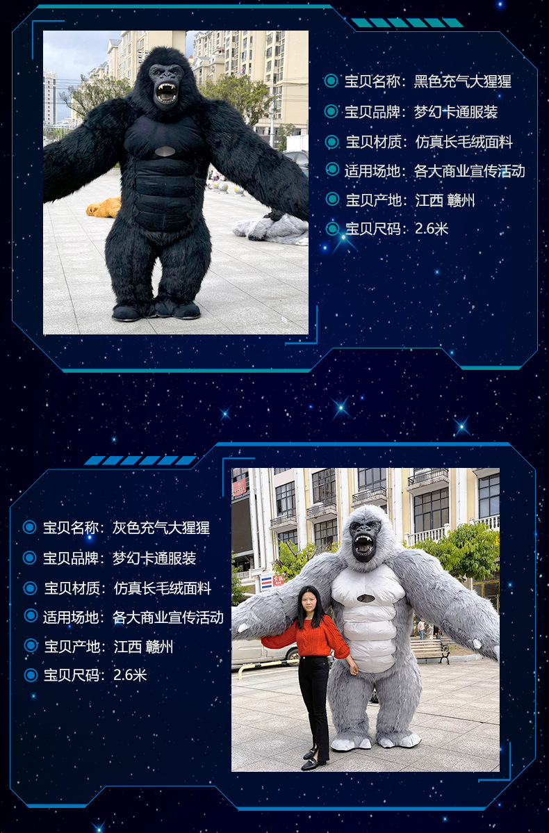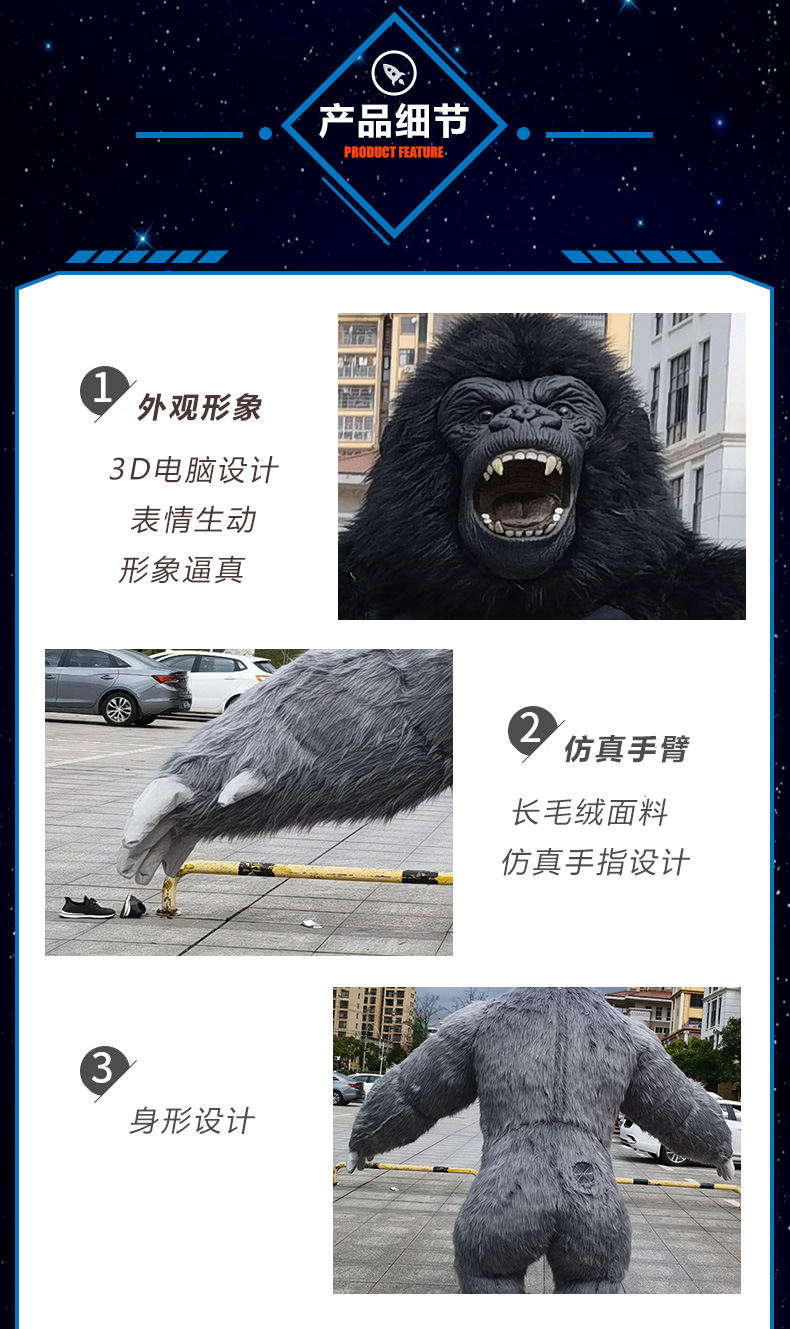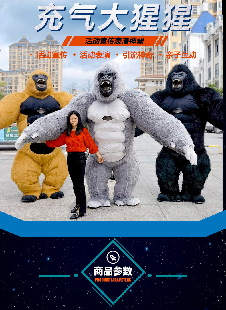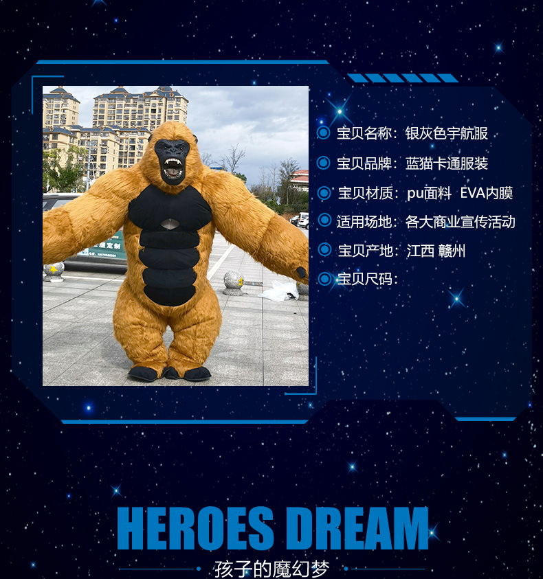 Chimp kostum boneka kartun King Kong, alat peraga aktivitas perdagangan luar negeri dapat ditiup telinga besar kostum monyet beruang kutub