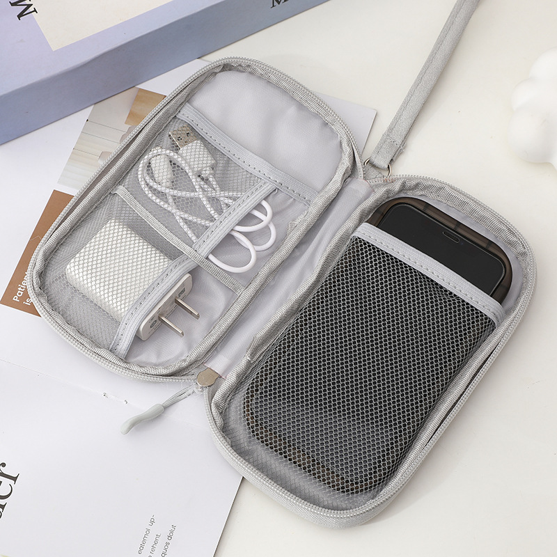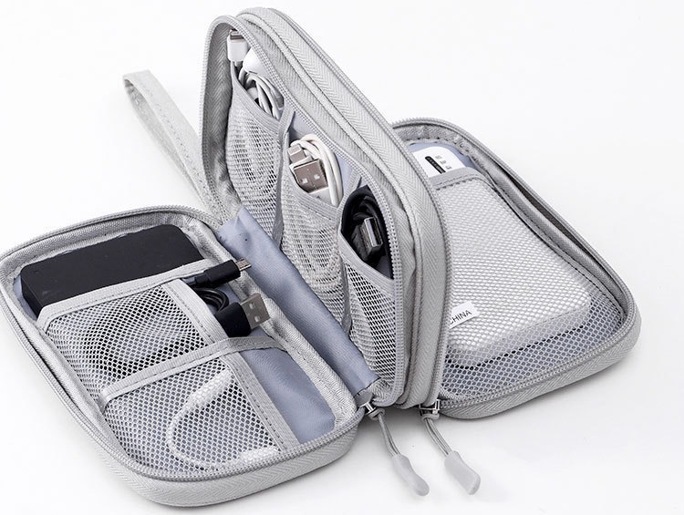 Tas penyimpanan kabel data produsen Yiwu, tas digital dua lapis, tas kabel charger, tas penyimpanan lintas batas dengan logo