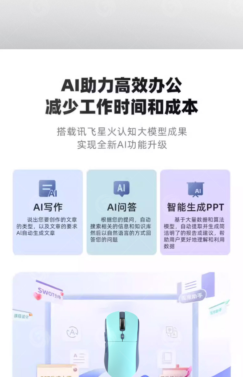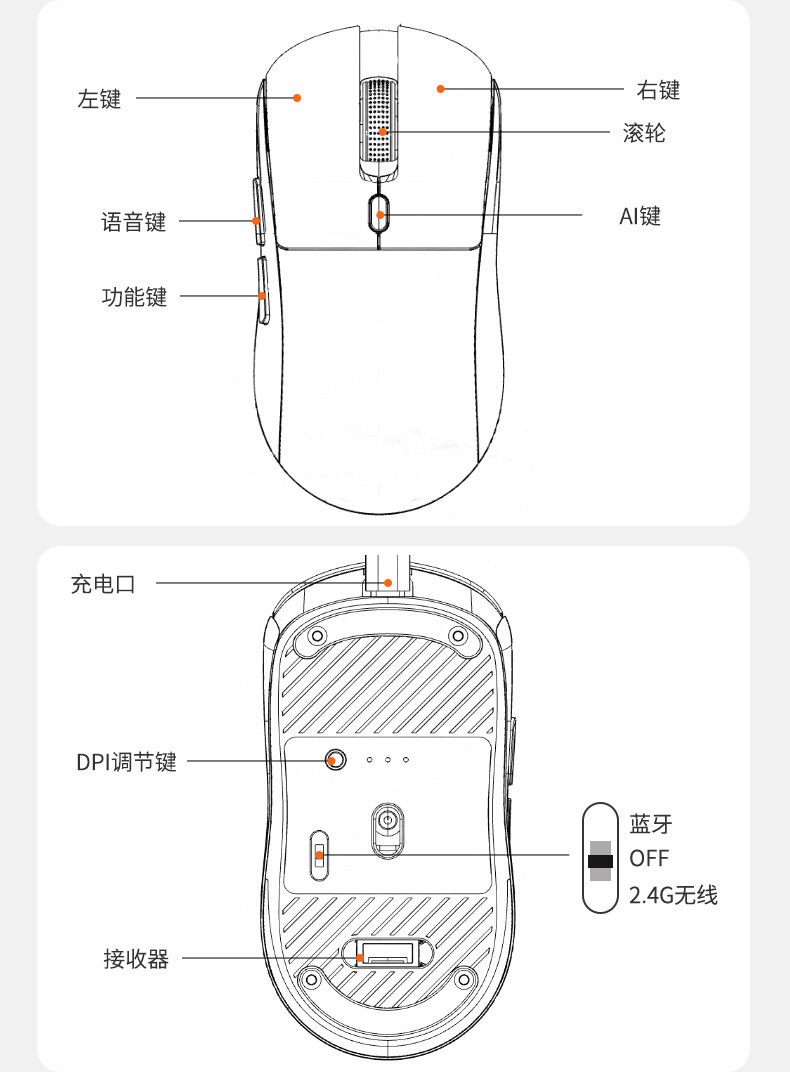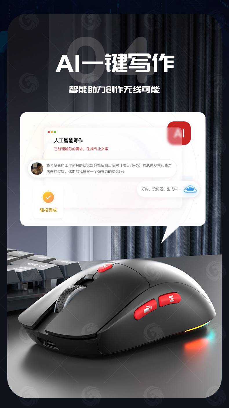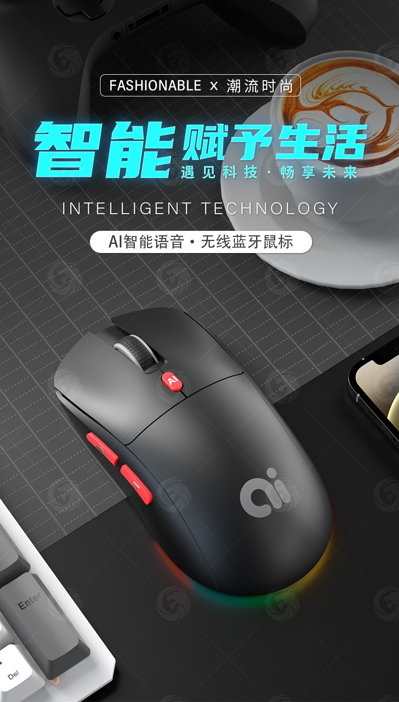 Mouse suara pintar AI lintas batas nirkabel Bluetooth dual-mode, terjemahan multi-bahasa, pengetikan dan penulisan, deepseek