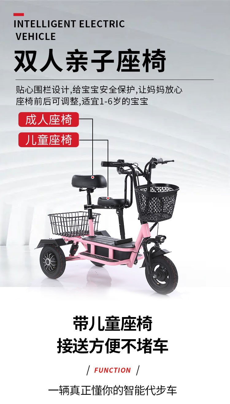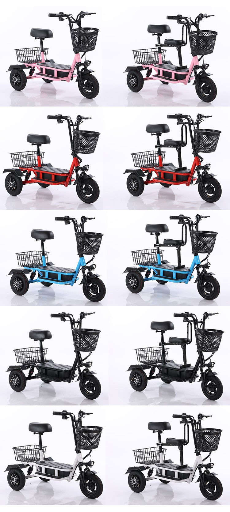 Grosir Pabrik sepeda roda tiga listrik kecil skuter lipat baterai lithium ringan roda tiga kecil rumah tangga