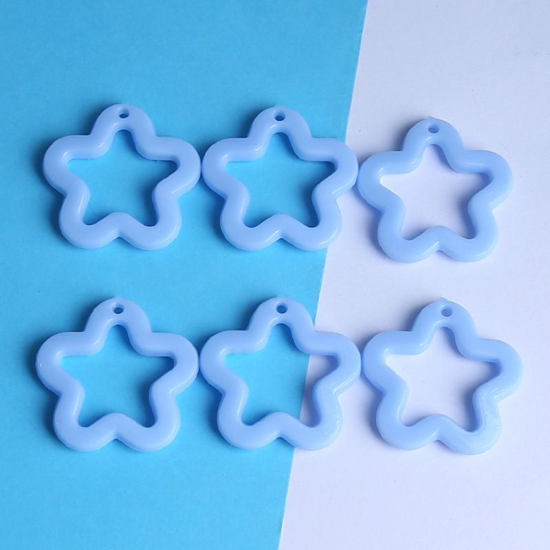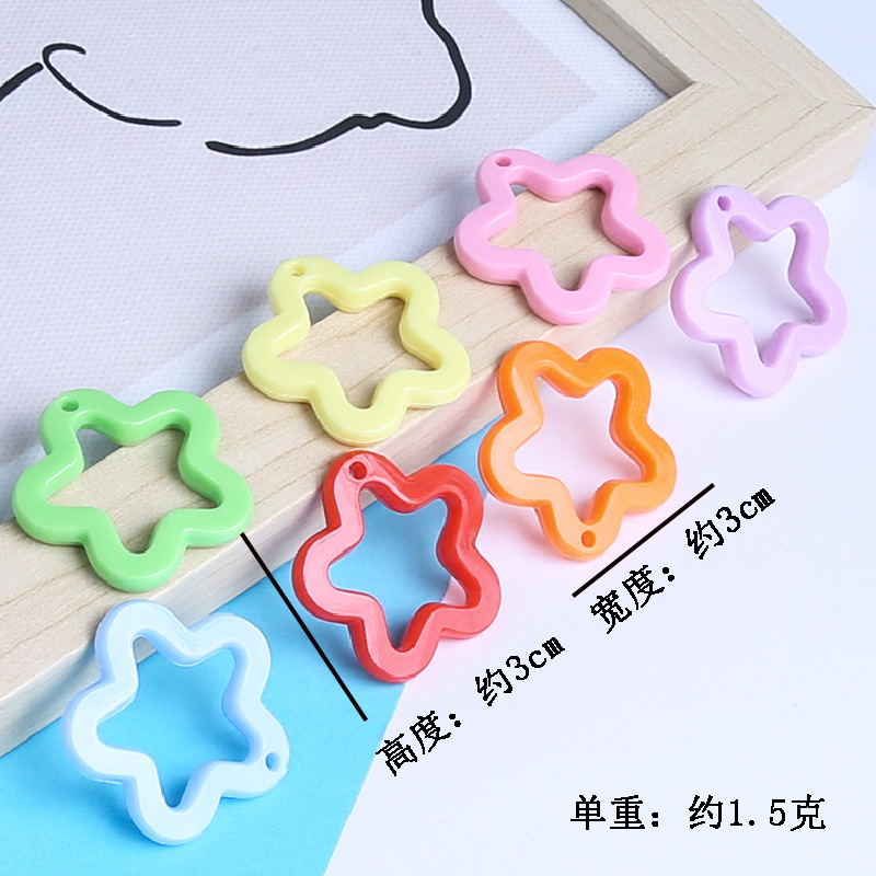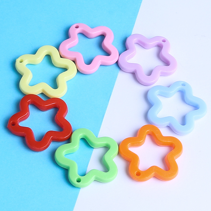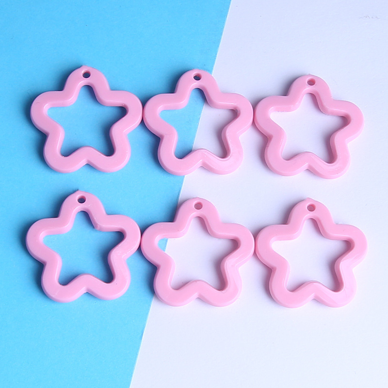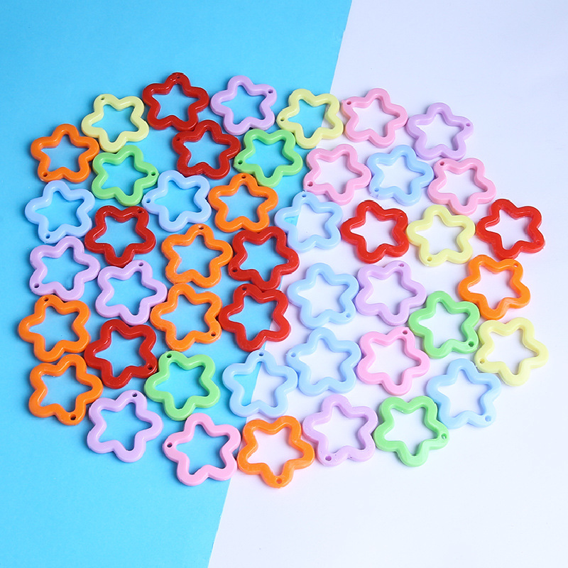 Macaron bintang berujung lima 30mm akrilik warna solid bintang warna-warni gantungan kunci plum berongga bahan liontin diy