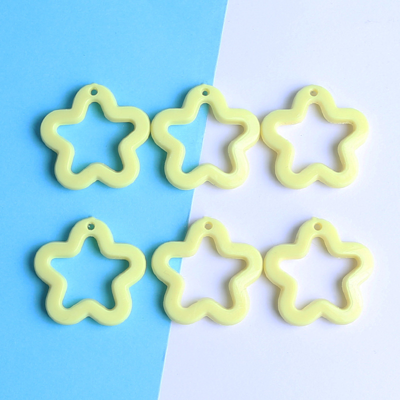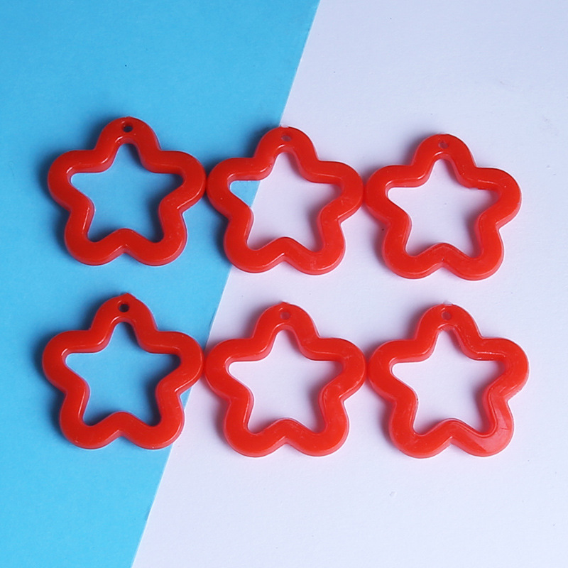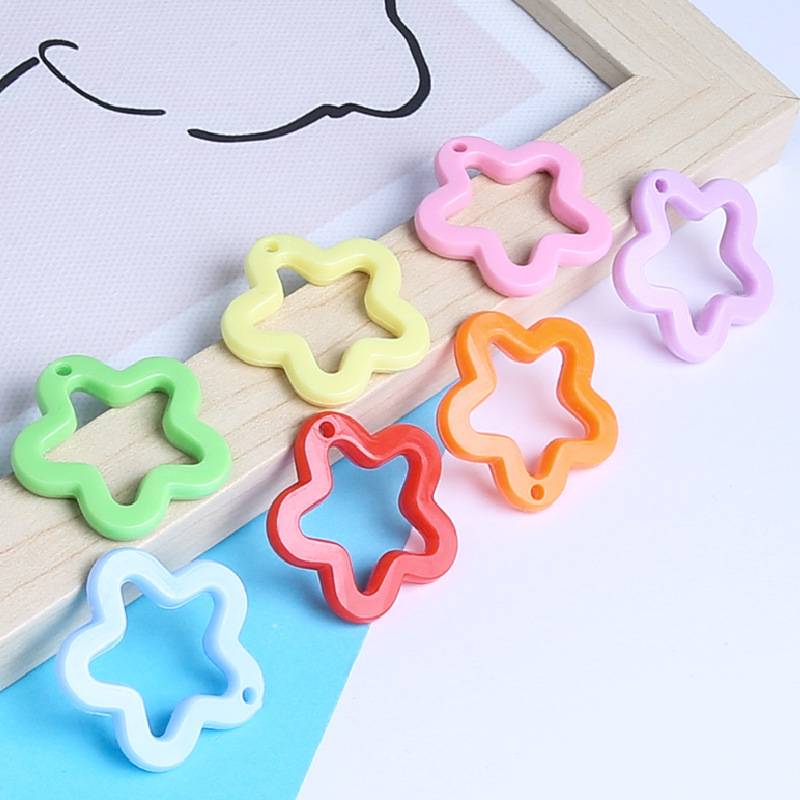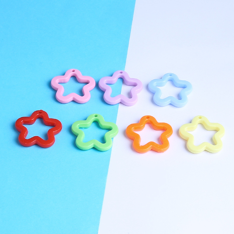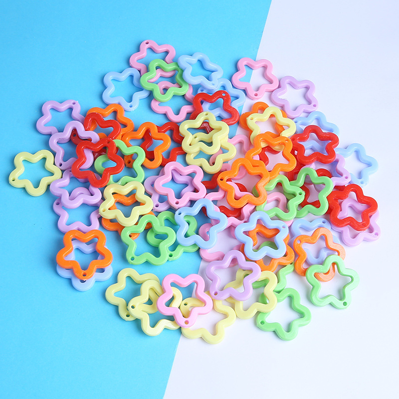 Macaron bintang berujung lima 30mm akrilik warna solid bintang warna-warni gantungan kunci plum berongga bahan liontin diy