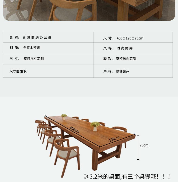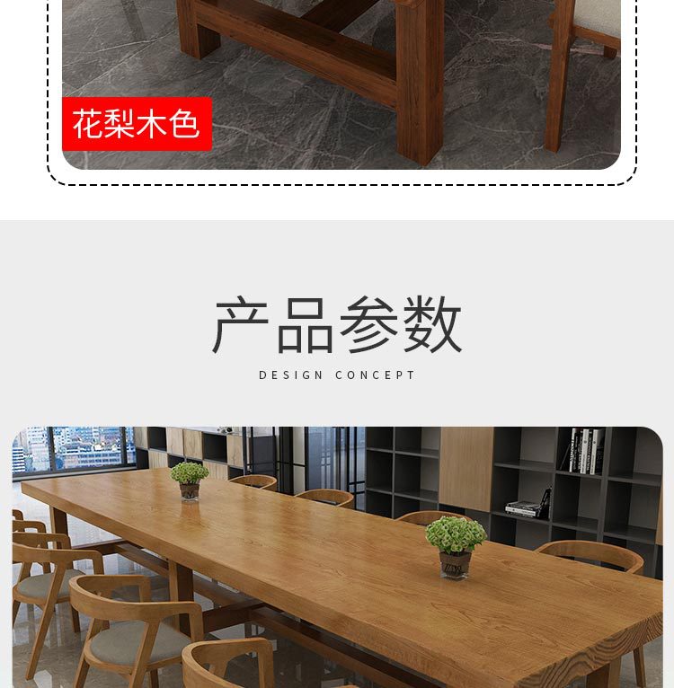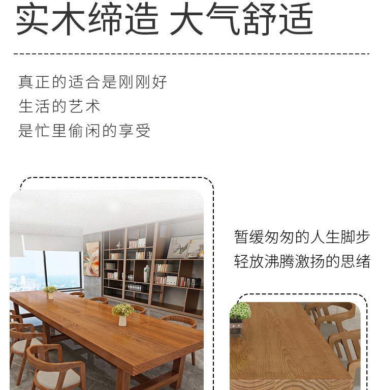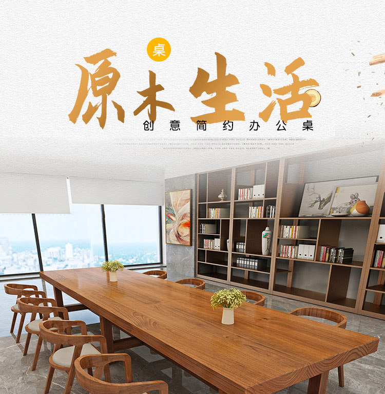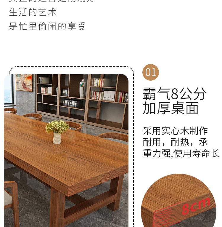 Meja kerja kaligrafi panjang, meja konferensi kantor kayu solid China, meja panjang dan kursi sederhana ruang konferensi modern