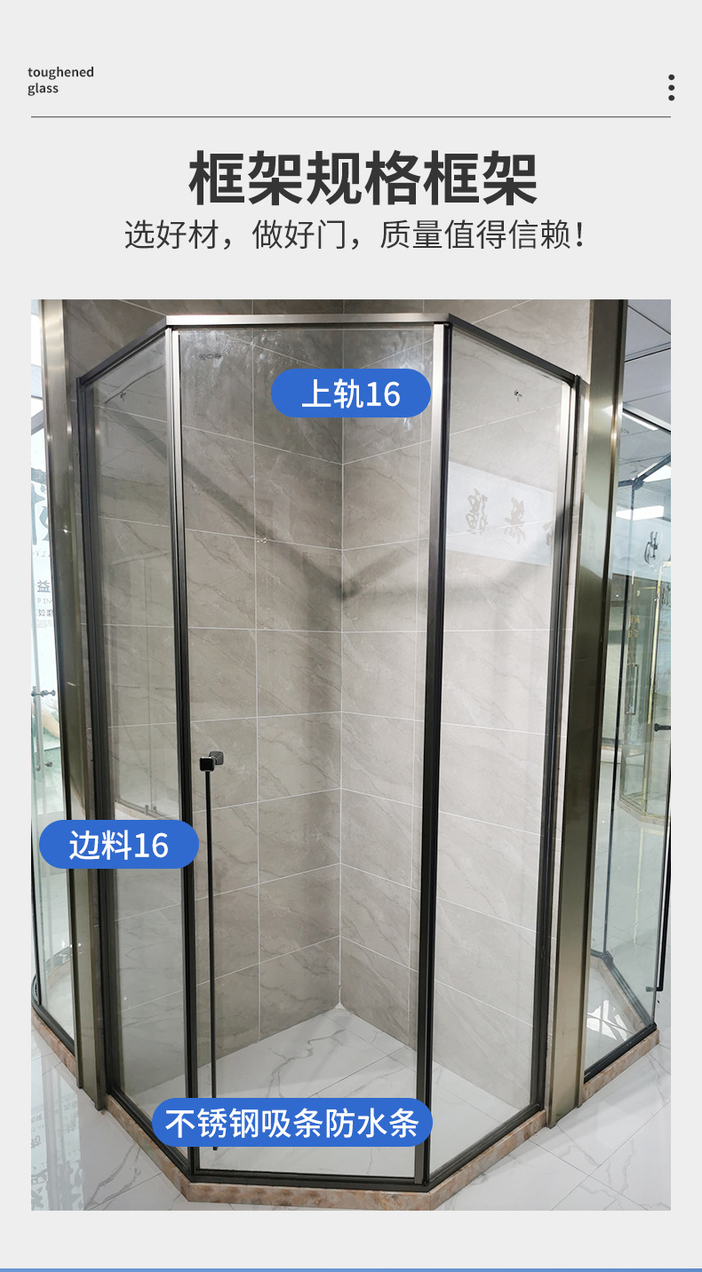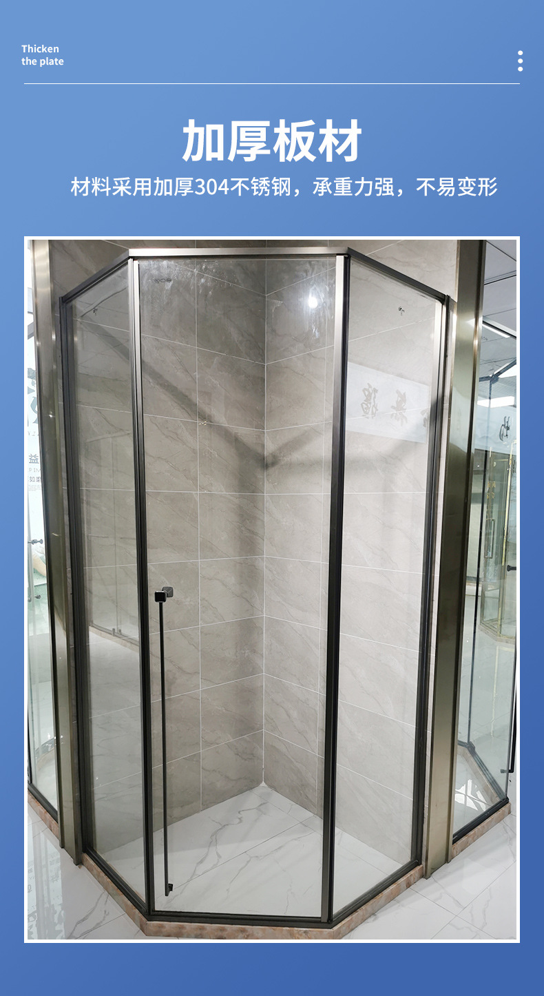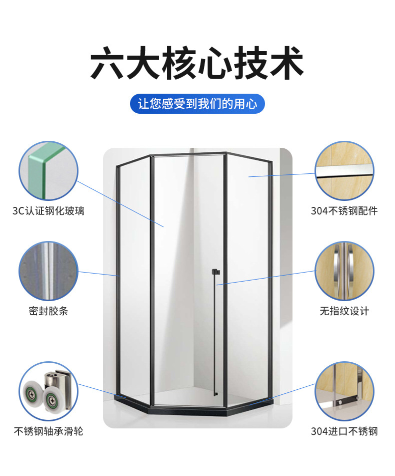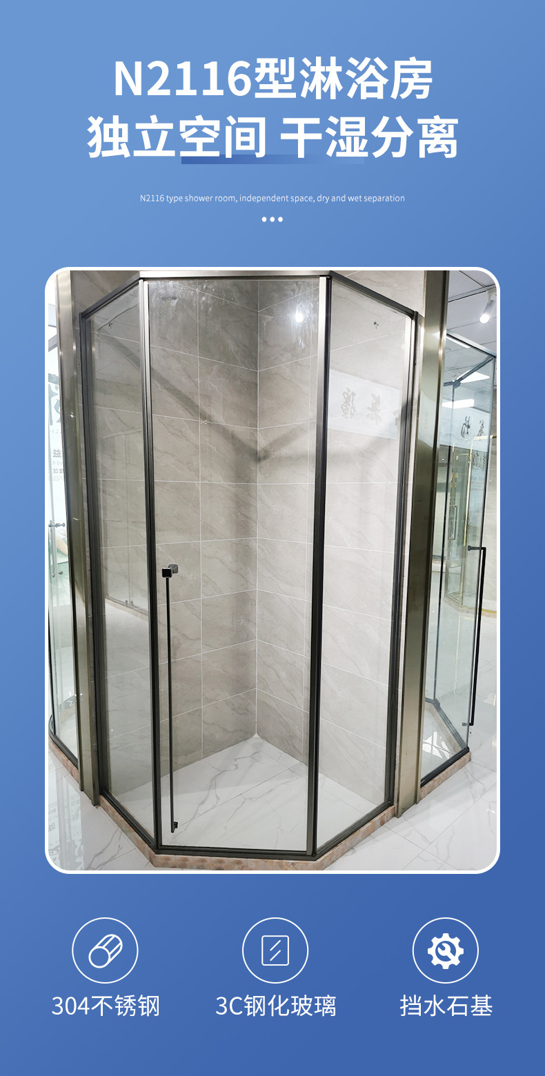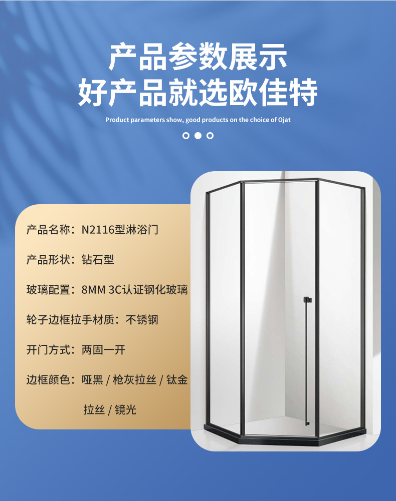 Kamar mandi terintegrasi berbentuk berlian, partisi pintu kaca pemisah area kering dan basah dari baja tahan karat hitam untuk rumah tangga, semua dalam satu unit.