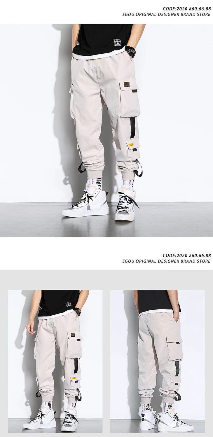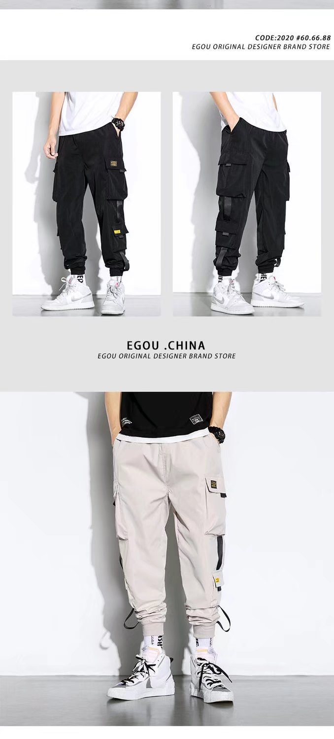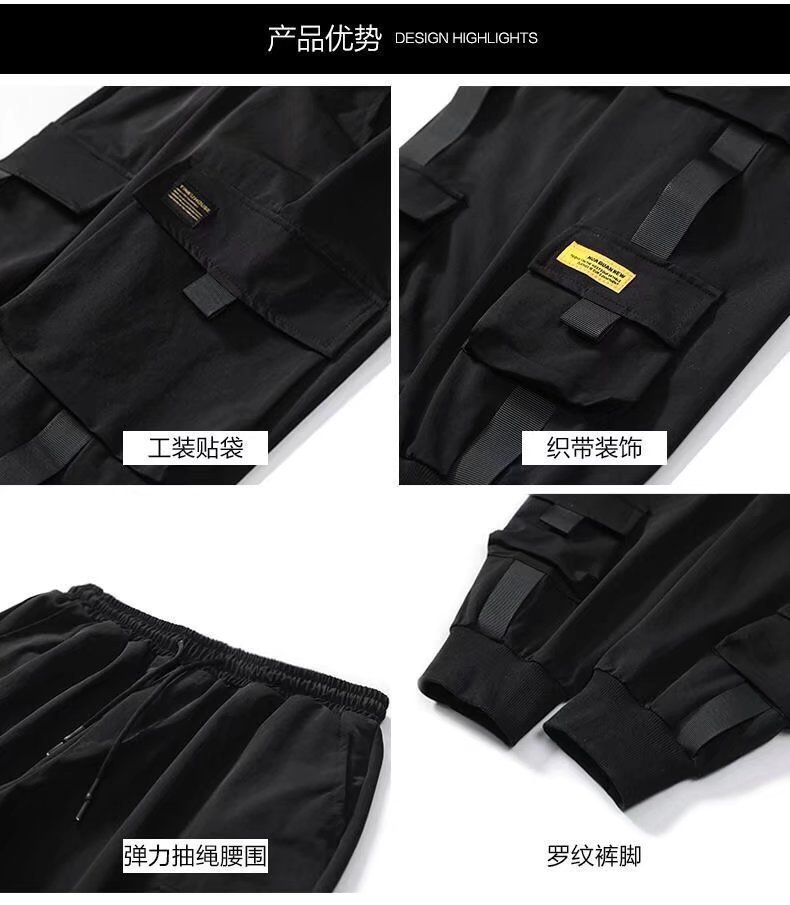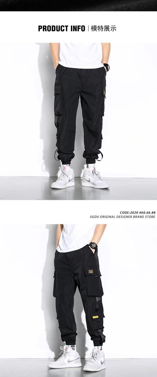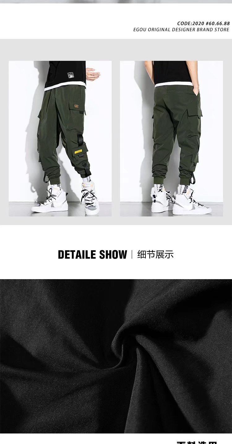 Baju kodok pria, celana panjang crop ukuran plus, celana kasual Semua cocok, ikat pergelangan kaki multi-saku, longgar, tipis, modis, musim panas