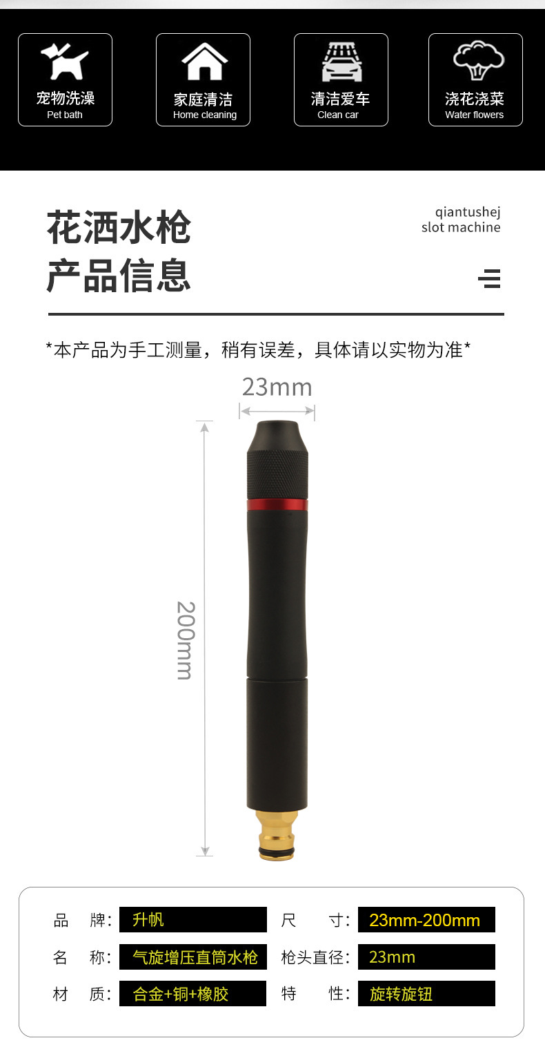 Pistol air cuci mobil tekanan tinggi, nosel multifungsi pembersih rumah tangga, pistol semprot hitam lurus, artefak cuci mobil