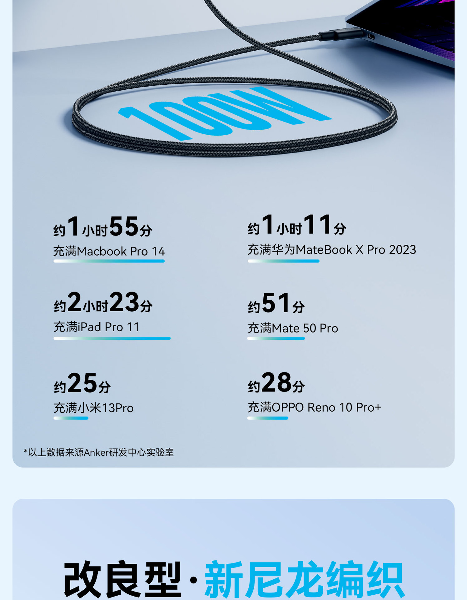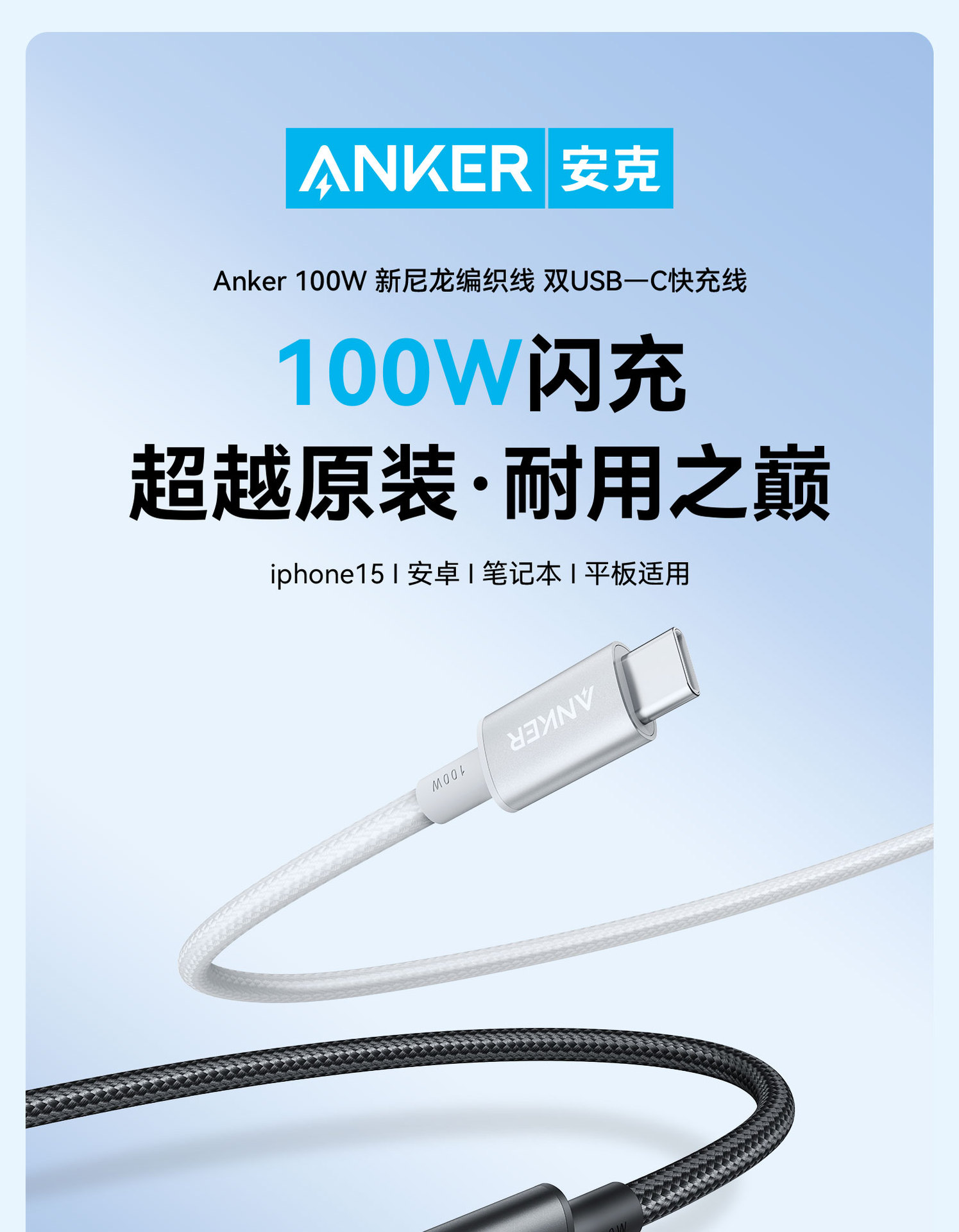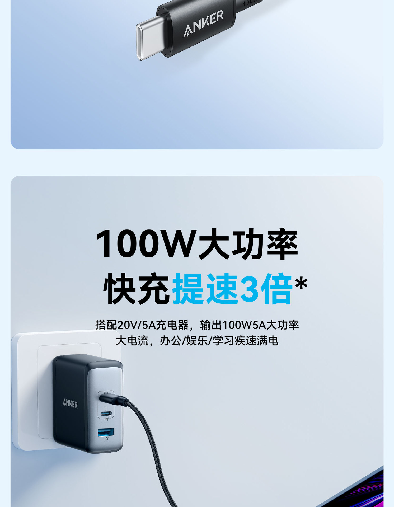 Anker Anke kabel data Android, 100W double typeC notebook PD kabel pengisian daya Cepat disesuaikan dengan A8757