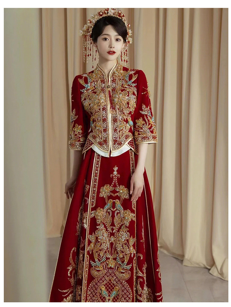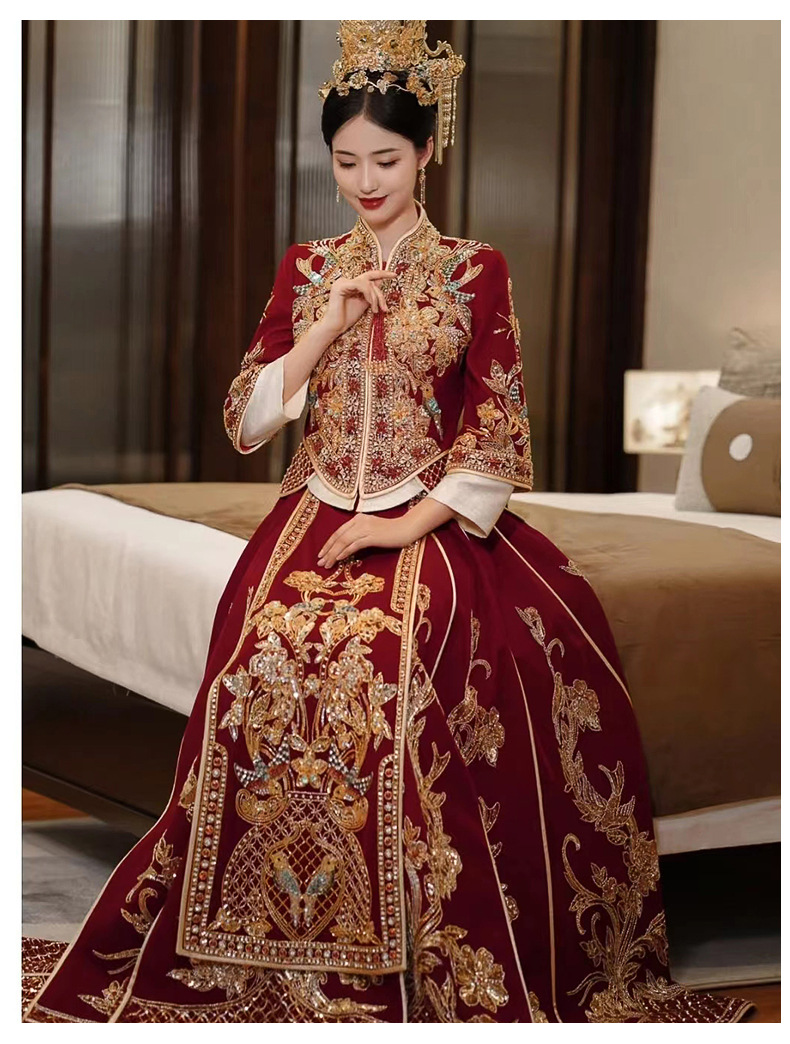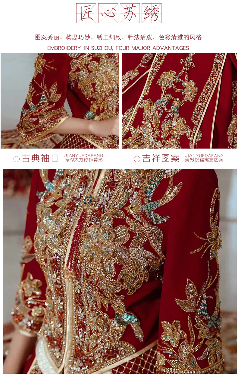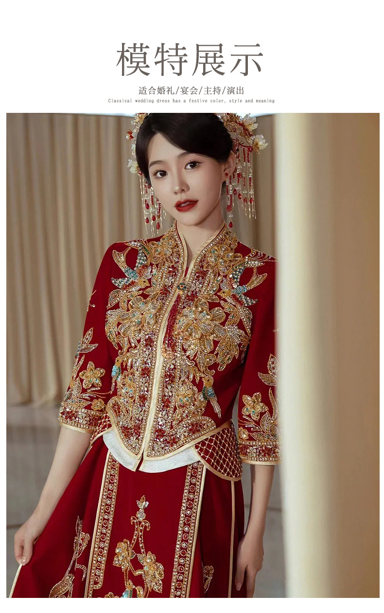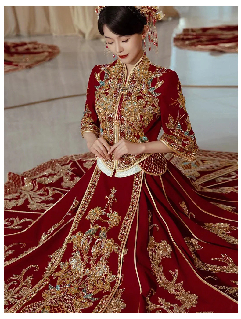 Gaun pengantin gaya Xiuhe model baru 2025, gaun pengantin gaya Cina baru, gaun pengantin, jubah naga dan phoenix, kesan mewah, musim dingin.