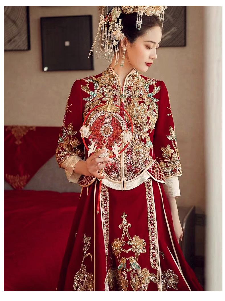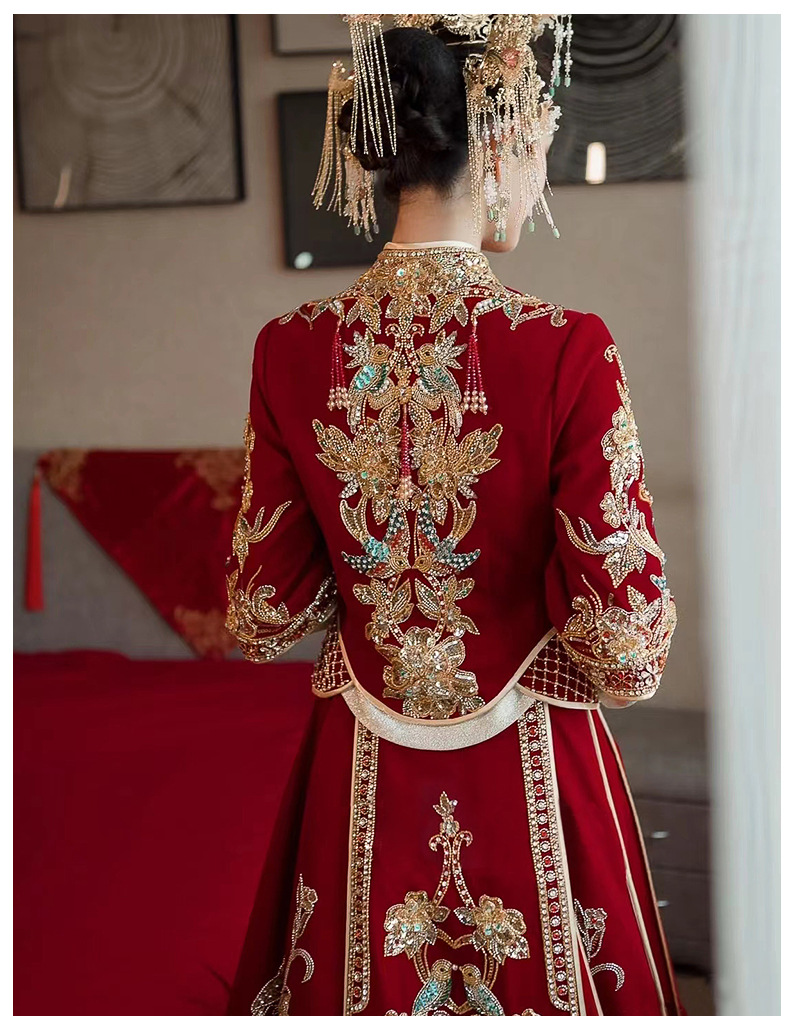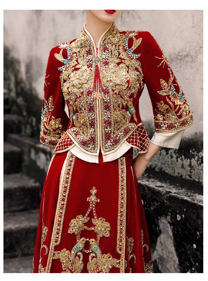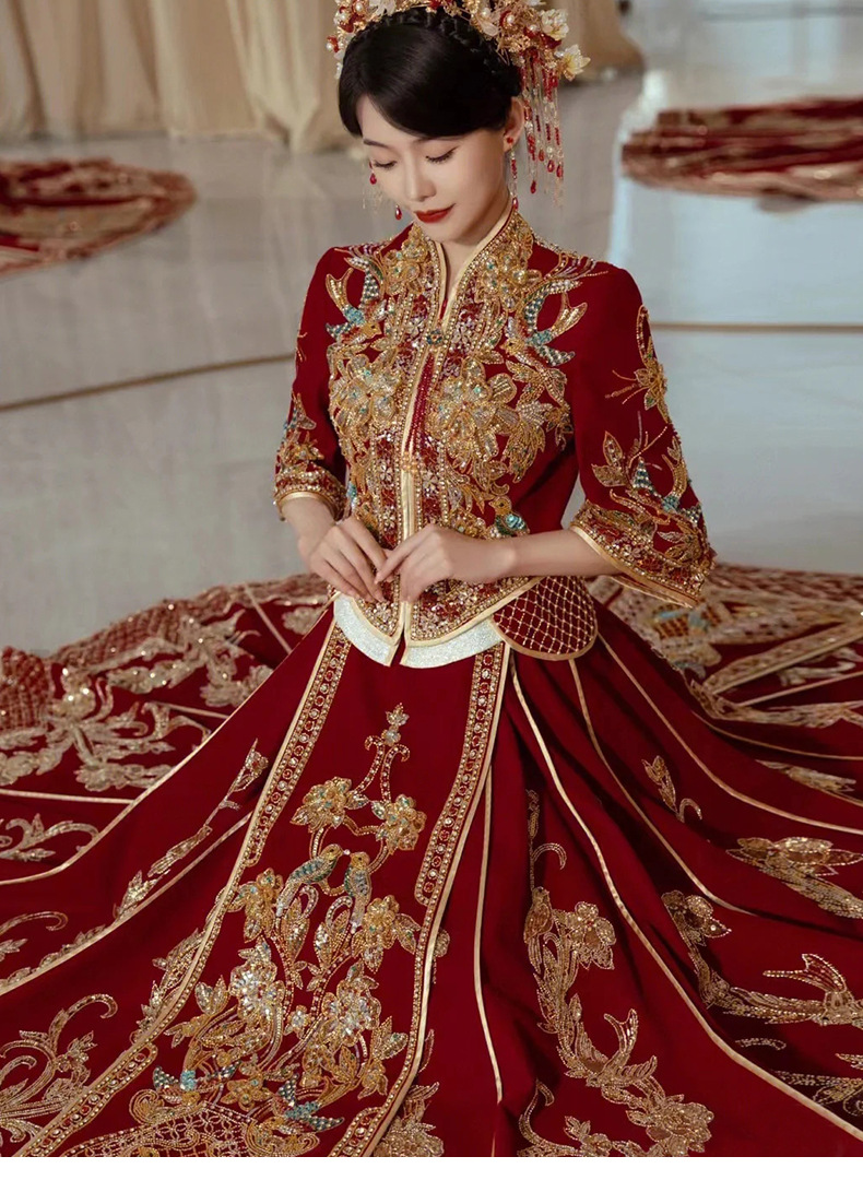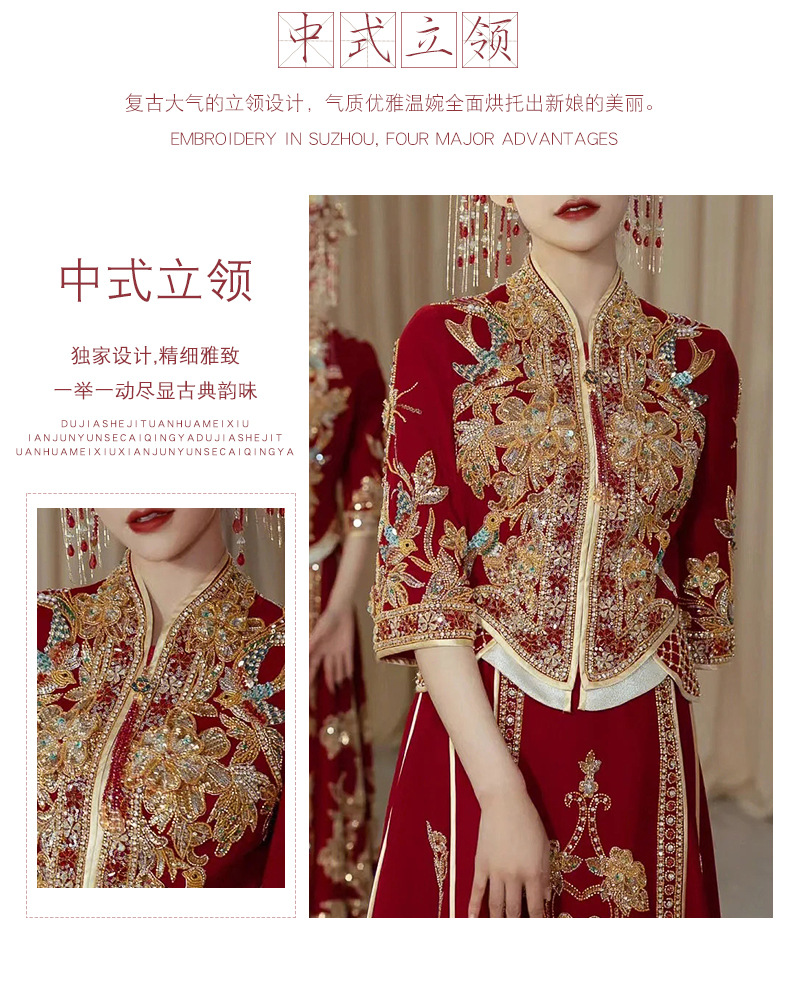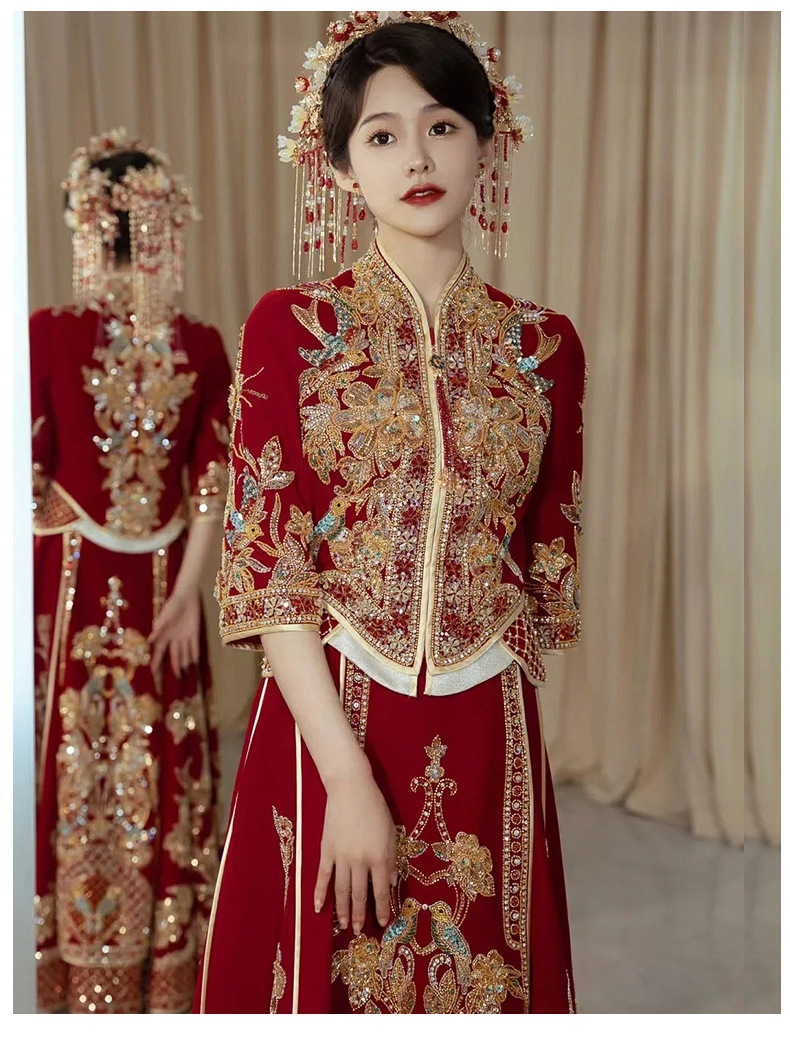 Gaun pengantin gaya Xiuhe model baru 2025, gaun pengantin gaya Cina baru, gaun pengantin, jubah naga dan phoenix, kesan mewah, musim dingin.