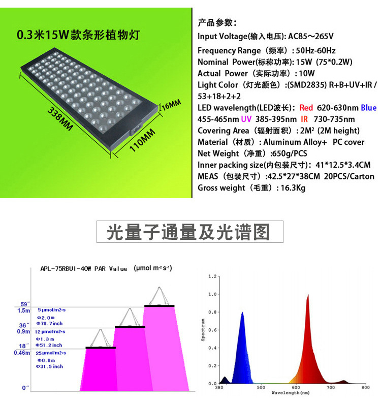 led植物生长灯2835贴片75颗40w全光谱植物灯室内大棚水族灯补光灯